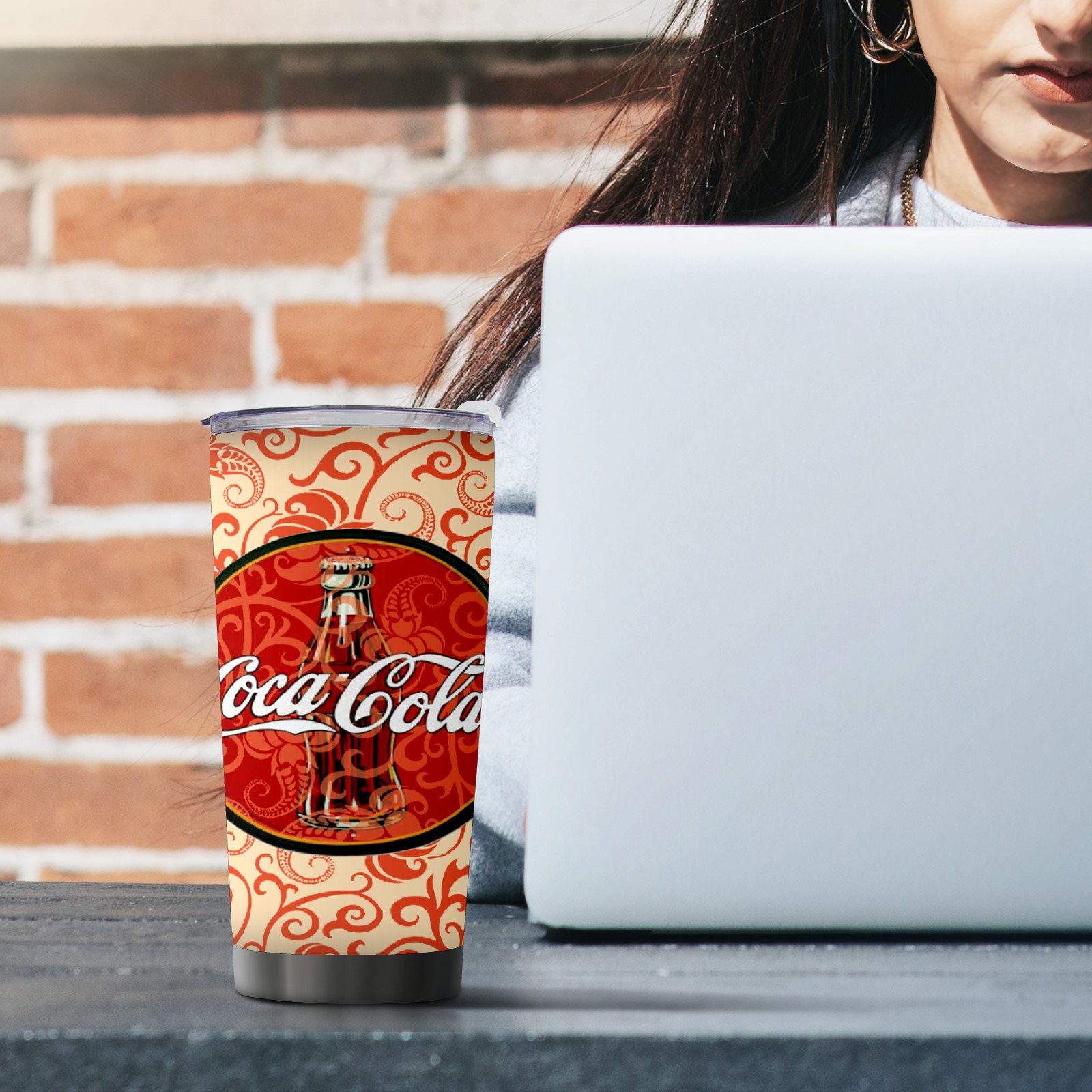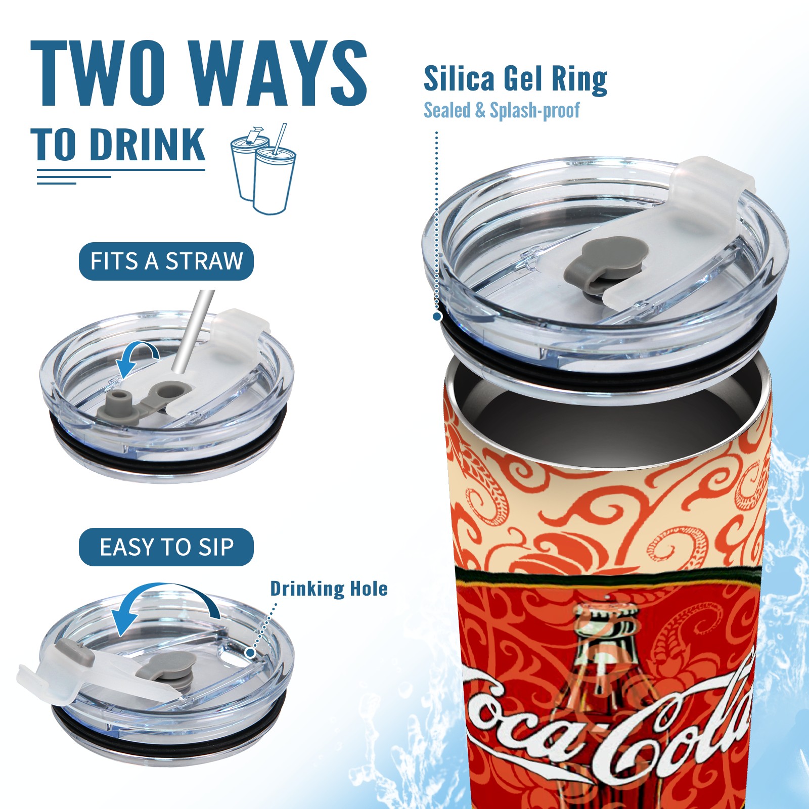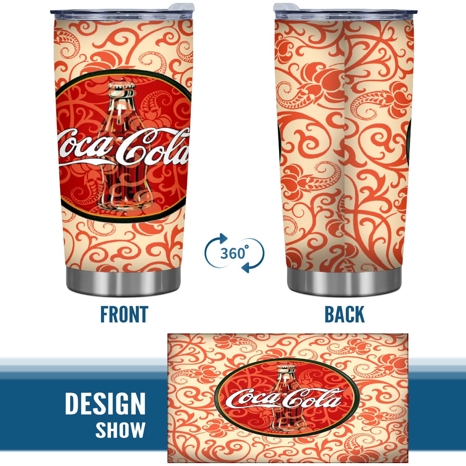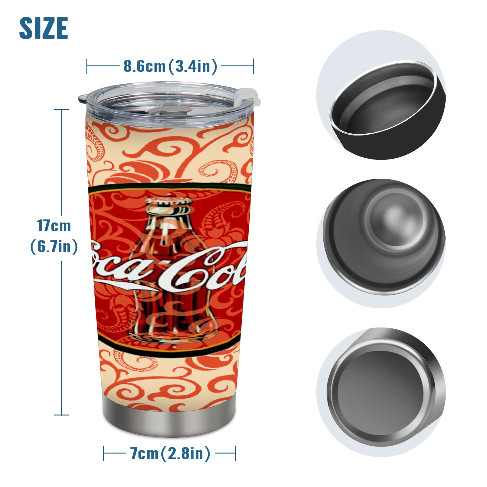 20 oz Tumbler 可口可乐排版拼接 Stainless Steel Insulated Tumbler with Lid Double Wall Vacuum Insulated Travel Mug Cup for Coffee Ice Hot Drinks