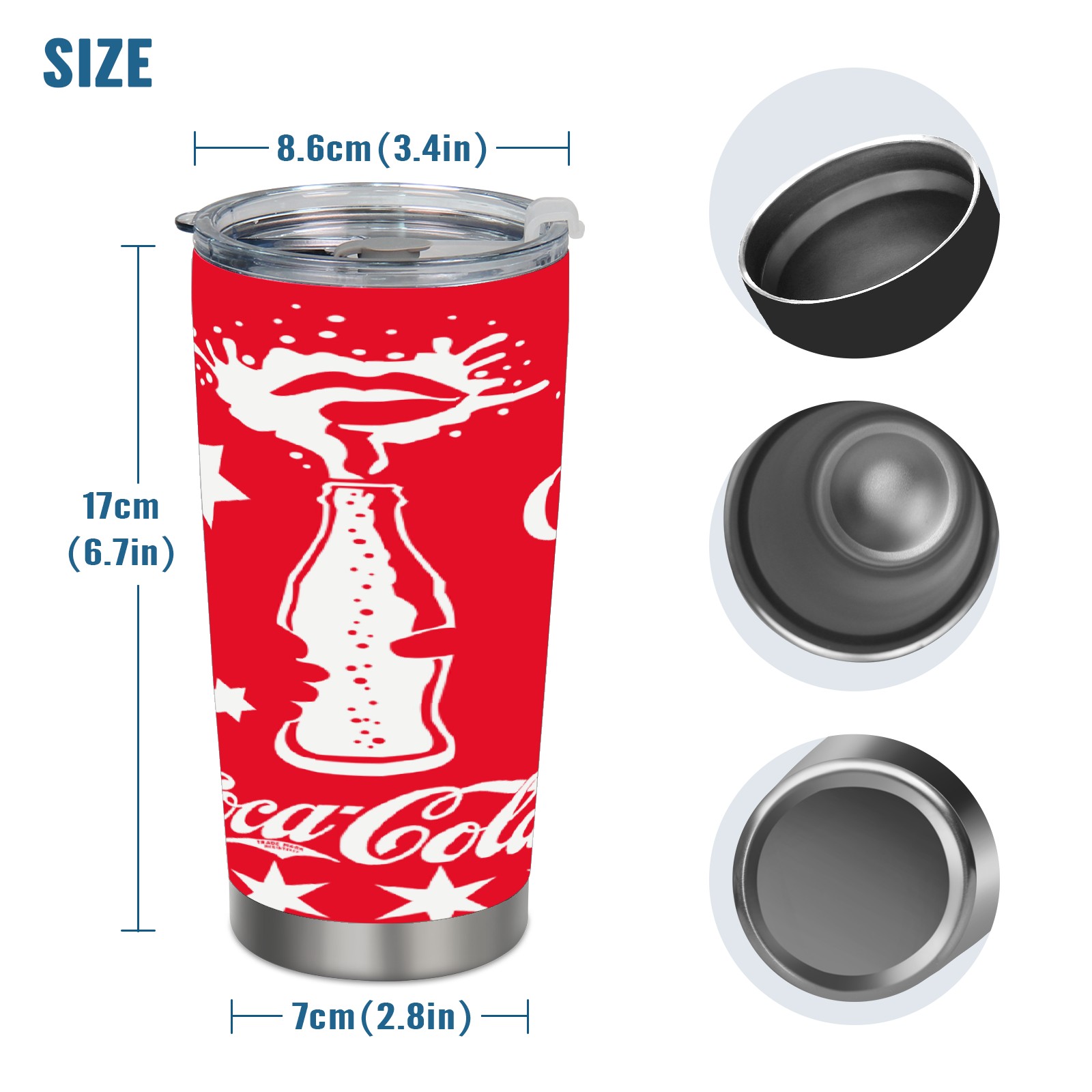 20 oz Tumbler 可口可乐20 Stainless Steel Insulated Tumbler with Lid Double Wall Vacuum Insulated Travel Mug Cup for Coffee Ice Hot Drinks