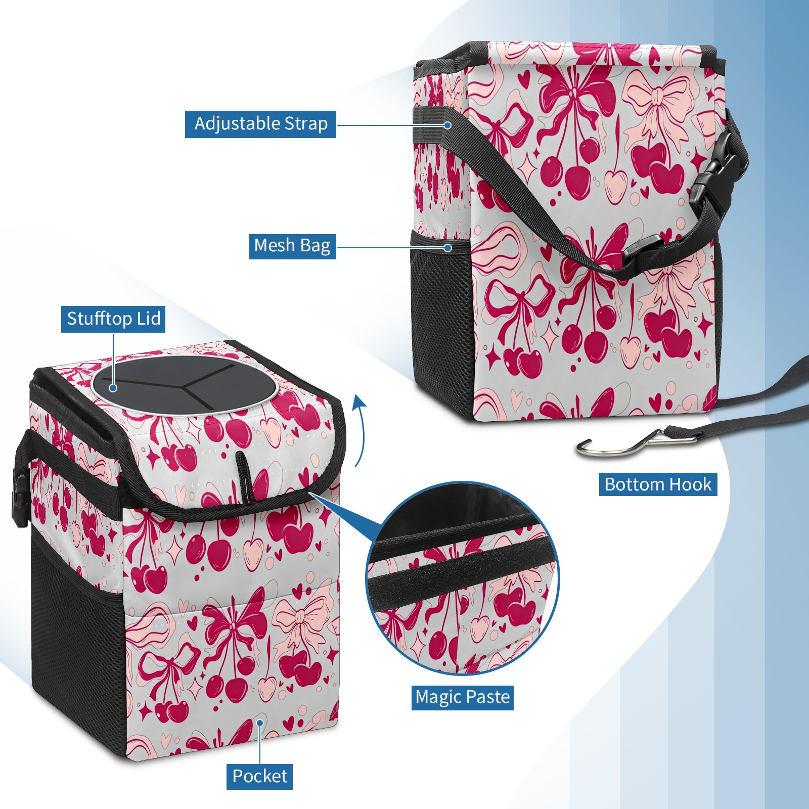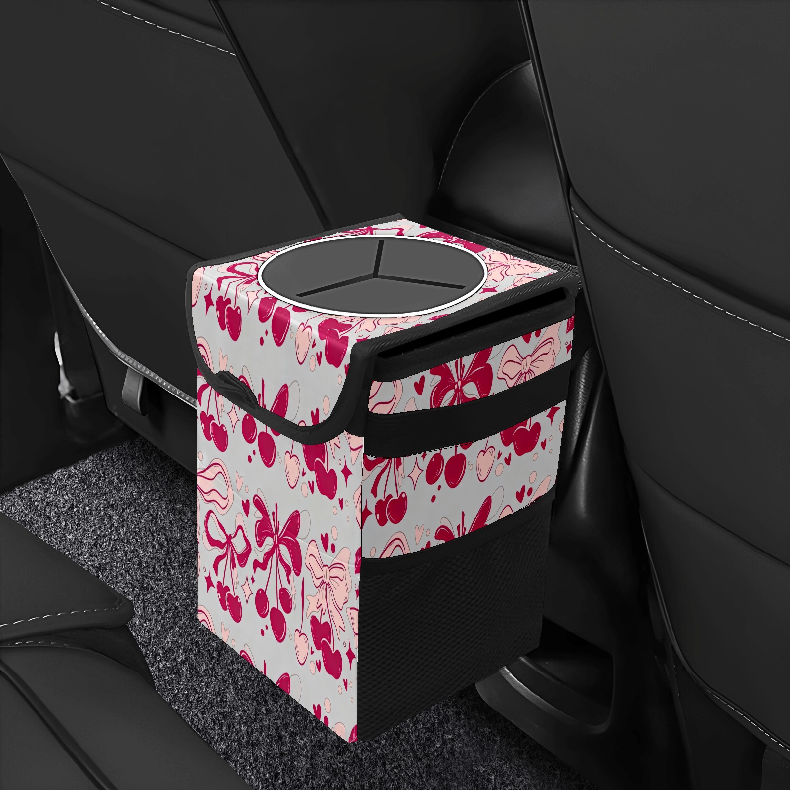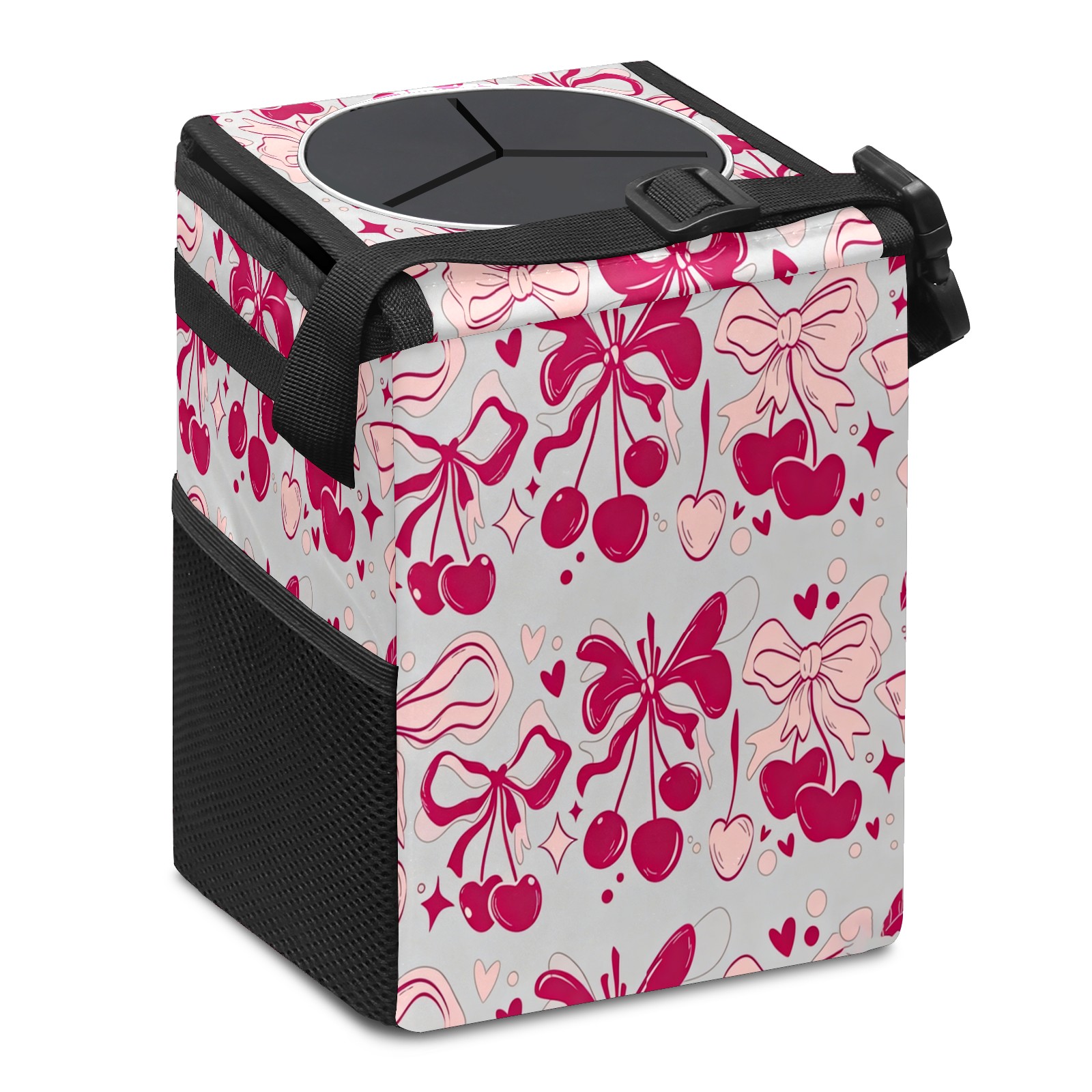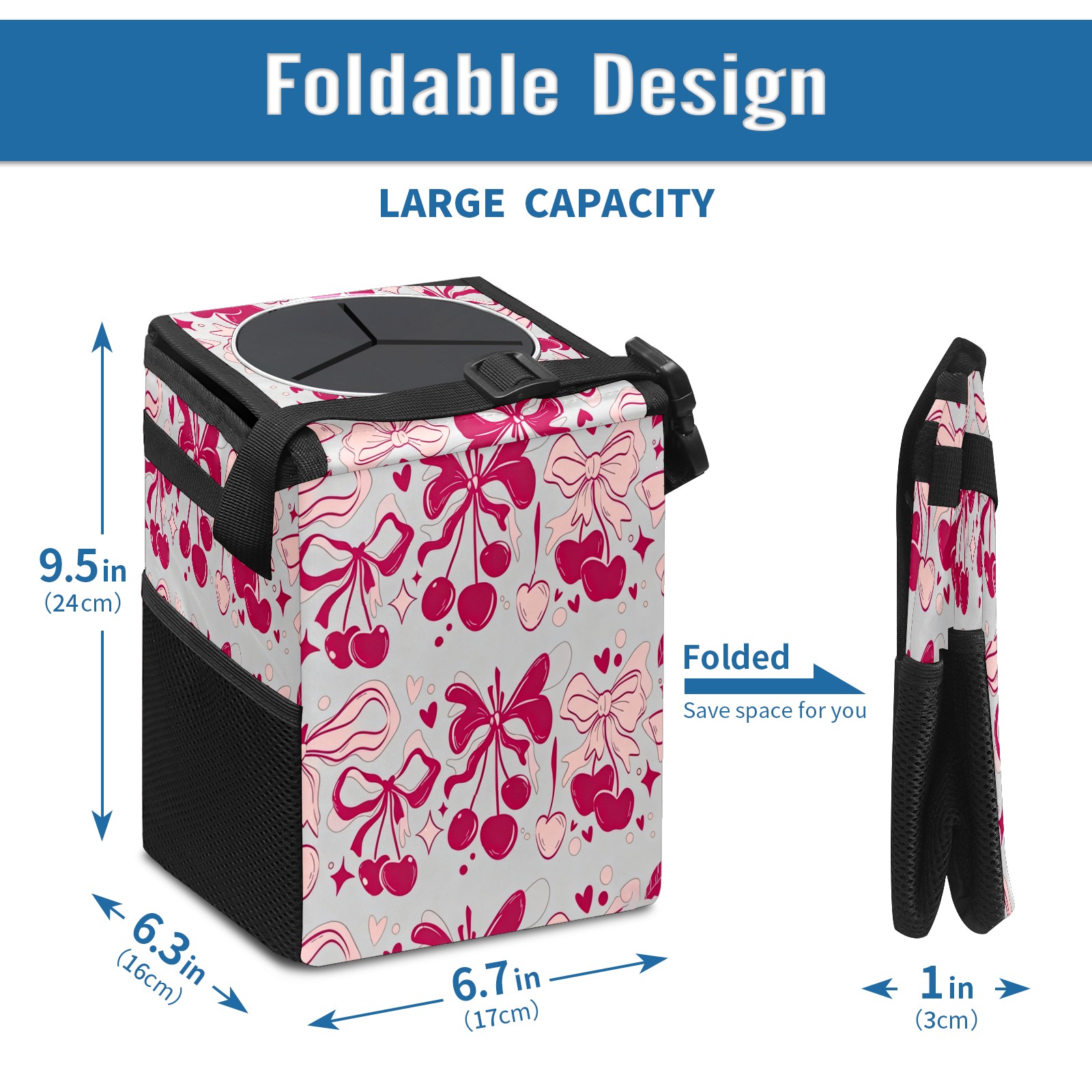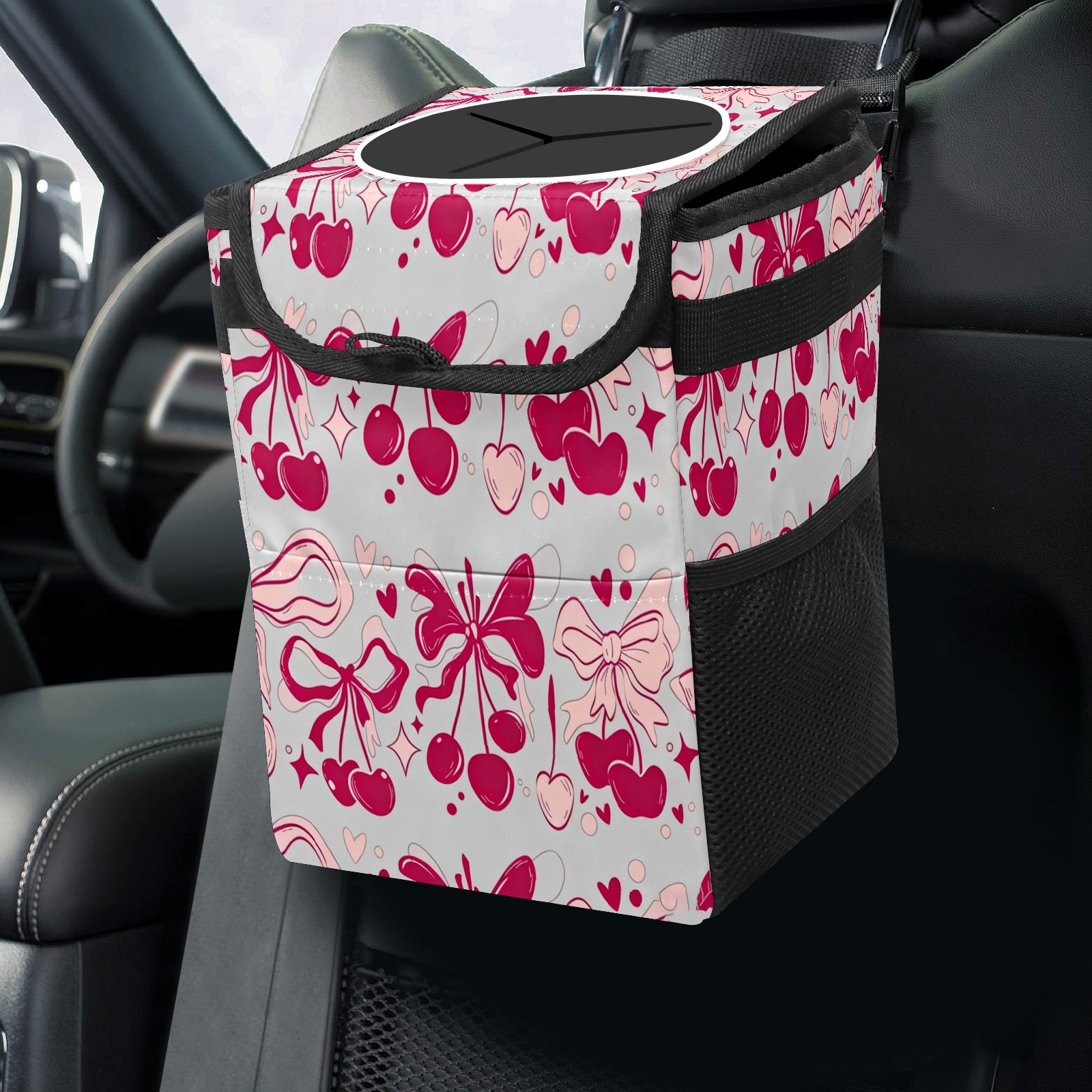 Car Garbage Can — Multi-functional, Lightweight Portable, Reusable Vehicle Trash Can, Waterproof with Sufficient Storage Capacity Gentle Bow Pink