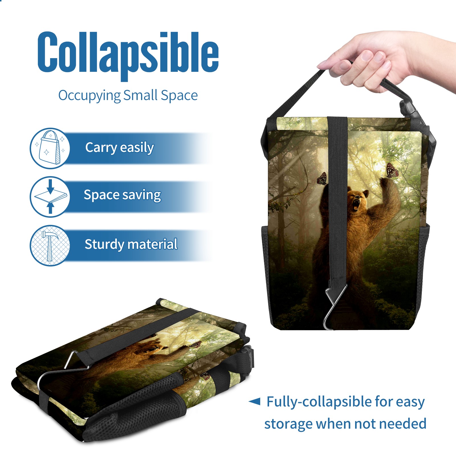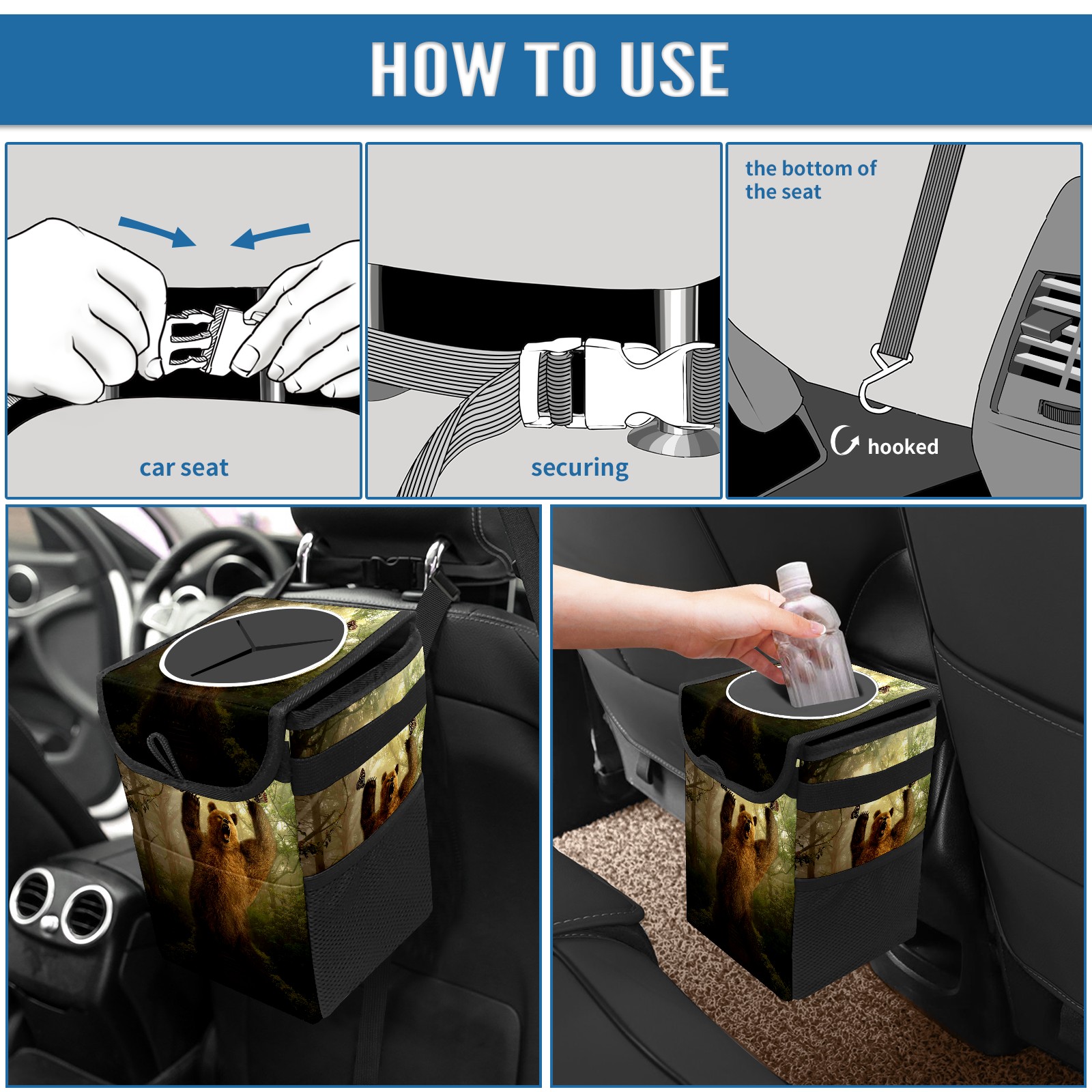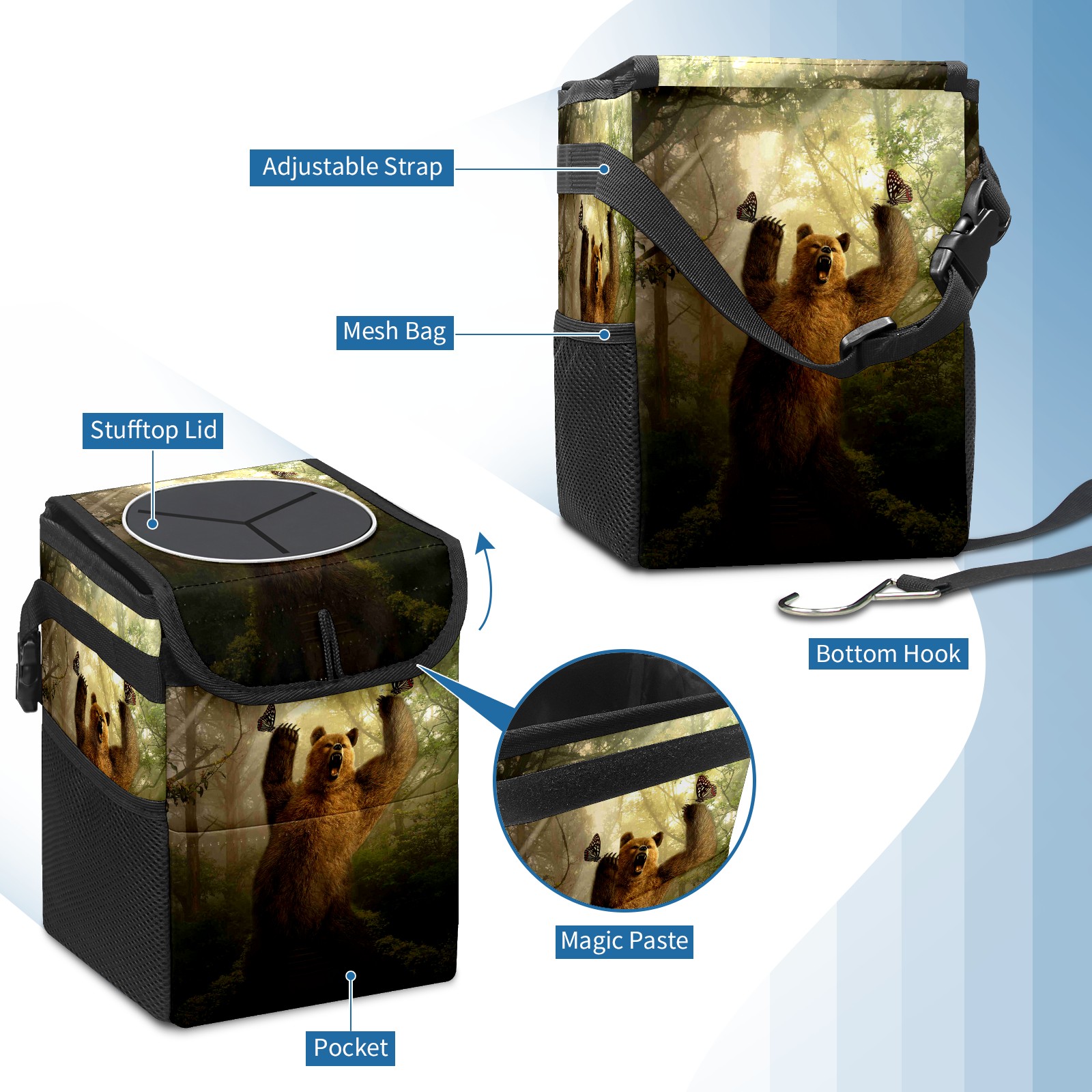 Car Garbage Can — Multi-functional, Lightweight Portable, Reusable Vehicle Trash Can, Waterproof with Sufficient Storage Capacity BEAR Canvas Print
