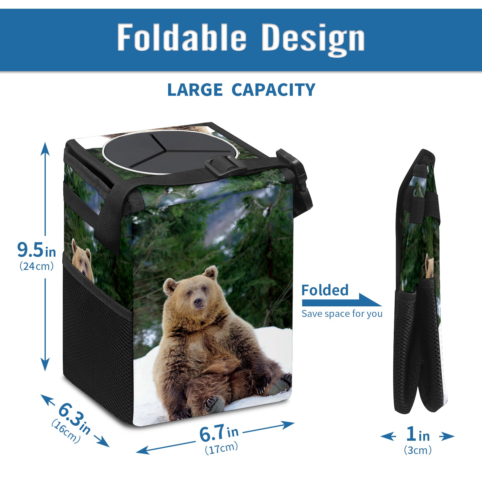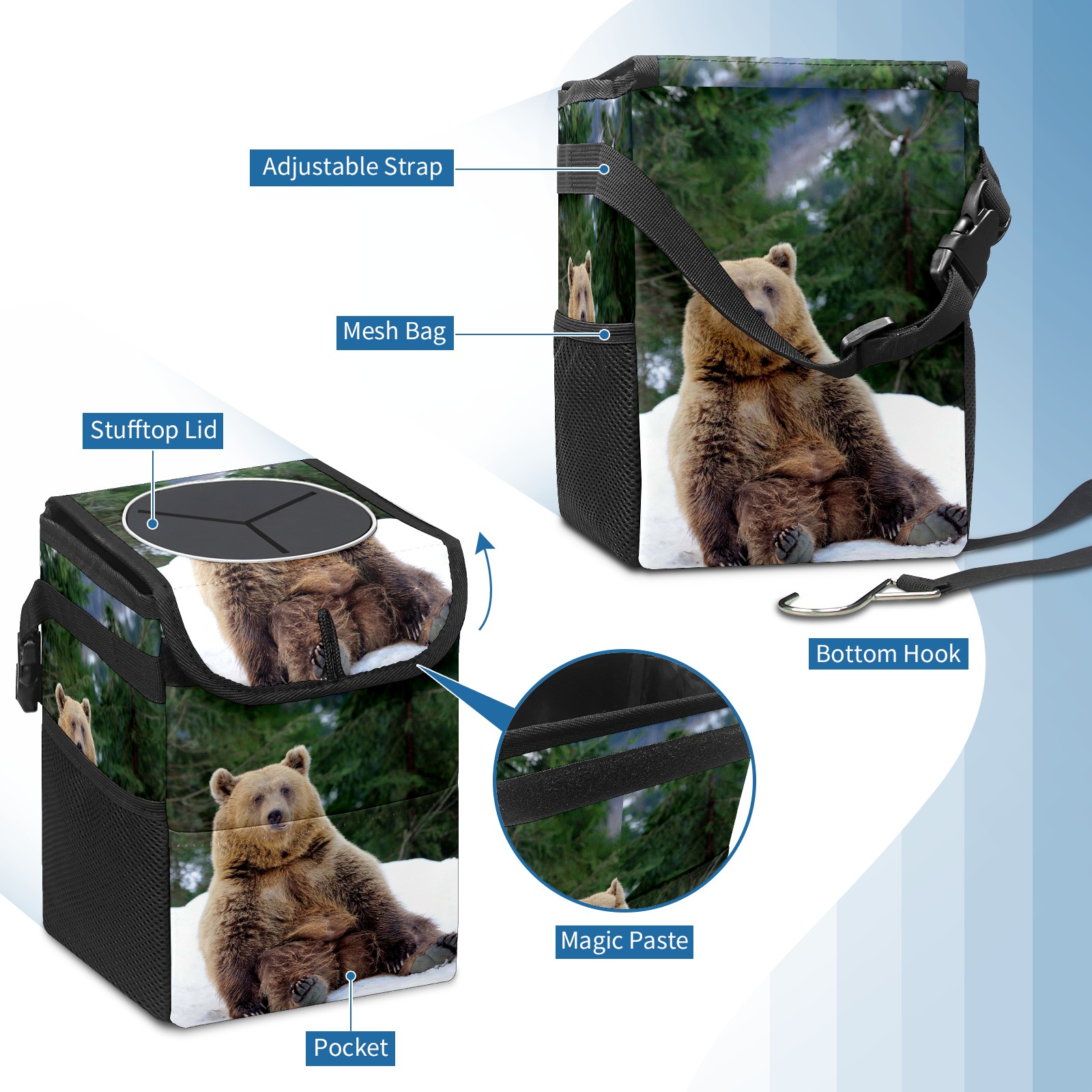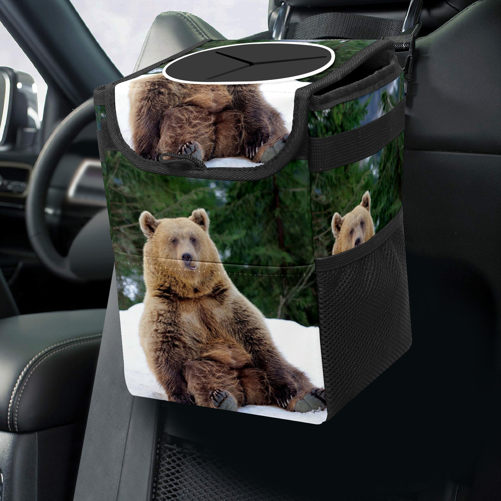 Car Garbage Can — Multi-functional, Lightweight Portable, Reusable Vehicle Trash Can, Waterproof with Sufficient Storage Capacity Bear (3)