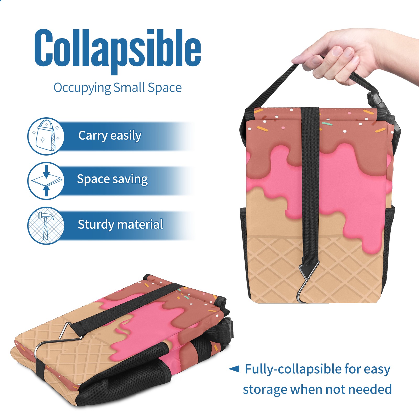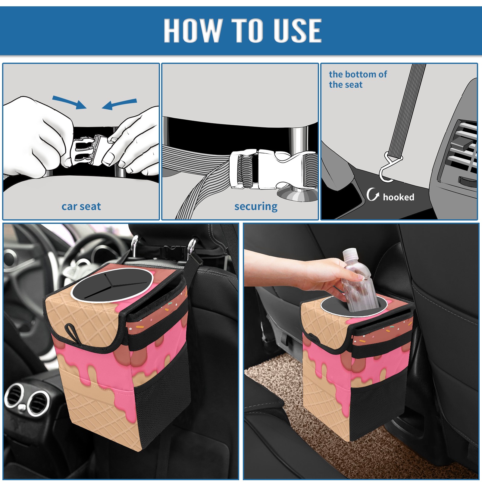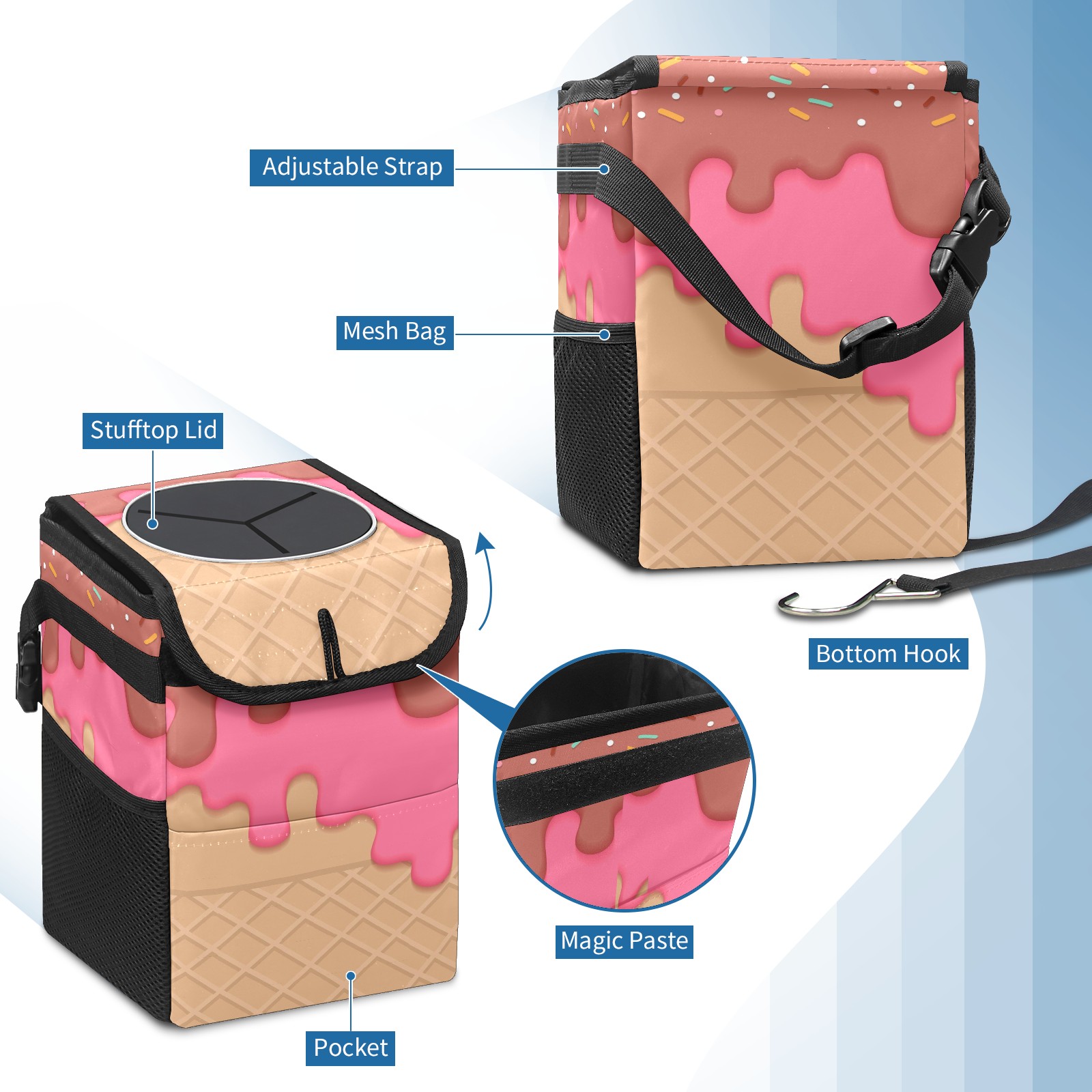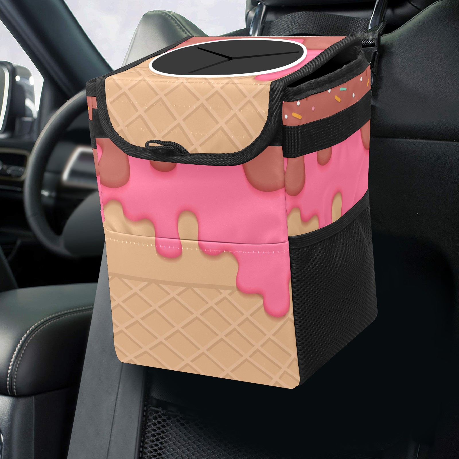 Car Garbage Can — Multi-functional, Lightweight Portable, Reusable Vehicle Trash Can, Waterproof with Sufficient Storage Capacity Ice Cream