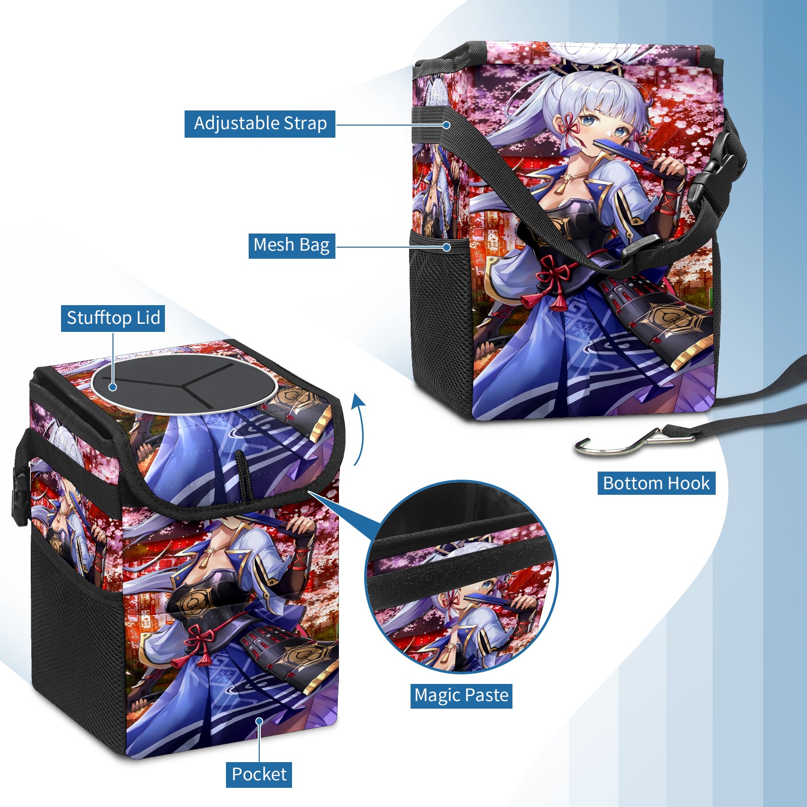 Car Garbage Can — Multi-functional, Lightweight Portable, Reusable Vehicle Trash Can, Waterproof with Sufficient Storage Capacity Genshin Impact Kamisato Ayaka