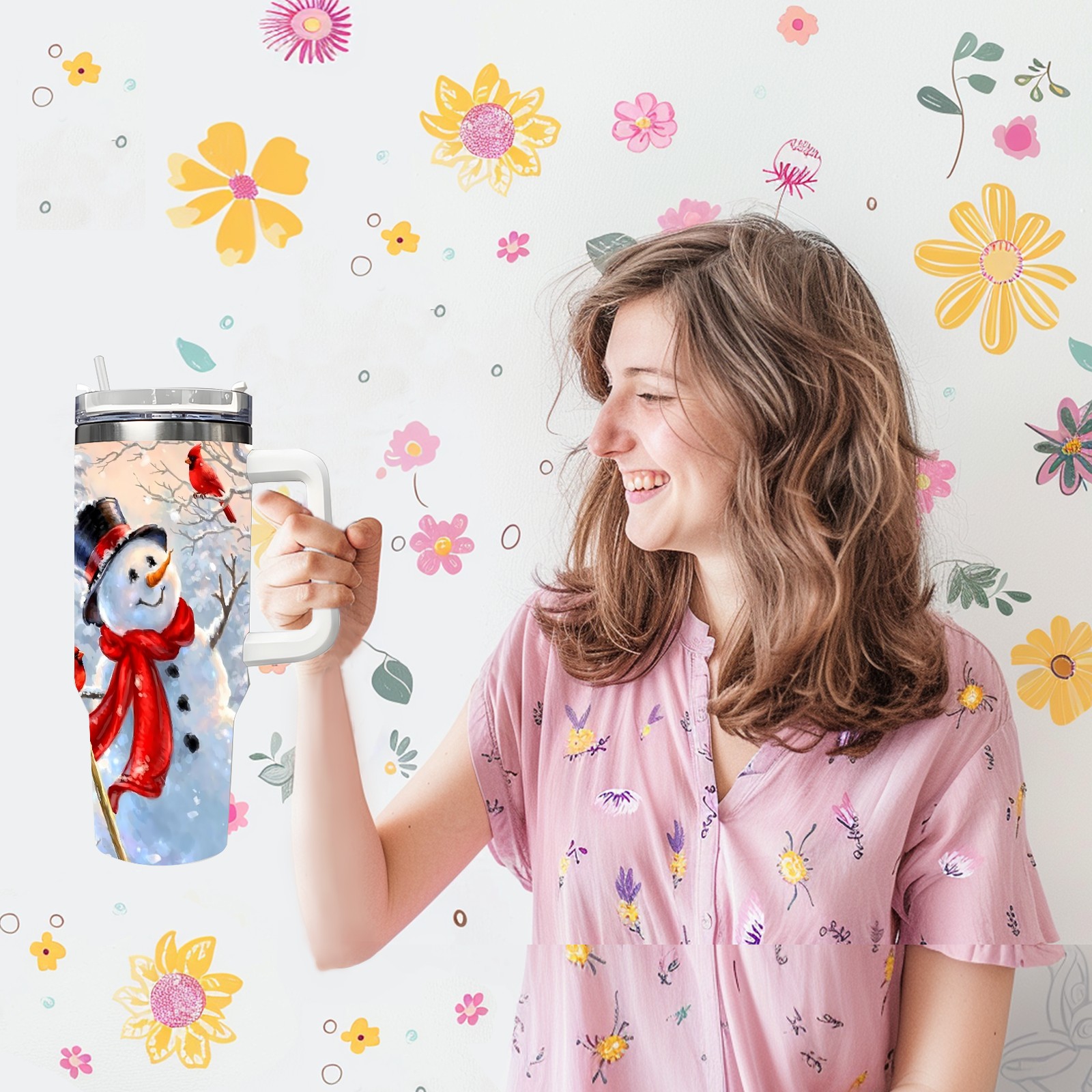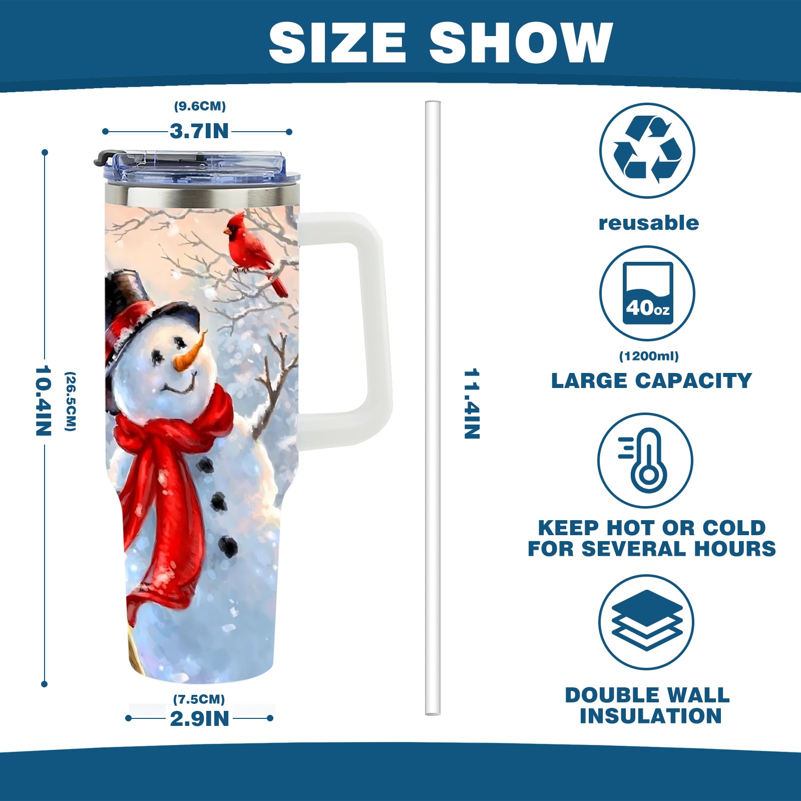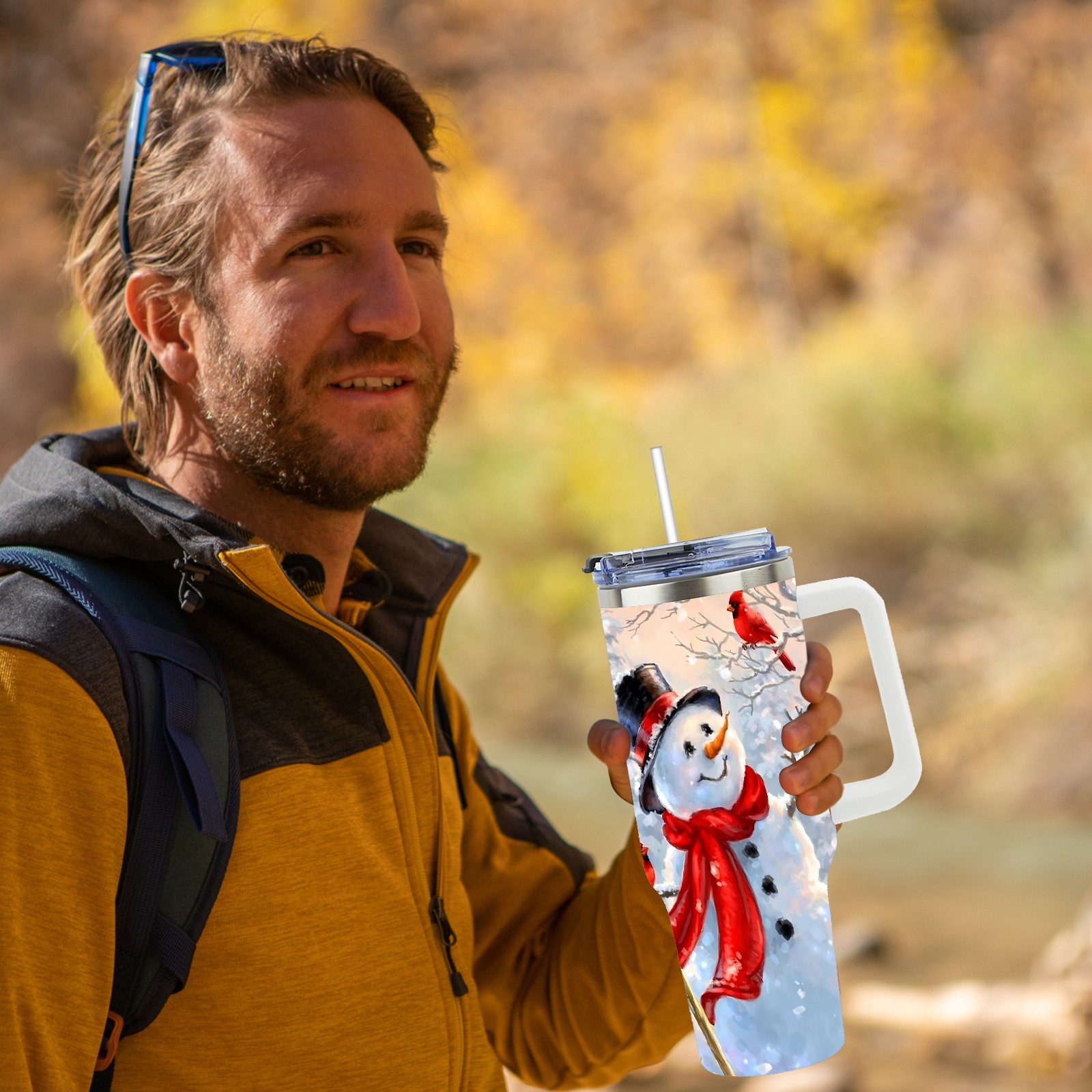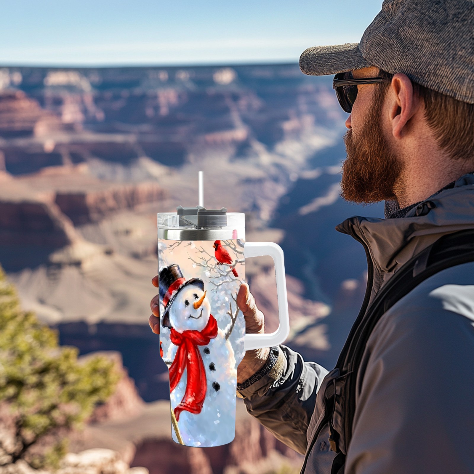 40 унций полностью напечатанный автомобильный стакан – стильный стакан с большой вместимостью с технологией УФ-печатиSnowman And Cardinal Bird (1)