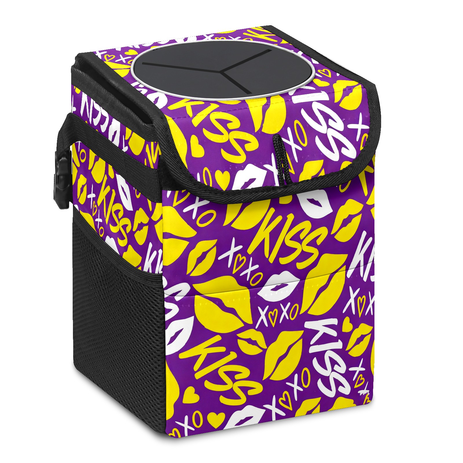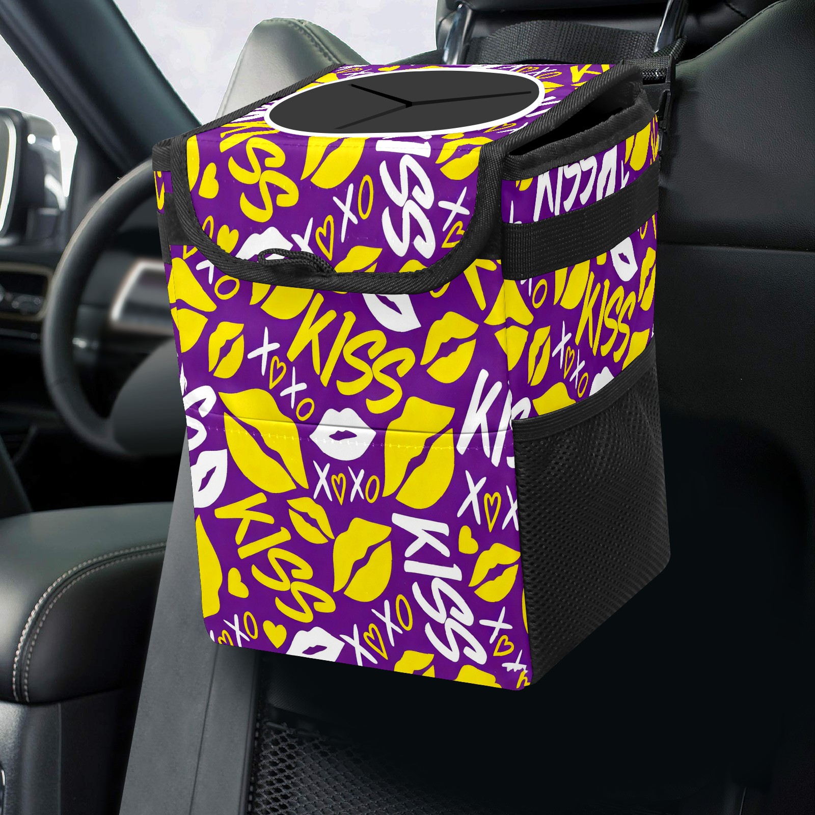 Car Trash Bin with Lid Auto Garbage Bag Hanging for Back Seat - Leakproof Trash Can for Cars SUVs Trucks Vehicle Car Accessories (KISS Purple)