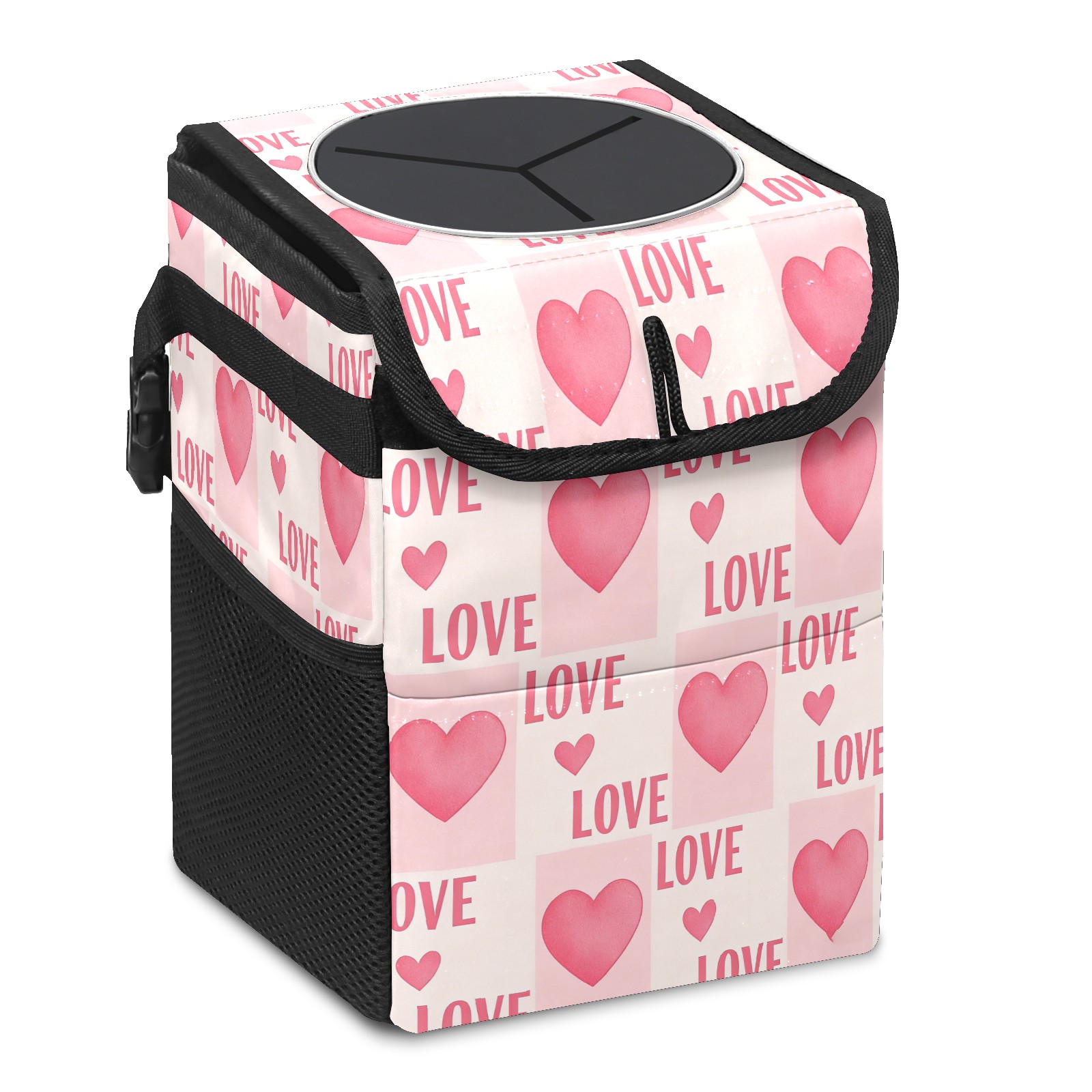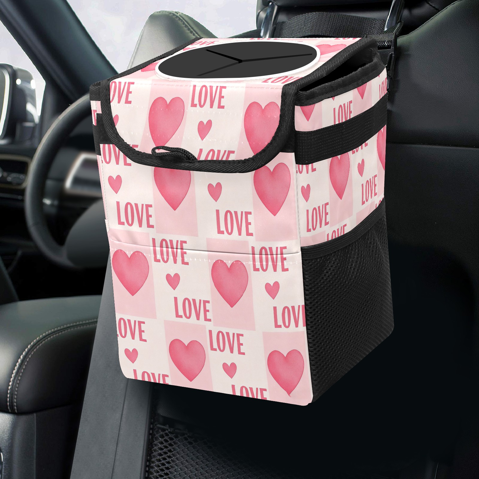Car Trash Bin with Lid Auto Garbage Bag Hanging for Back Seat - Leakproof Trash Can for Cars SUVs Trucks Vehicle Car Accessories (Heart Pink)