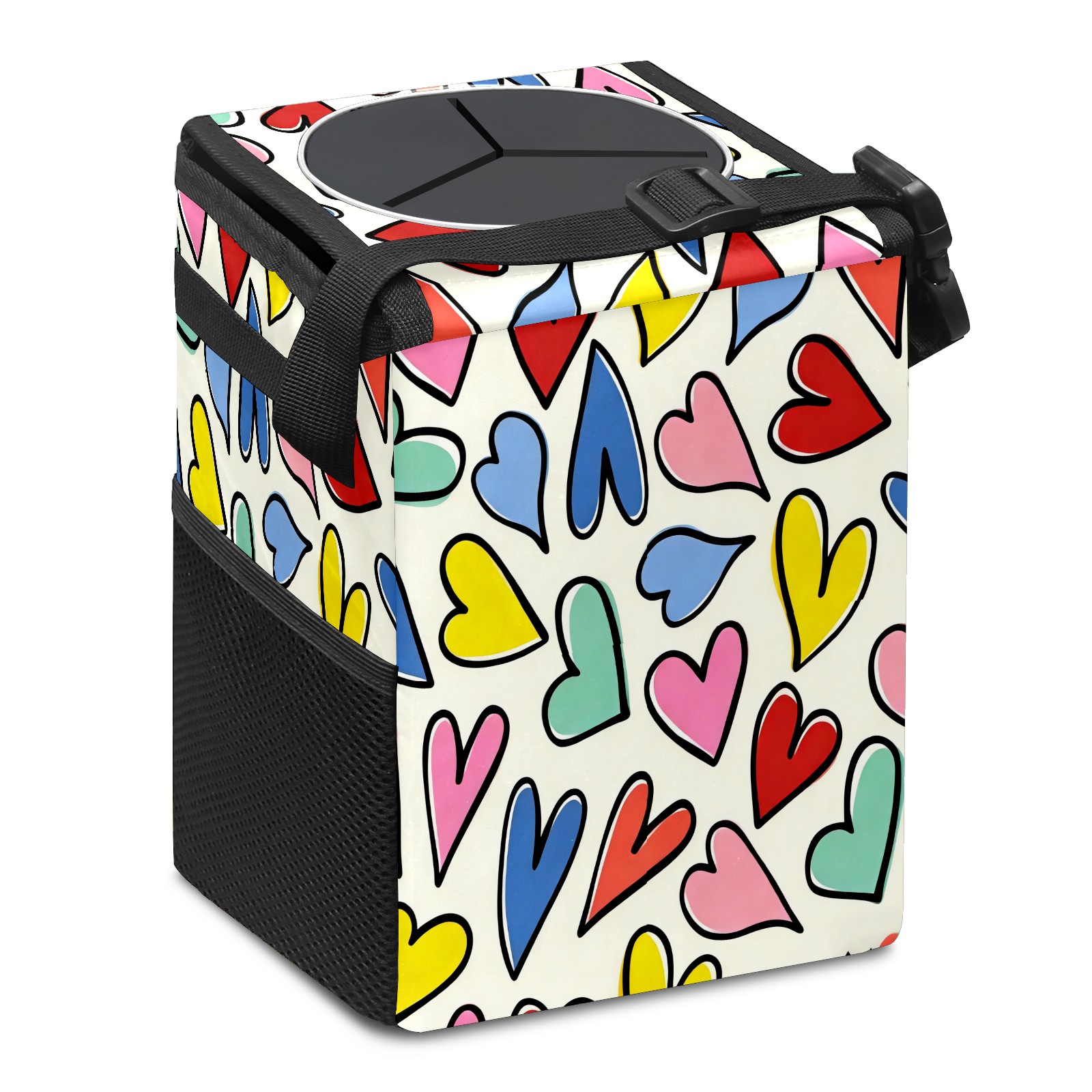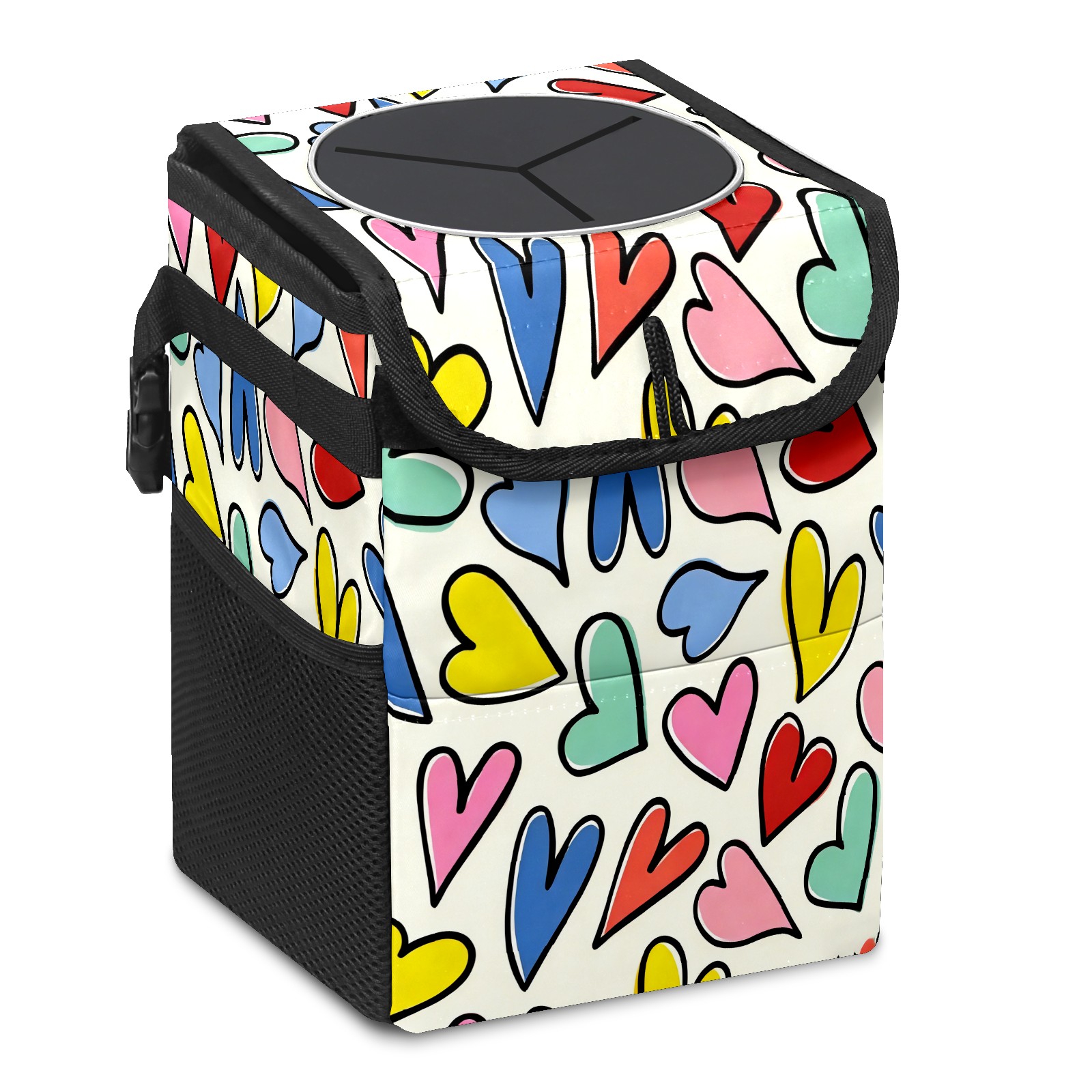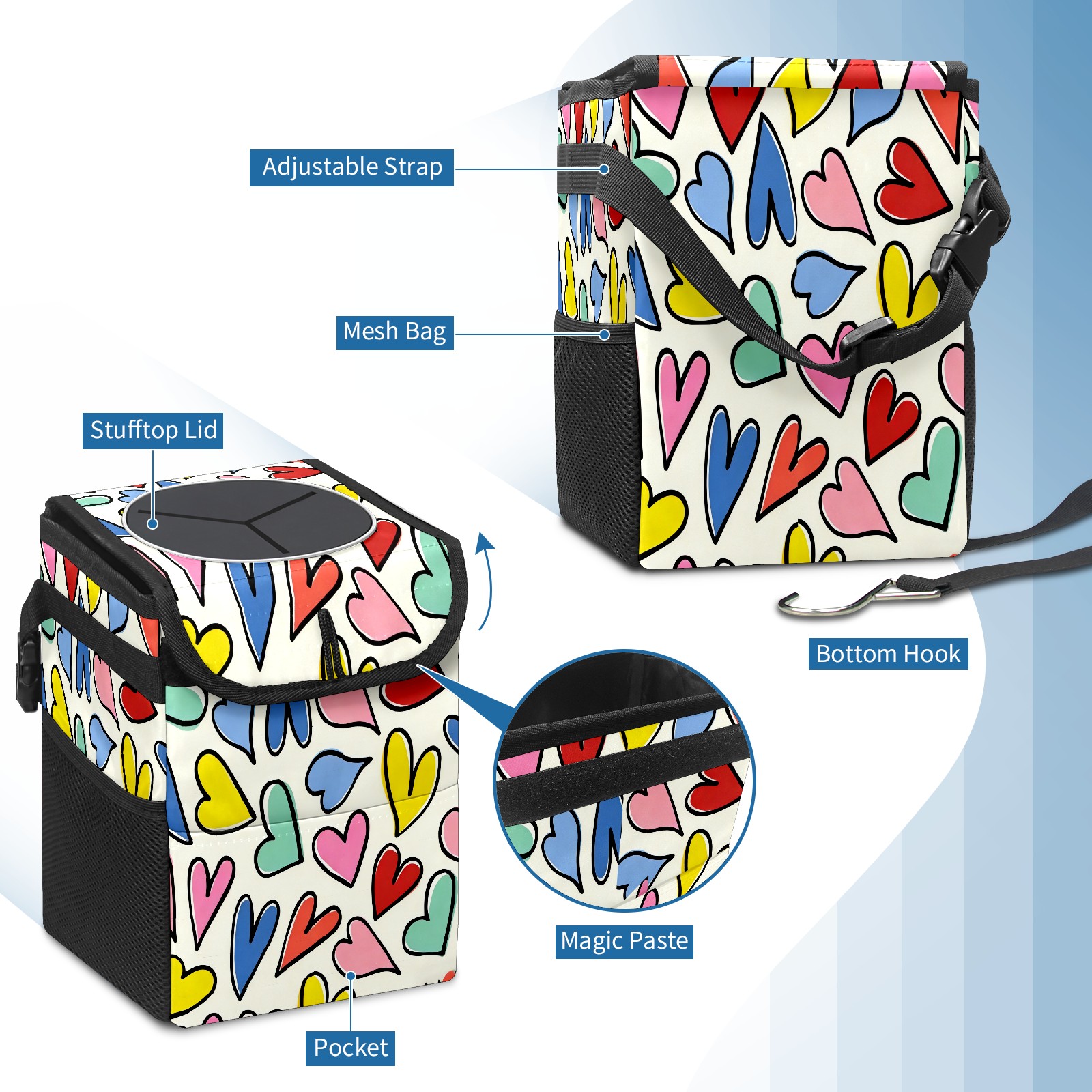 Car Trash Bin with Lid Auto Garbage Bag Hanging for Back Seat - Leakproof Trash Can for Cars SUVs Trucks Vehicle Car Accessories (Multi-Color Heart)