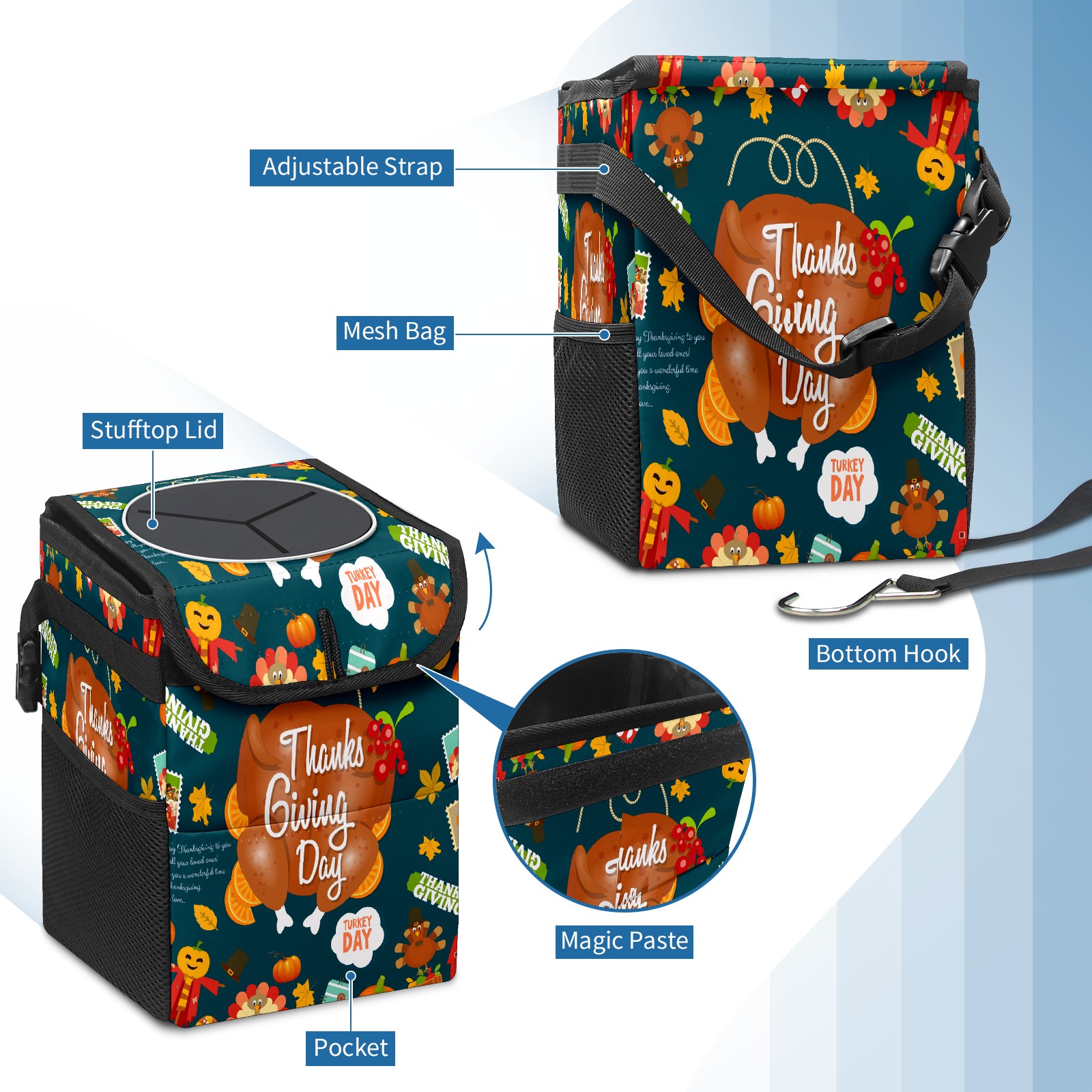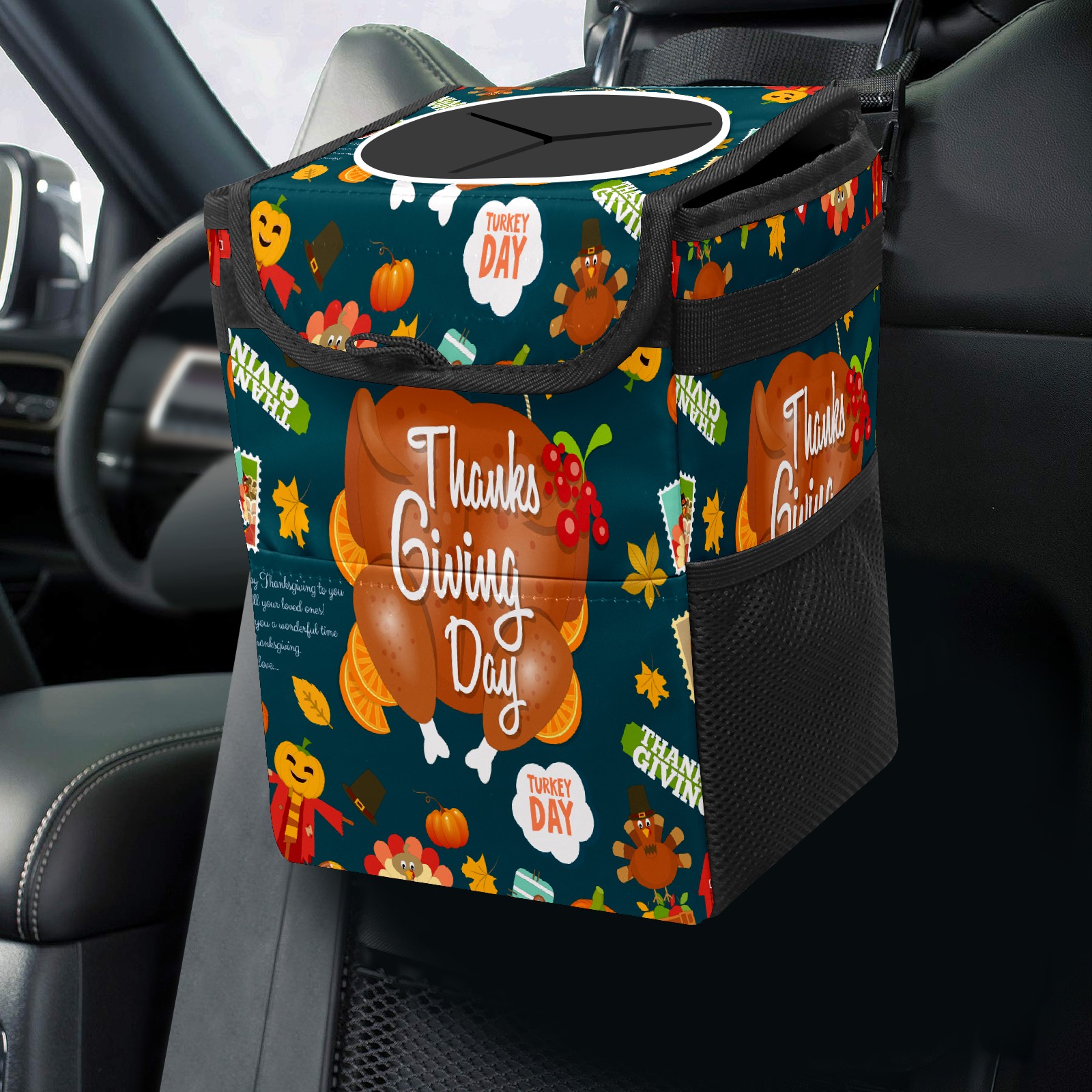 Car Trash Bin with Lid Auto Garbage Bag Hanging for Back Seat - Leakproof Trash Can for Cars SUVs Trucks Vehicle Car Accessories (感恩节4)