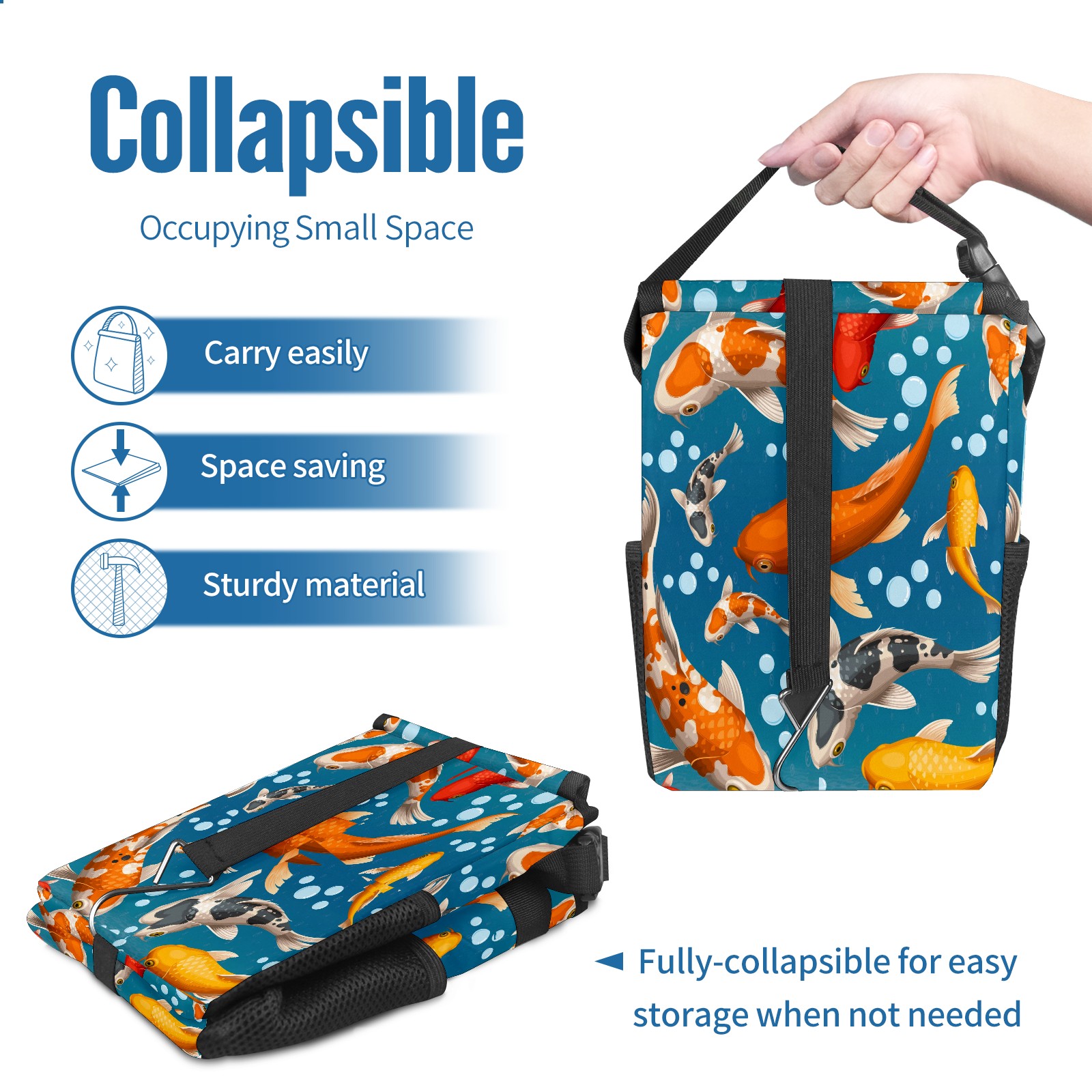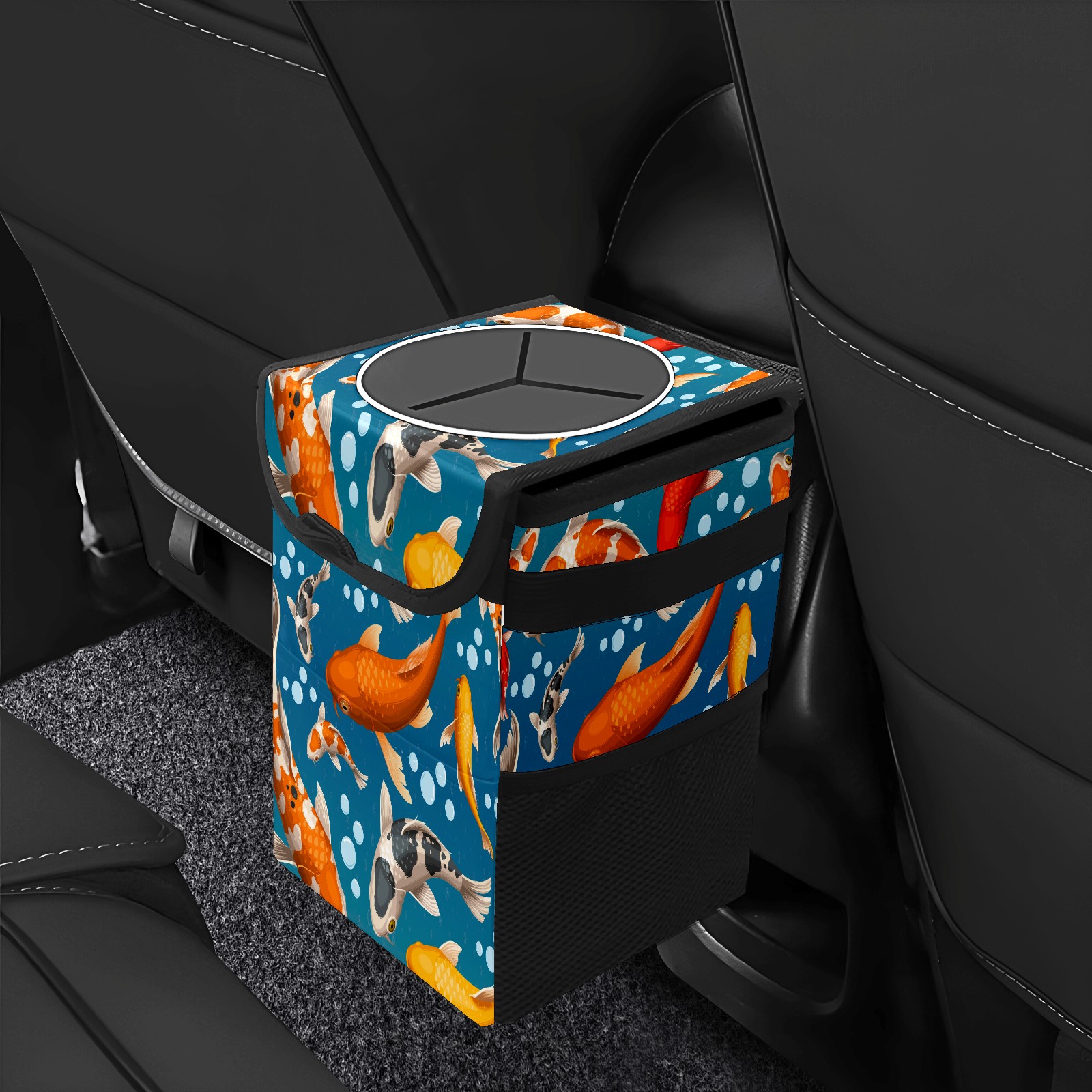 FOLDABLE & SPACE-SAVING Compact 9.5"×6.7"×6.3" size fits perfectly in any vehicle space Instantly folds flat when not in use - stores effortlessly under seats or in door pockets MULTI-FUNCTION ORGANIZER Large main compartment holds bottles, wrappers and tissues Additional pockets for wet wipes, masks or small accessories WATERPROOF & LEAKPROOF Made with premium leak-proof polyester material Contains messy spills from drinks, snacks, and food Wipe-clean surface resists stains and eliminates odors Package Includes 1× Car Trash Can
