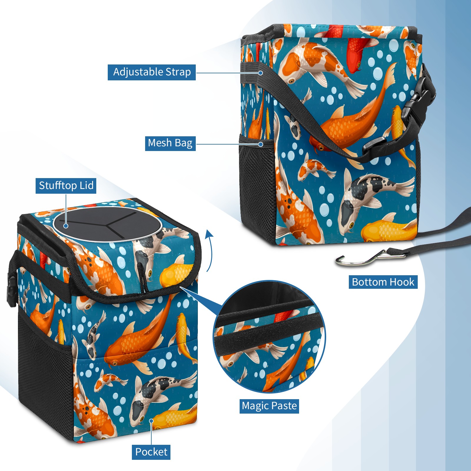 Car Trash Bin with Lid Auto Garbage Bag Hanging for Back Seat - Leakproof Trash Can for Cars SUVs Trucks Vehicle Car Accessories (鱼)