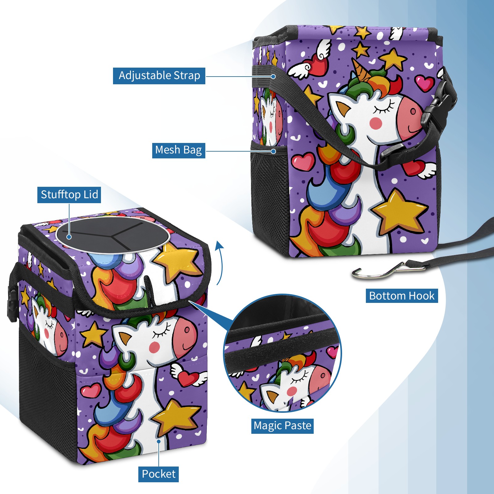 Car Trash Bin with Lid Auto Garbage Bag Hanging for Back Seat - Leakproof Trash Can for Cars SUVs Trucks Vehicle Car Accessories (独角兽1)