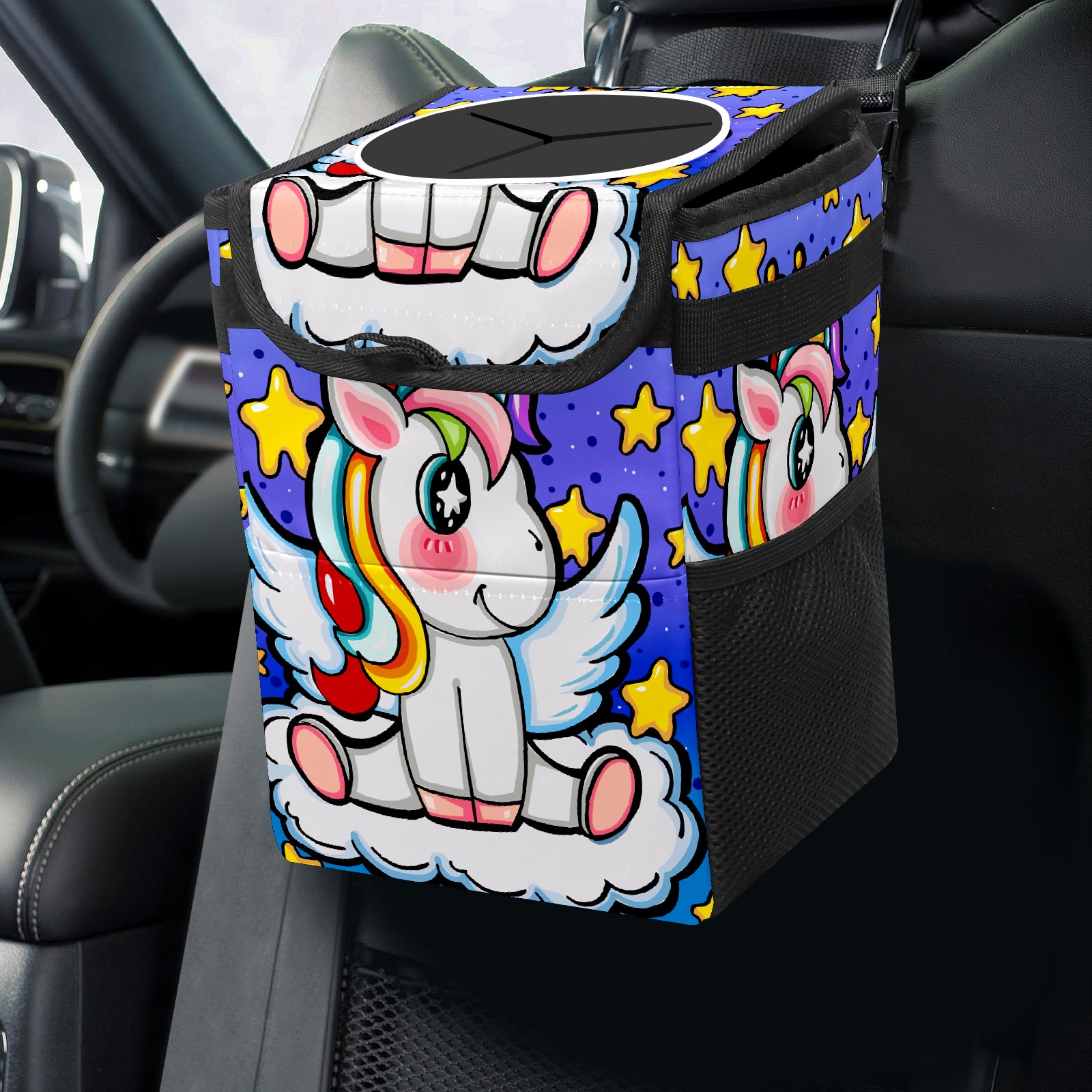 Car Trash Bin with Lid Auto Garbage Bag Hanging for Back Seat - Leakproof Trash Can for Cars SUVs Trucks Vehicle Car Accessories (独角兽)