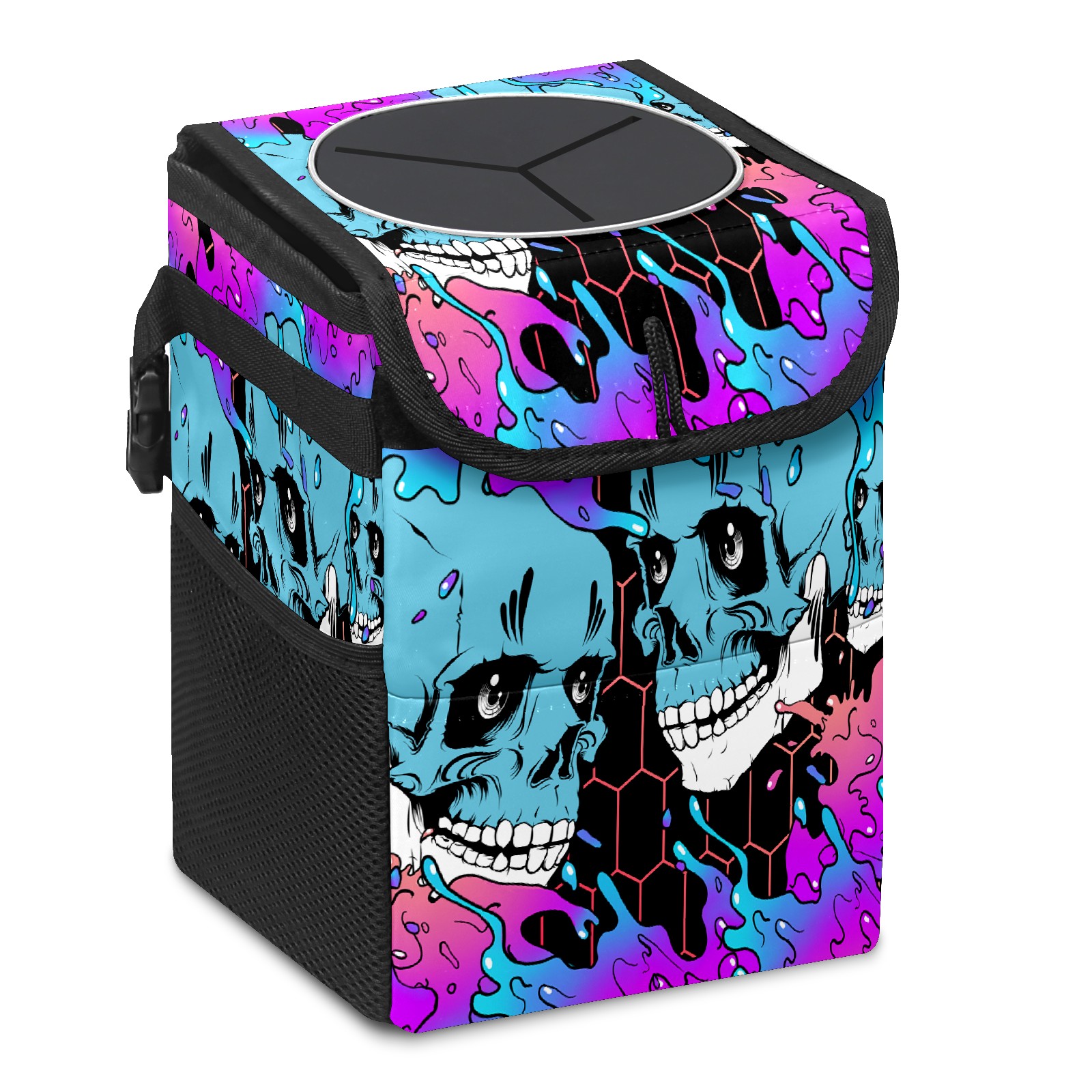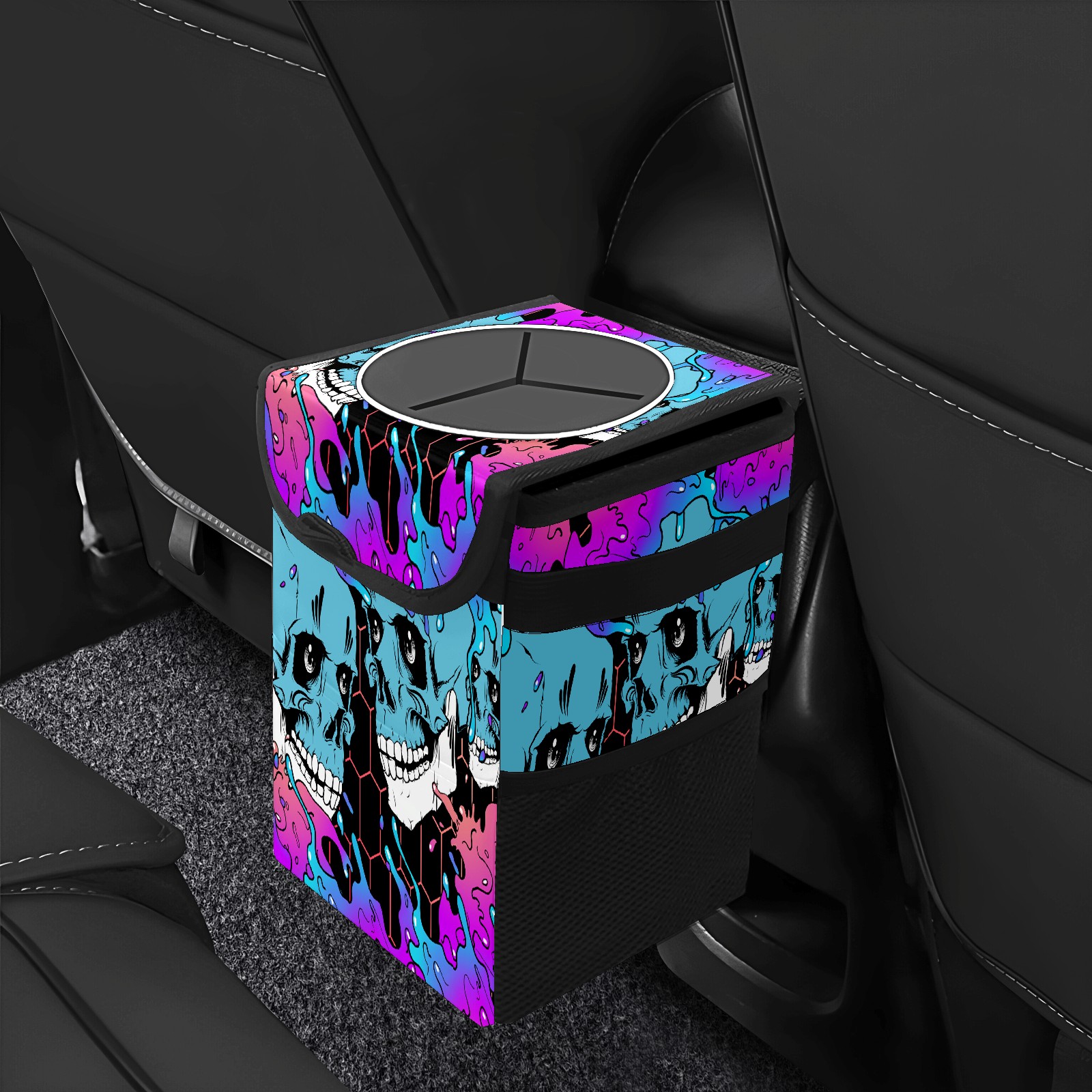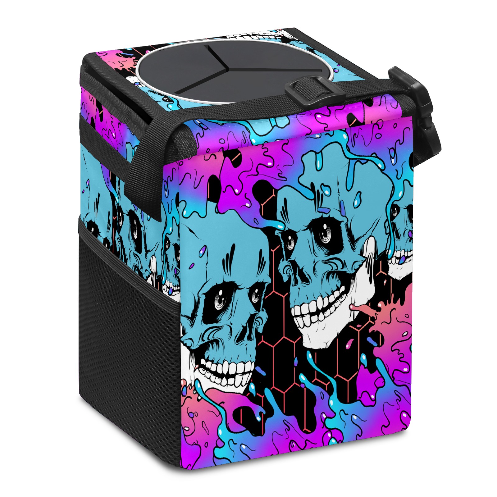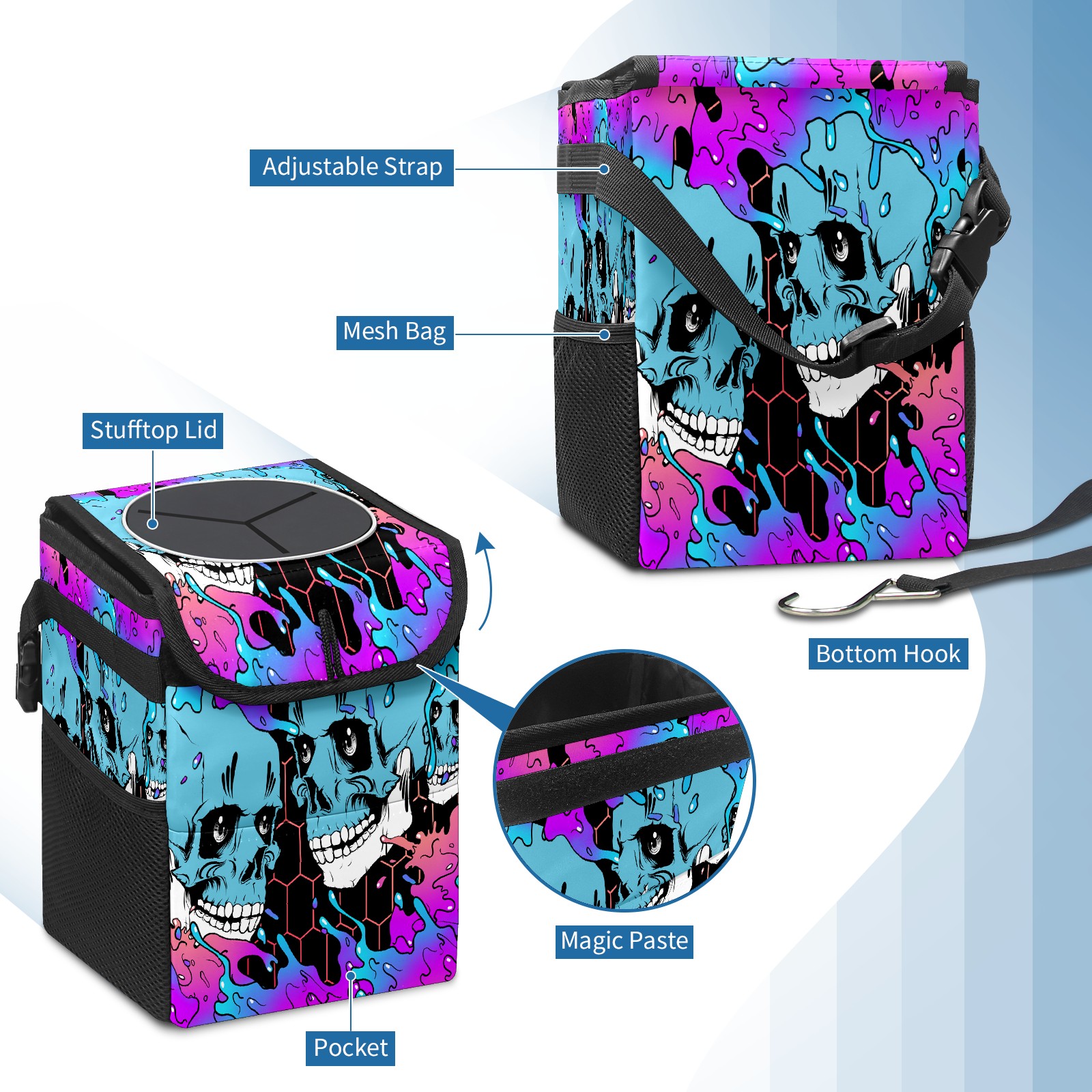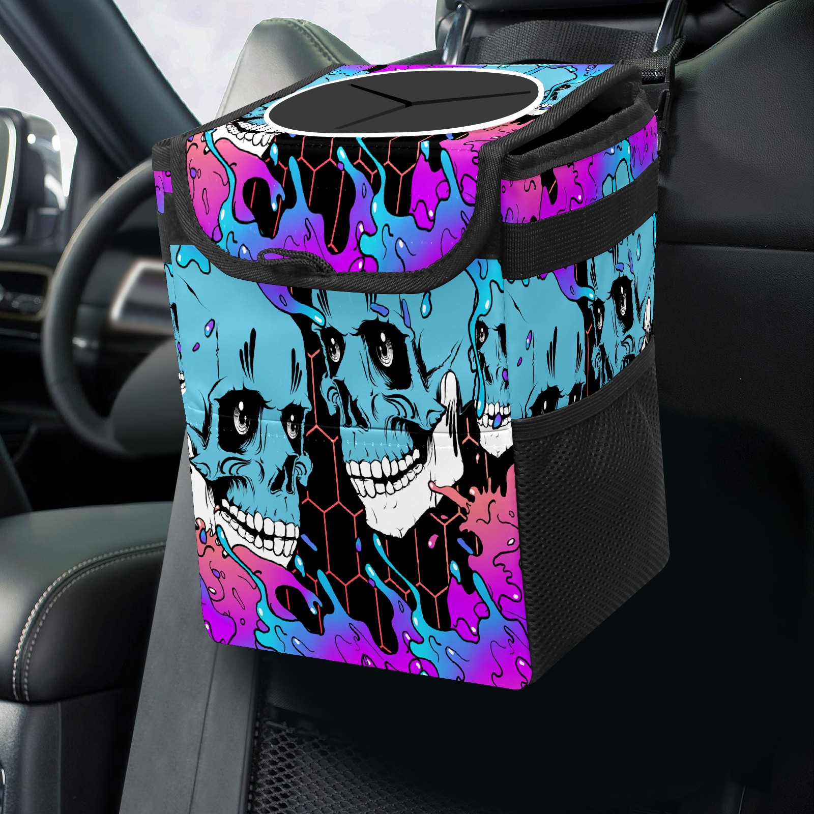 Car Trash Bin with Lid Auto Garbage Bag Hanging for Back Seat - Leakproof Trash Can for Cars SUVs Trucks Vehicle Car Accessories (骷髅18)