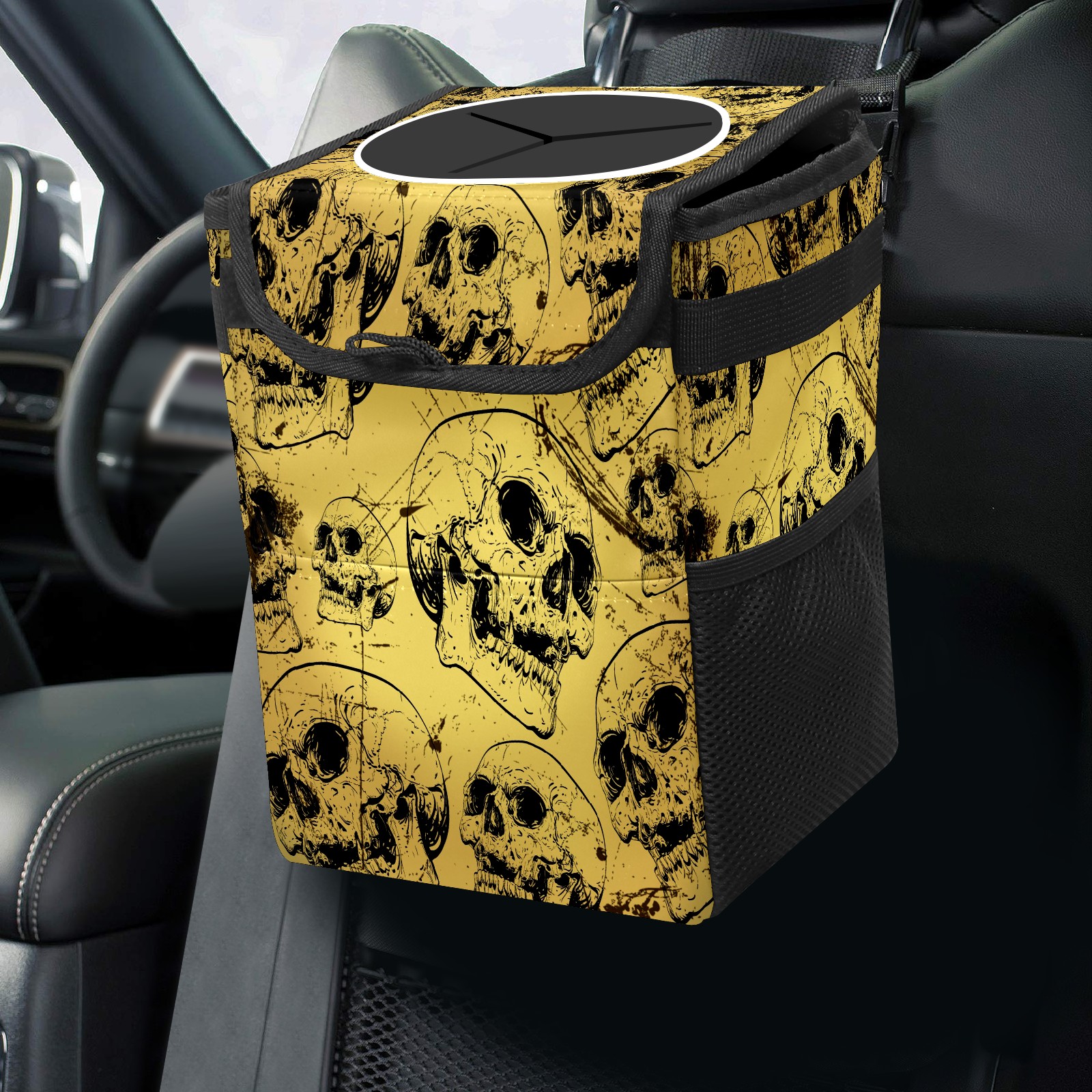 Car Trash Bin with Lid Auto Garbage Bag Hanging for Back Seat - Leakproof Trash Can for Cars SUVs Trucks Vehicle Car Accessories (骷髅15)