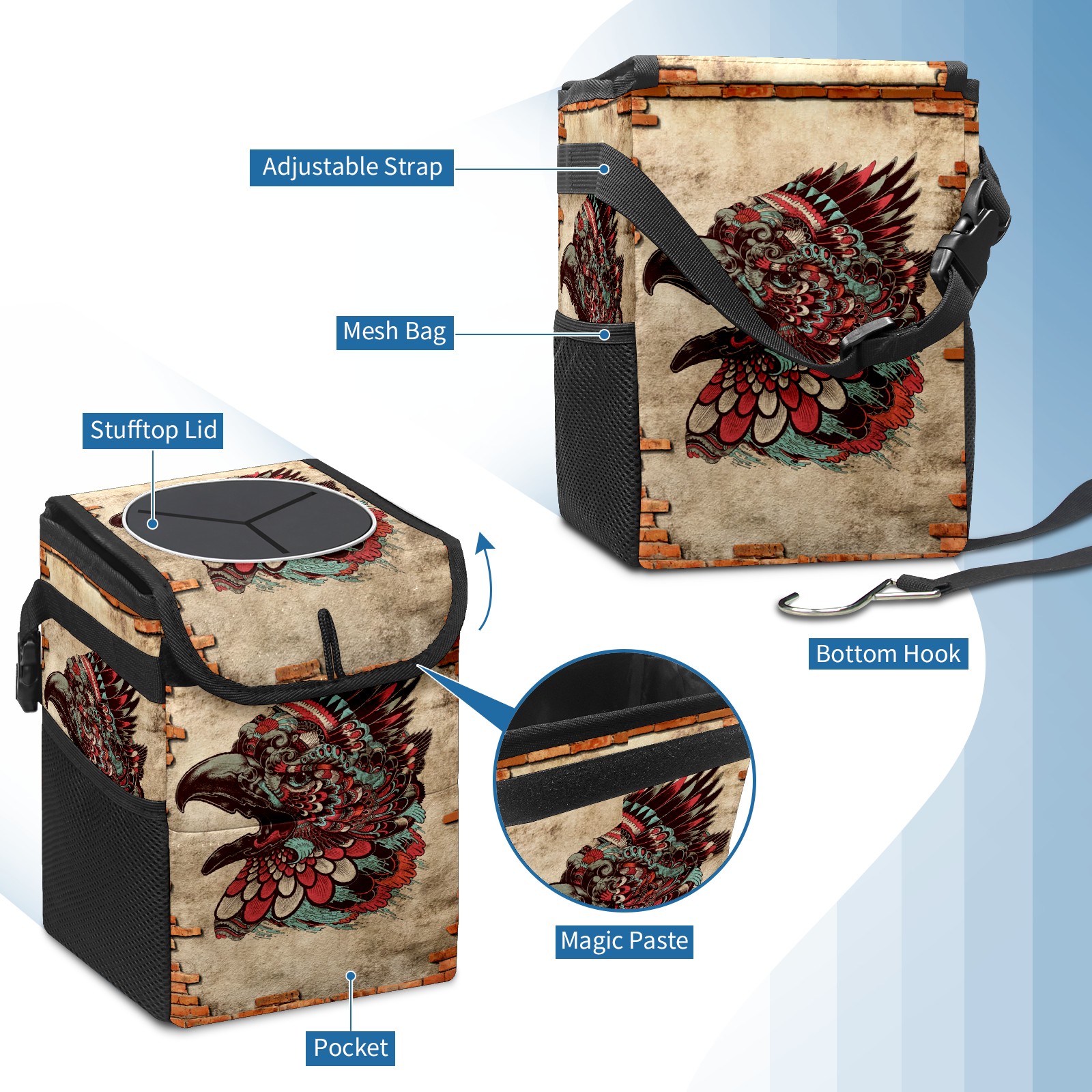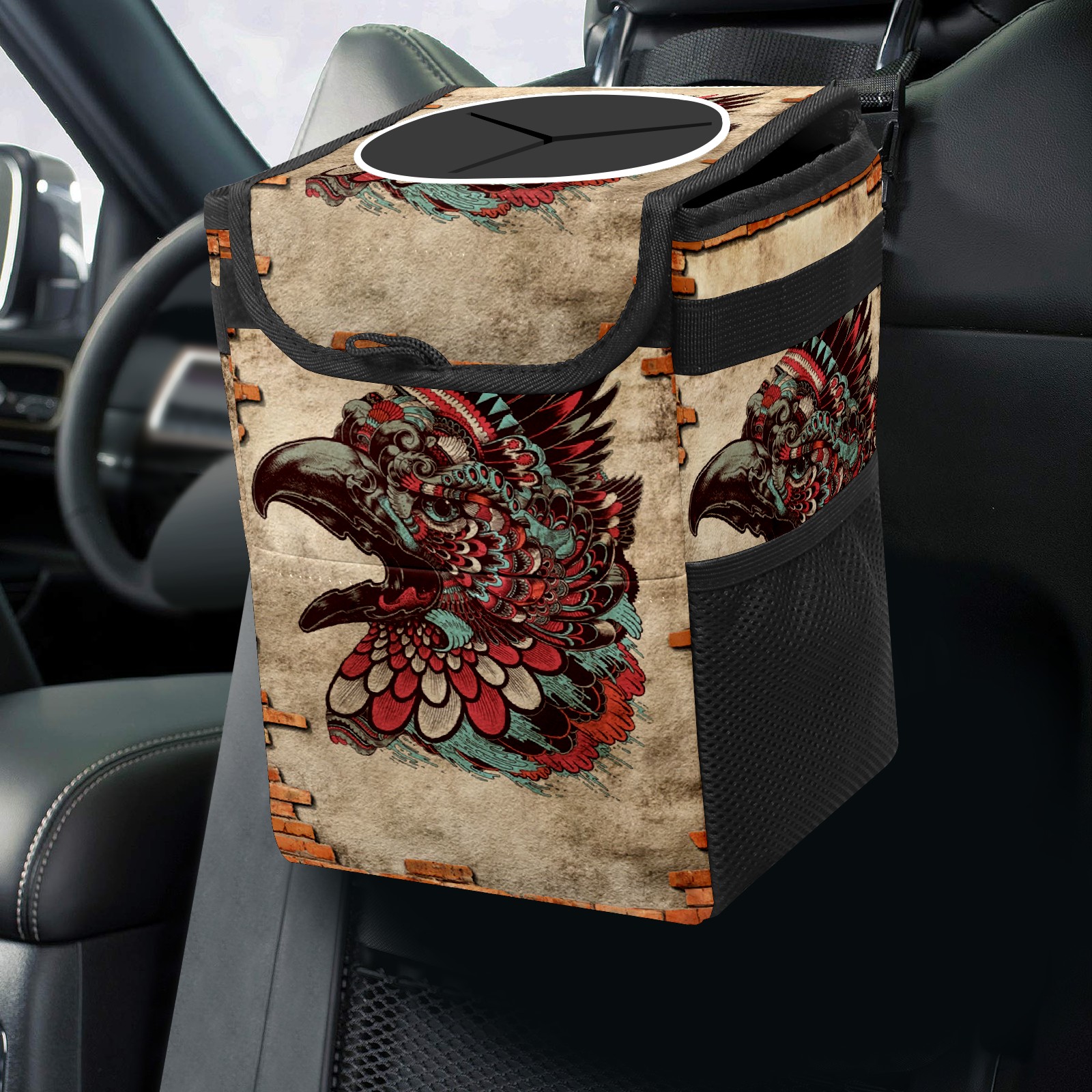 Car Trash Bin with Lid Auto Garbage Bag Hanging for Back Seat - Leakproof Trash Can for Cars SUVs Trucks Vehicle Car Accessories (花雕)