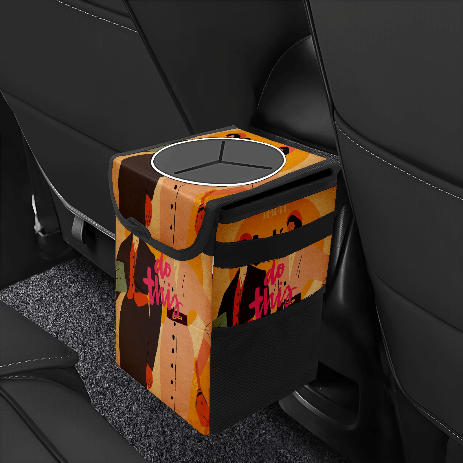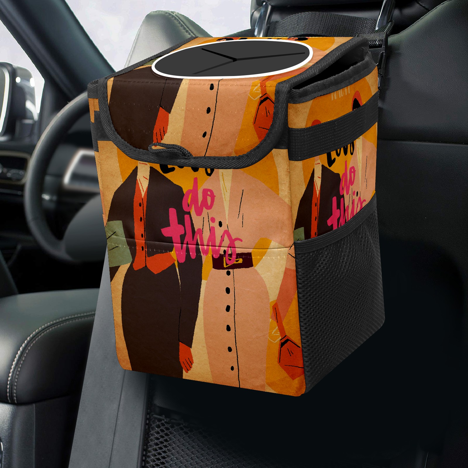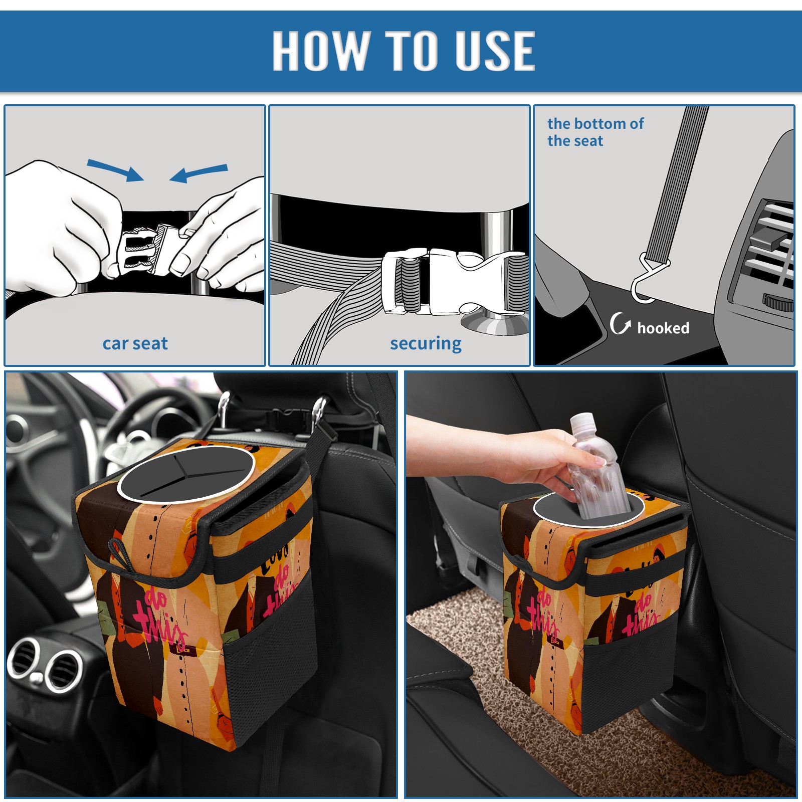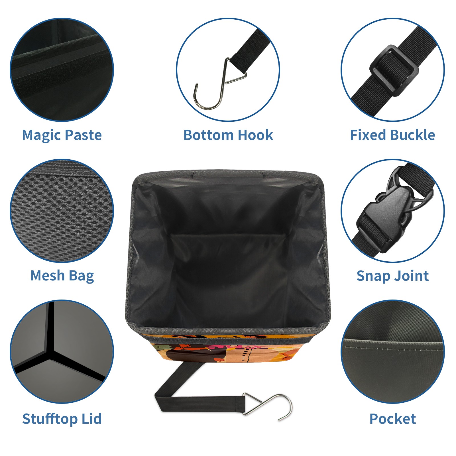 Car Trash Bin with Lid Auto Garbage Bag Hanging for Back Seat - Leakproof Trash Can for Cars SUVs Trucks Vehicle Car Accessories (复古杂志修改8)