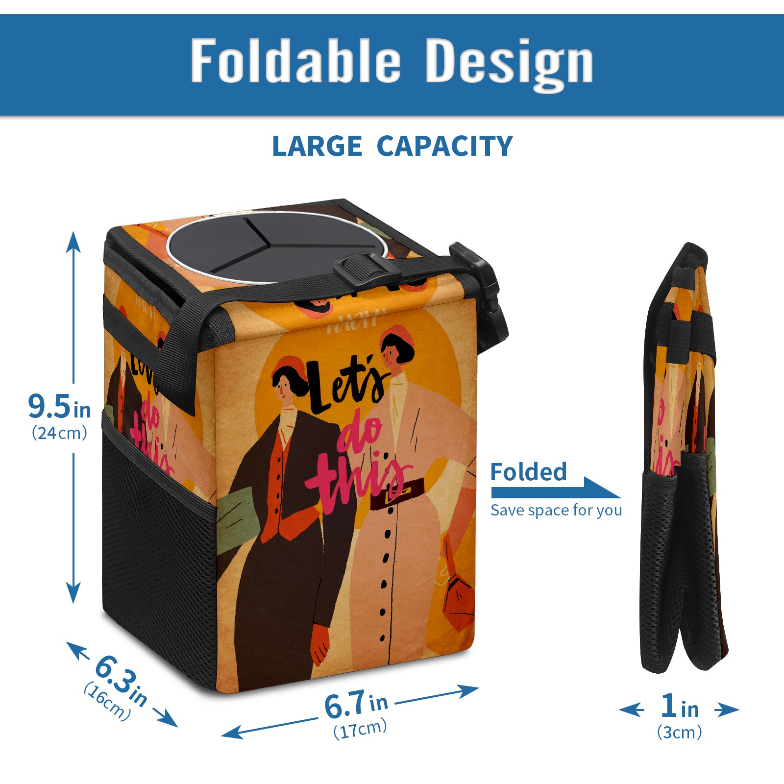 FOLDABLE & SPACE-SAVING Compact 9.5"×6.7"×6.3" size fits perfectly in any vehicle space Instantly folds flat when not in use - stores effortlessly under seats or in door pockets MULTI-FUNCTION ORGANIZER Large main compartment holds bottles, wrappers and tissues Additional pockets for wet wipes, masks or small accessories WATERPROOF & LEAKPROOF Made with premium leak-proof polyester material Contains messy spills from drinks, snacks, and food Wipe-clean surface resists stains and eliminates odors Package Includes 1× Car Trash Can
