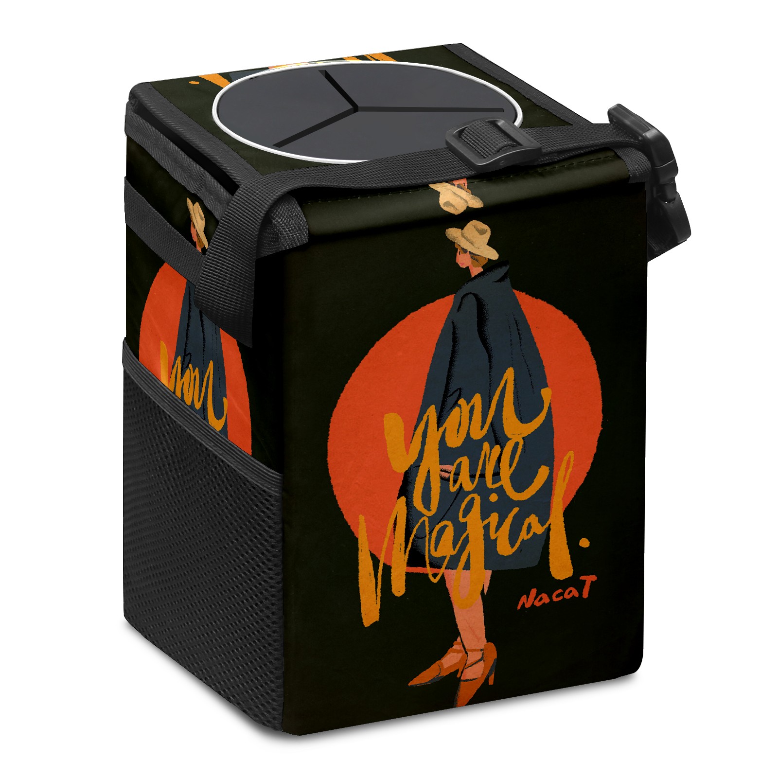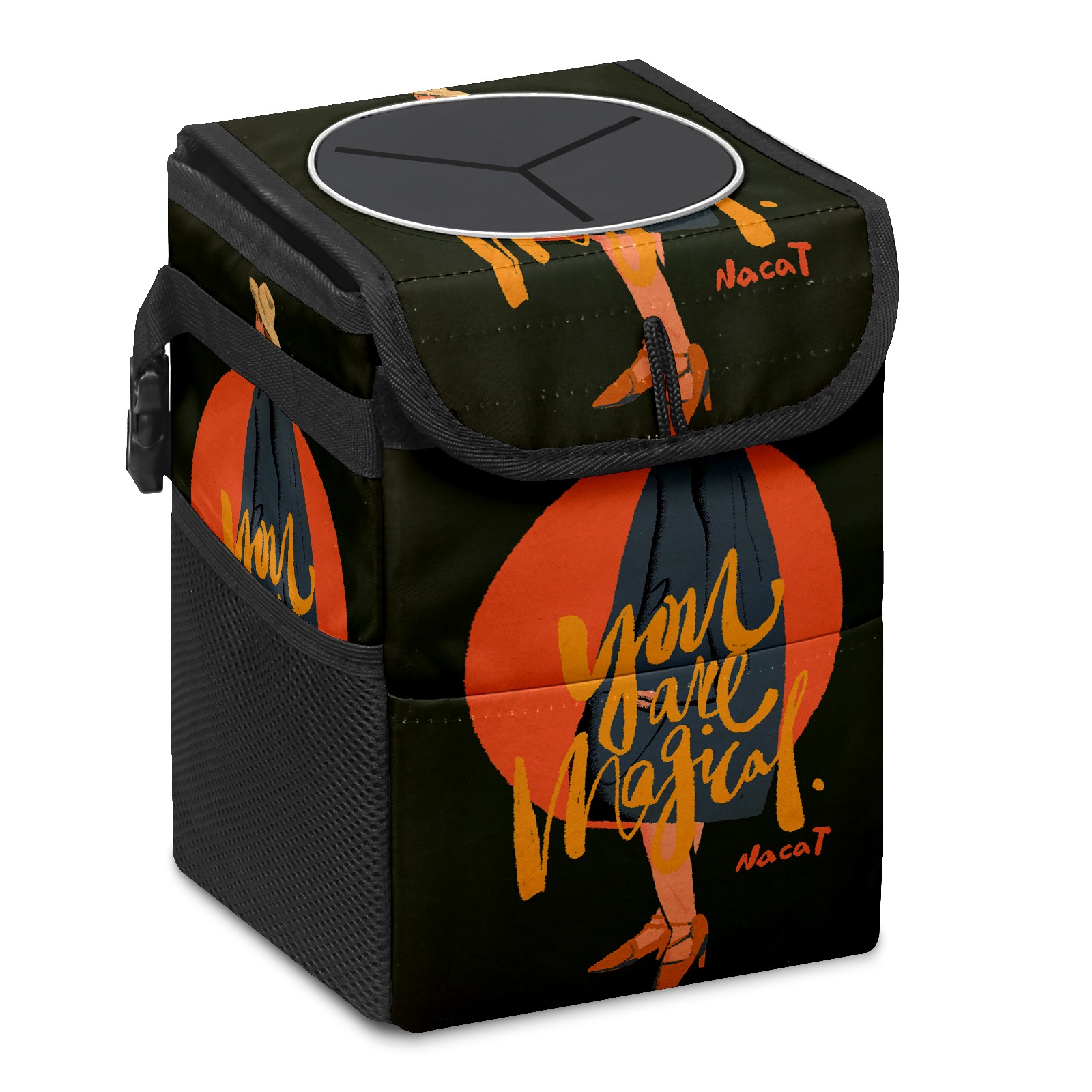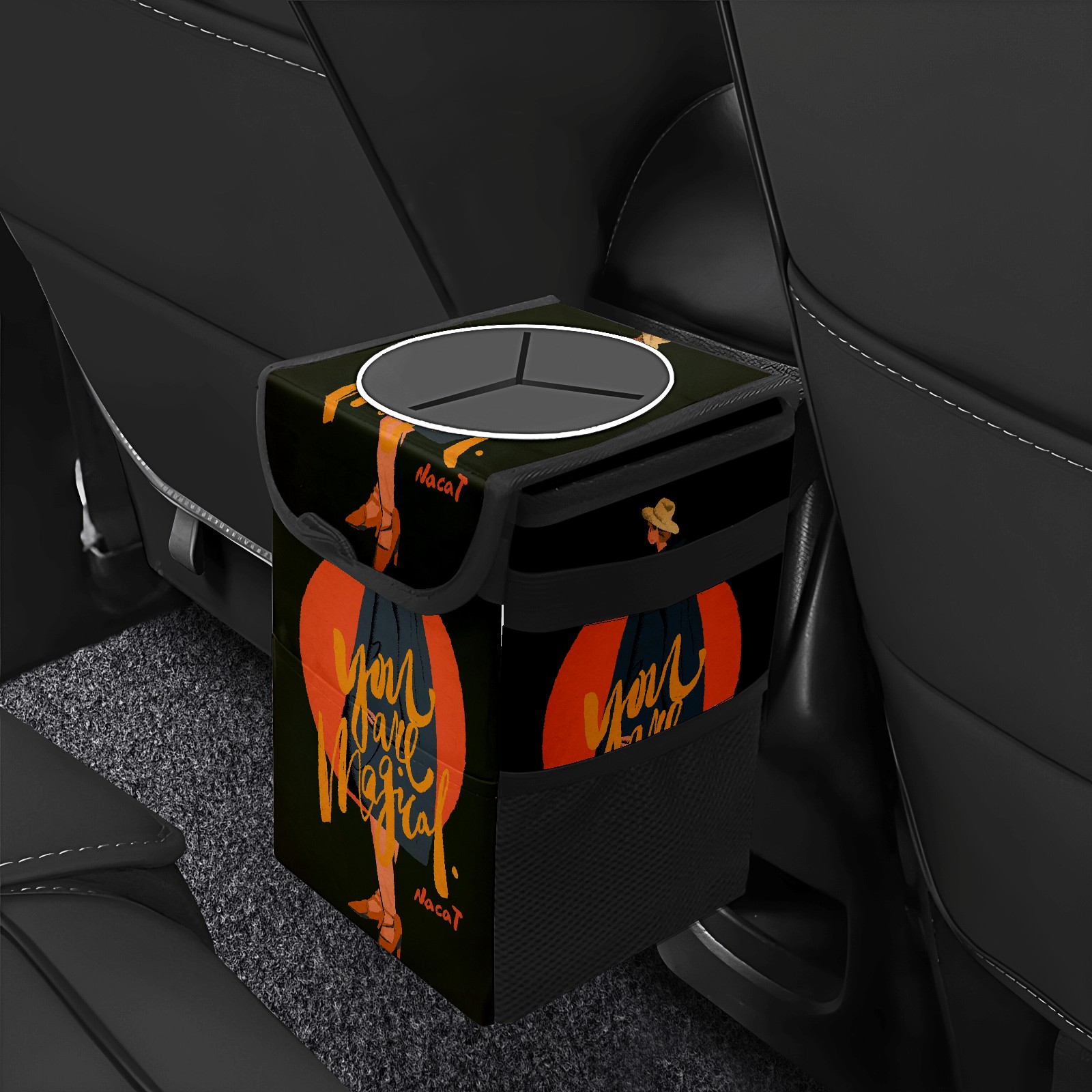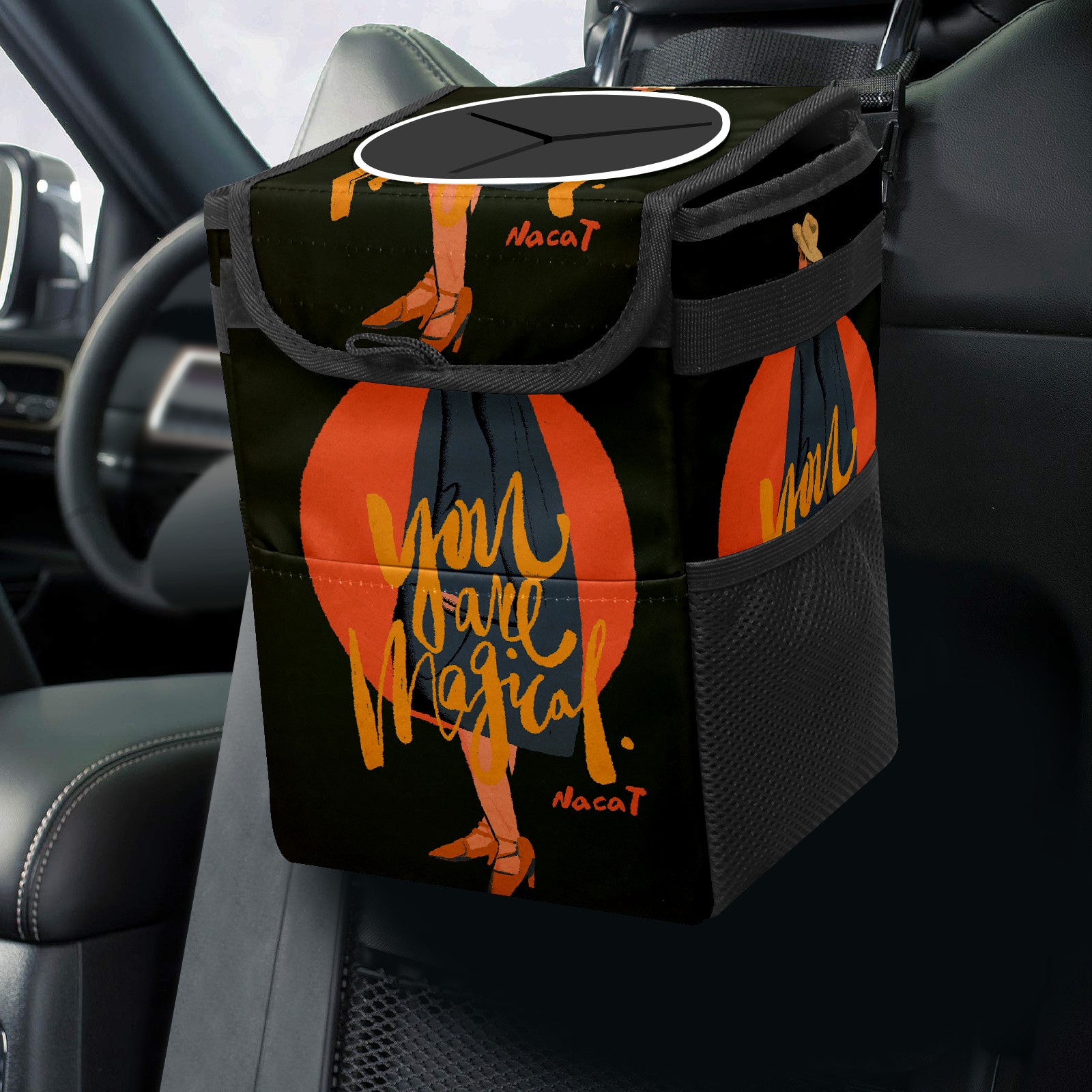 • FOLDABLE & SPACE-SAVING Compact 9.5"×6.7"×6.3" size fits perfectly in any vehicle space Instantly folds flat when not in use - stores effortlessly under seats or in door pockets MULTI-FUNCTION ORGANIZER Large main compartment holds bottles, wrappers and tissues Additional pockets for wet wipes, masks or small accessories WATERPROOF & LEAKPROOF Made with premium leak-proof polyester material Contains messy spills from drinks, snacks, and food Wipe-clean surface resists stains and eliminates odors Package Includes 1× Car Trash Can