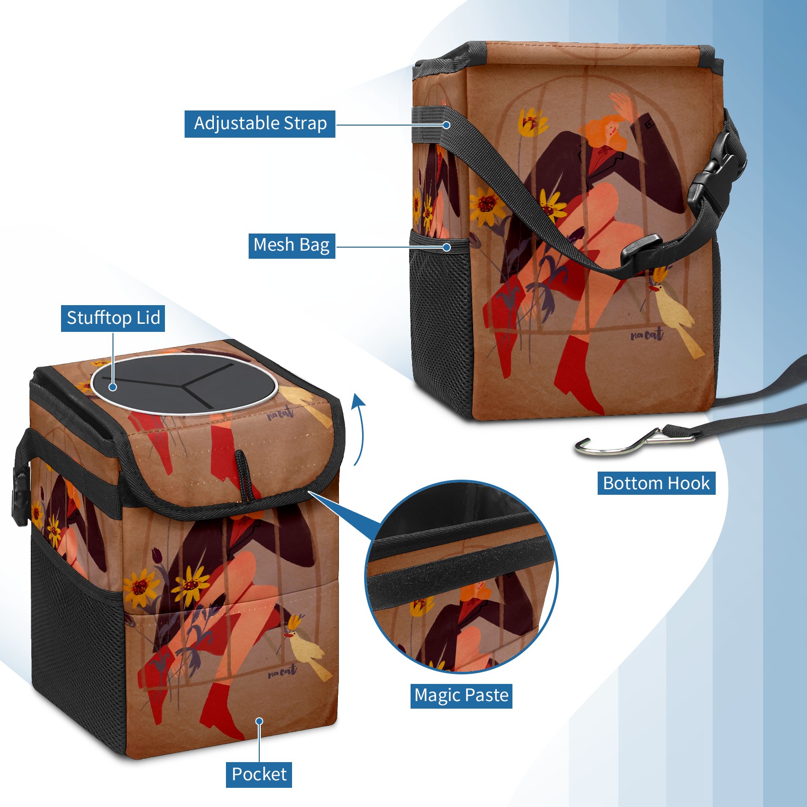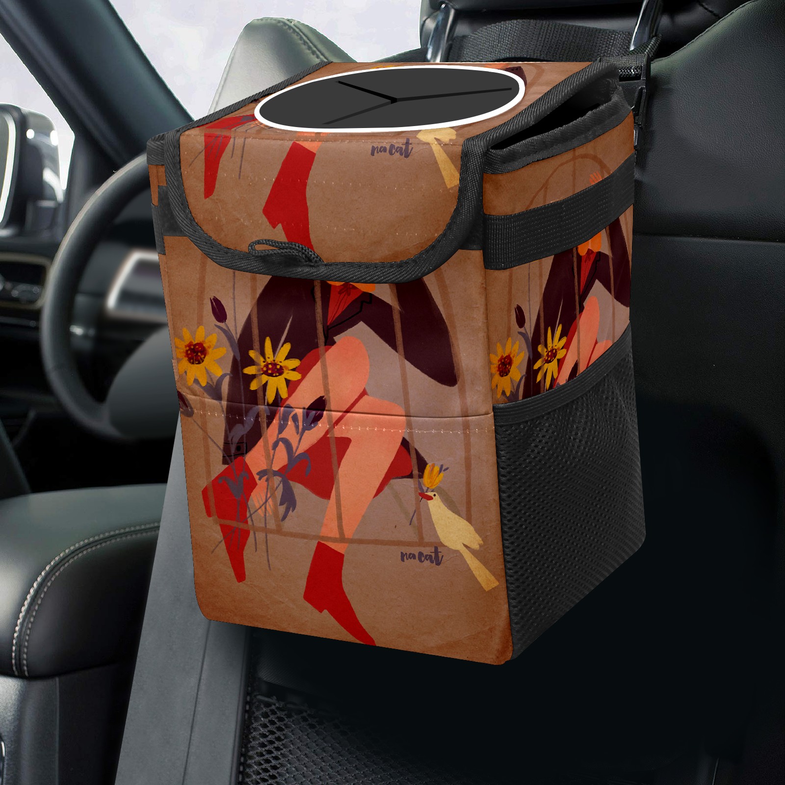 Car Trash Bin with Lid Auto Garbage Bag Hanging for Back Seat - Leakproof Trash Can for Cars SUVs Trucks Vehicle Car Accessories (复古杂志修改5)