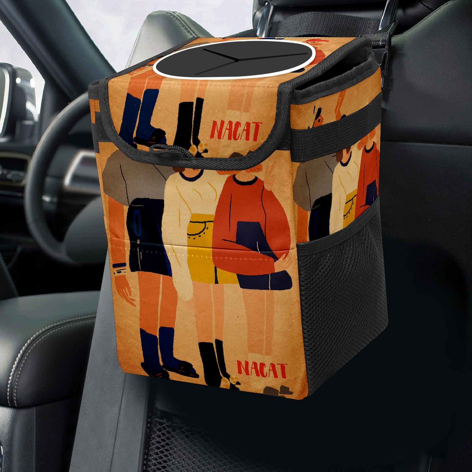 Car Trash Bin with Lid Auto Garbage Bag Hanging for Back Seat - Leakproof Trash Can for Cars SUVs Trucks Vehicle Car Accessories (复古杂志修改3)
