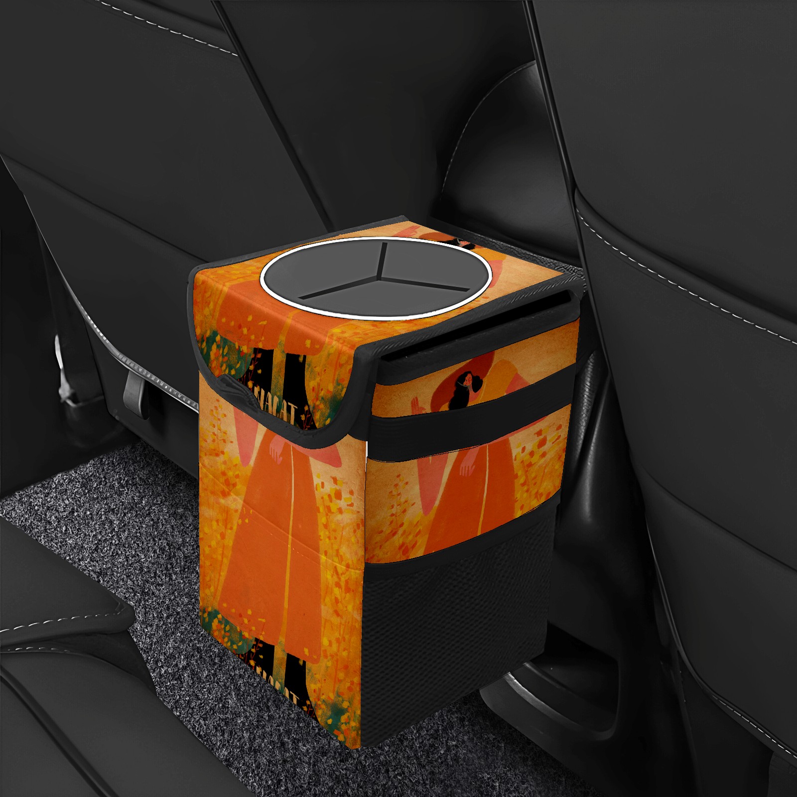 FOLDABLE & SPACE-SAVING Compact 9.5"×6.7"×6.3" size fits perfectly in any vehicle space Instantly folds flat when not in use - stores effortlessly under seats or in door pockets MULTI-FUNCTION ORGANIZER Large main compartment holds bottles, wrappers and tissues Additional pockets for wet wipes, masks or small accessories WATERPROOF & LEAKPROOF Made with premium leak-proof polyester material Contains messy spills from drinks, snacks, and food Wipe-clean surface resists stains and eliminates odors Package Includes 1× Car Trash Can
