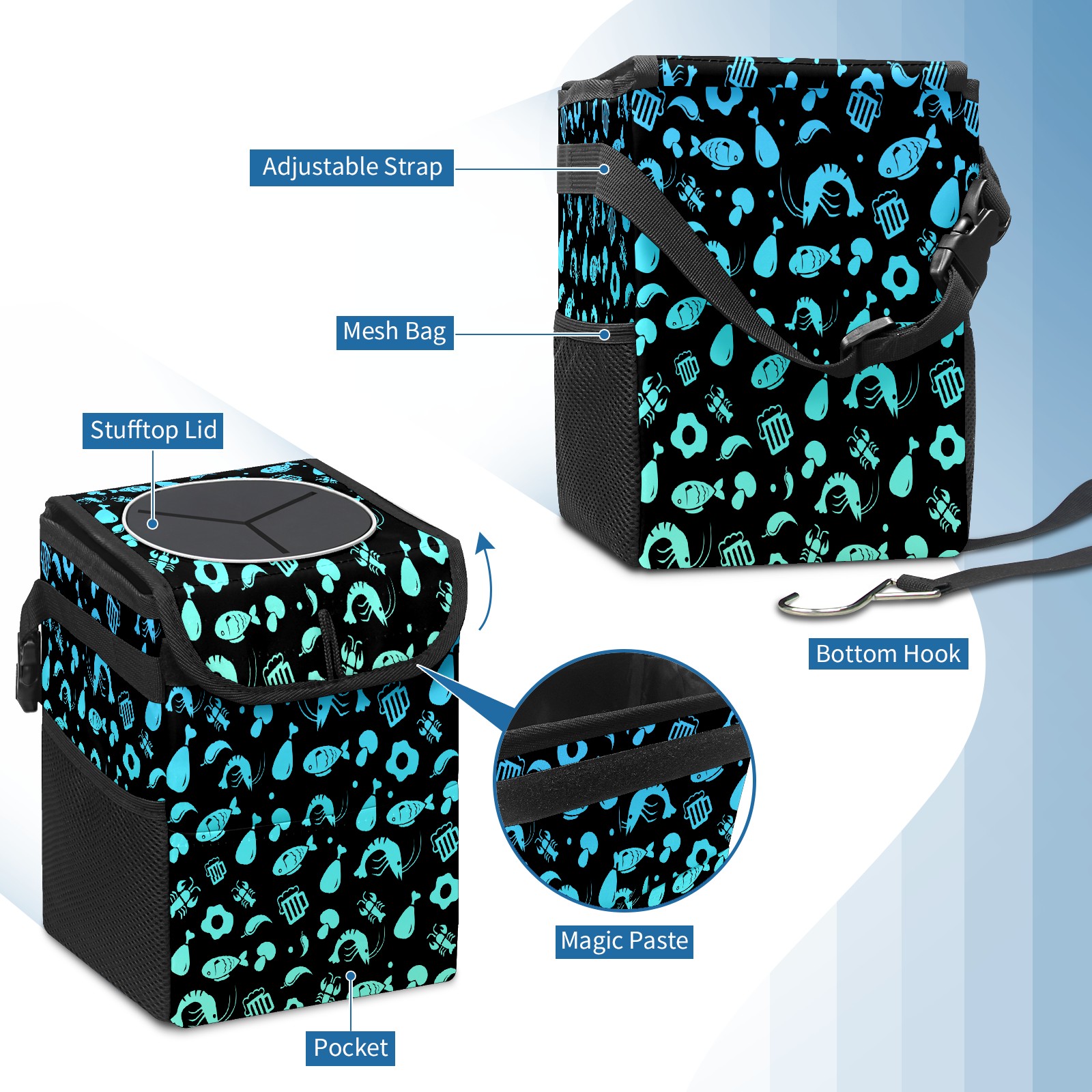 Эта многофункциональная автомобильная мусорная корзина отличается стильным принтом, сочетающим в себе практичность и эстетику. Изготовленная из высококачественной саржевой ткани с плетеными ремнями, она прочная, долговечная и износостойкая. Размеры корзины составляют 24×17×16 см (9,5×6,7×6,3 дюйма). Верхнее отверстие имеет прорезиненное покрытие для удобной утилизации мусора; боковые сетчатые карманы и передний карман обеспечивают удобное хранение закусок, телефонов и других мелких предметов.
