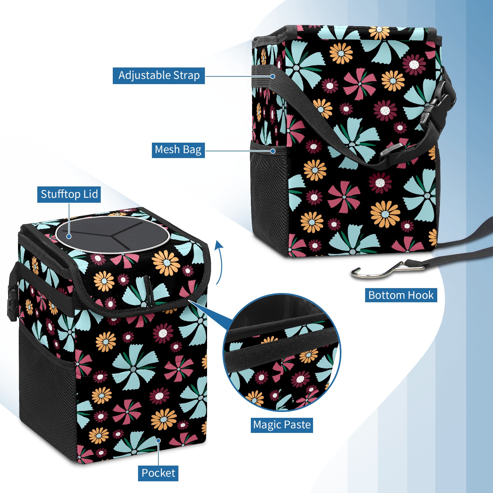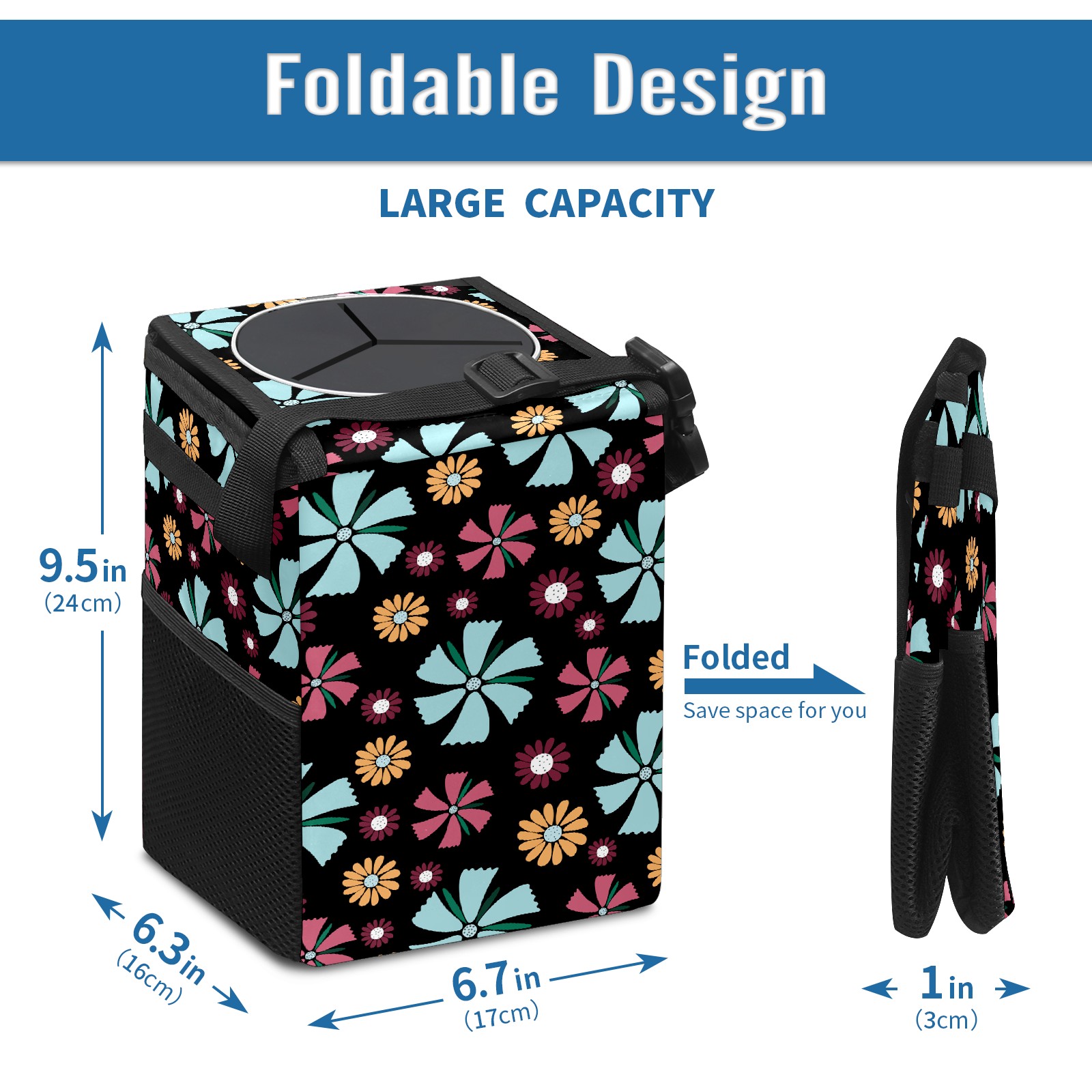 Эта многофункциональная автомобильная мусорная корзина отличается стильным принтом, сочетающим в себе практичность и эстетику. Изготовленная из высококачественной саржевой ткани с плетеными ремнями, она прочная, долговечная и износостойкая. Размеры корзины составляют 24×17×16 см (9,5×6,7×6,3 дюйма). Верхнее отверстие имеет прорезиненное покрытие для удобной утилизации мусора; боковые сетчатые карманы и передний карман обеспечивают удобное хранение закусок, телефонов и других мелких предметов.