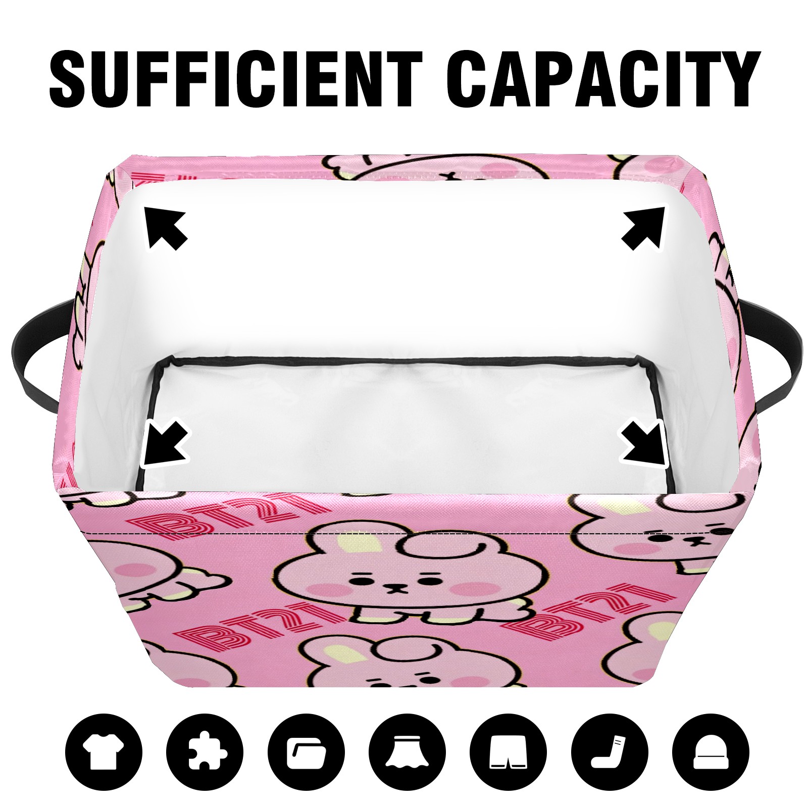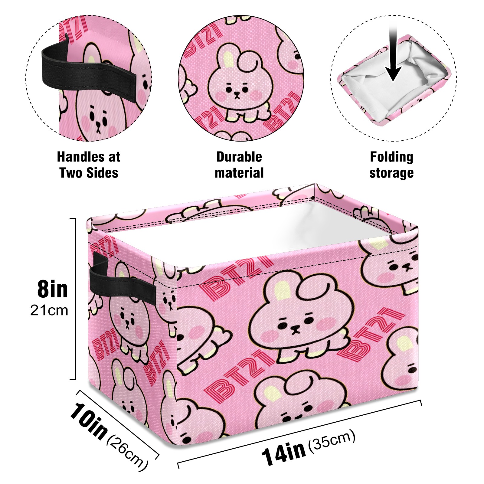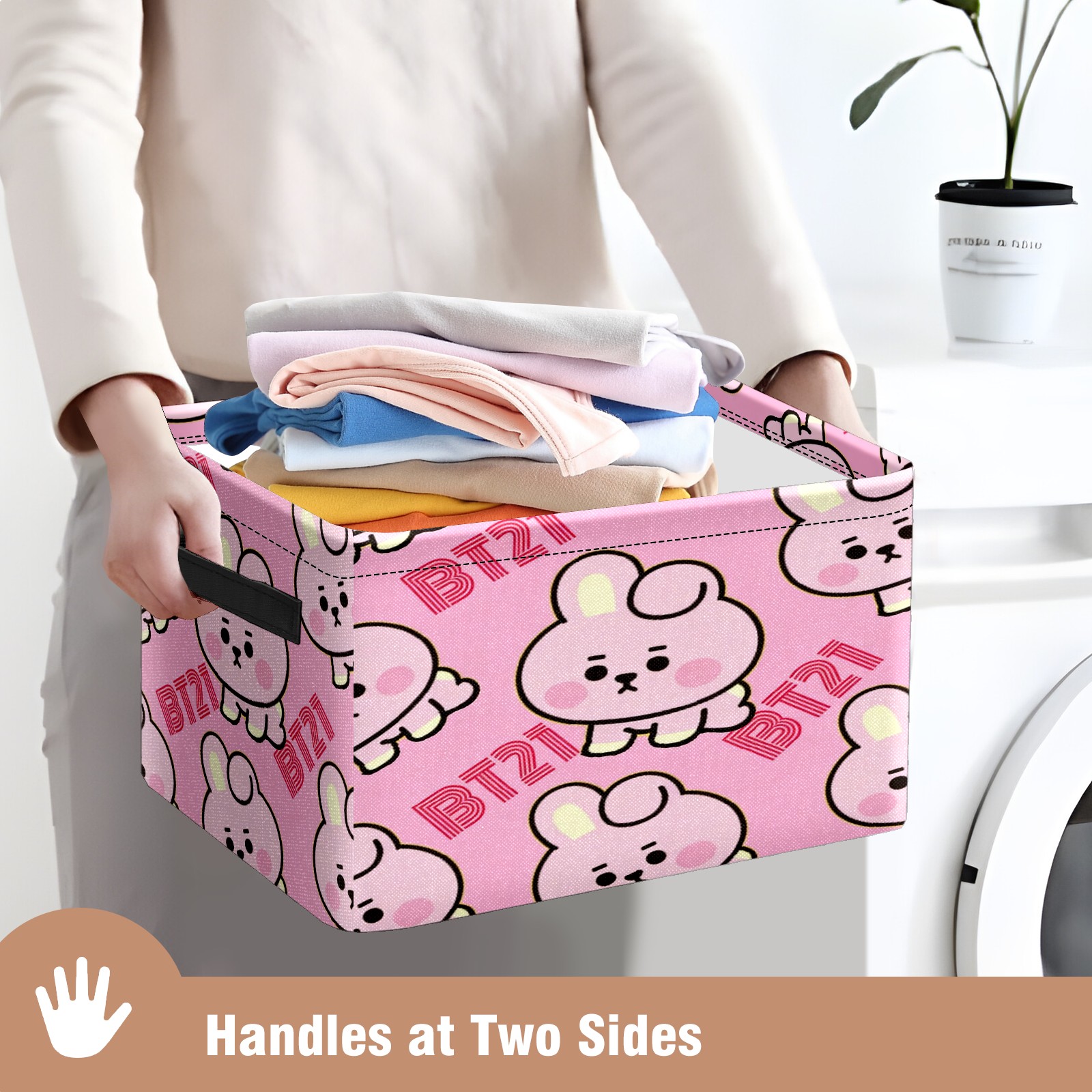 Foldable and Stackable Fabric Storage Basket for Home Organization with Handles, Decorative Closet Bins for Shelves and Laundry Storage( BT21 Bunny)
