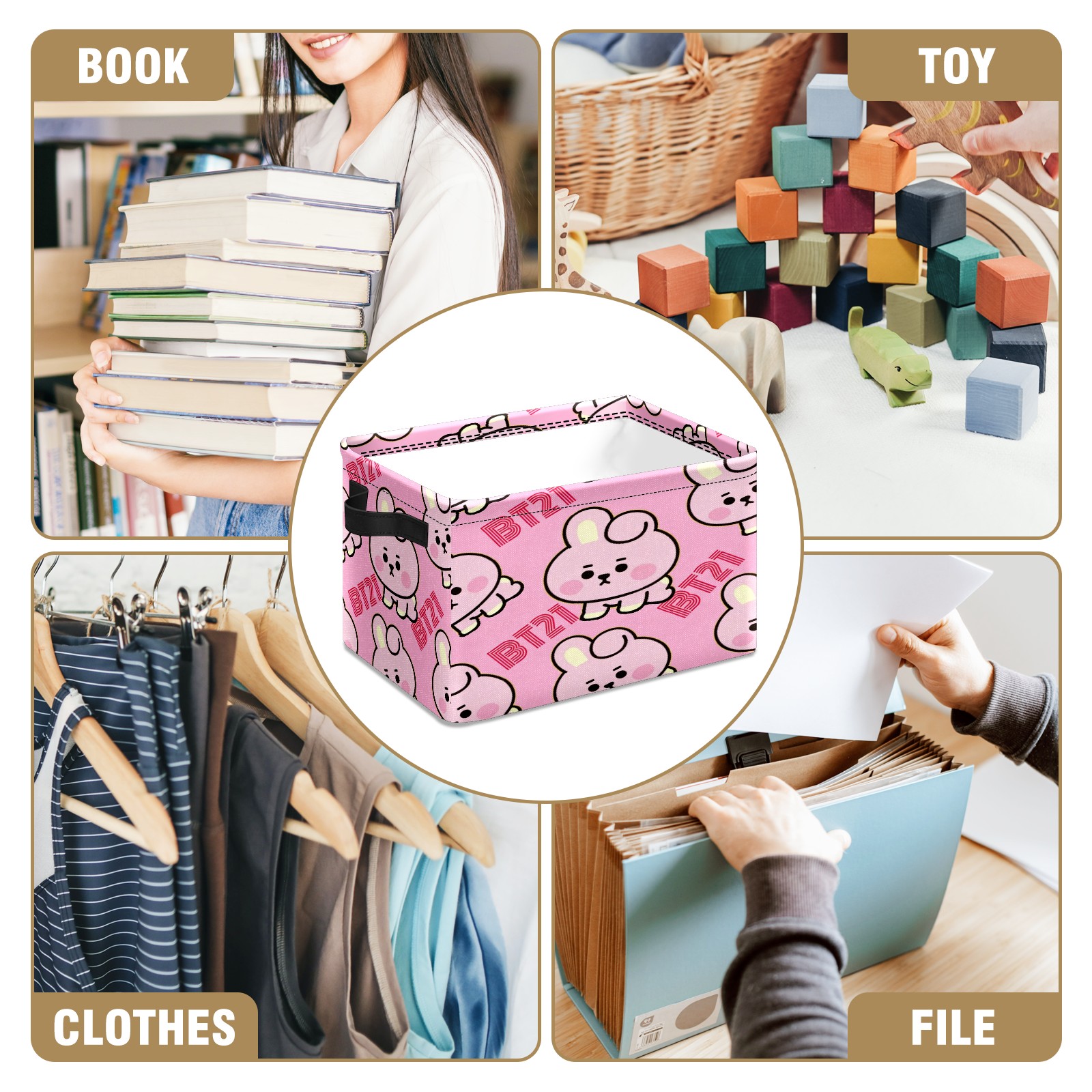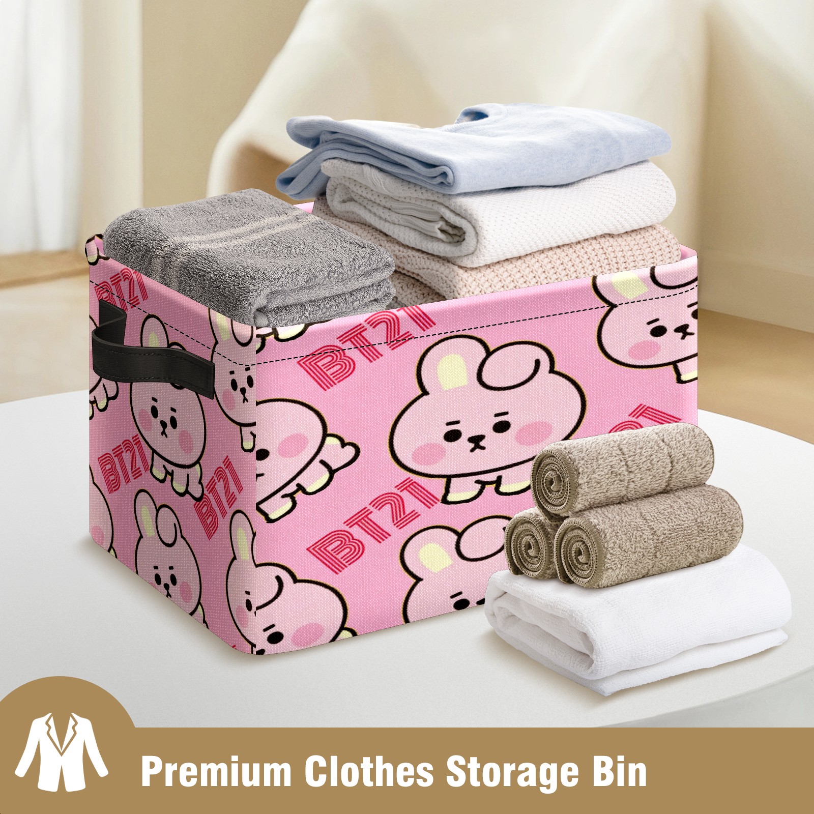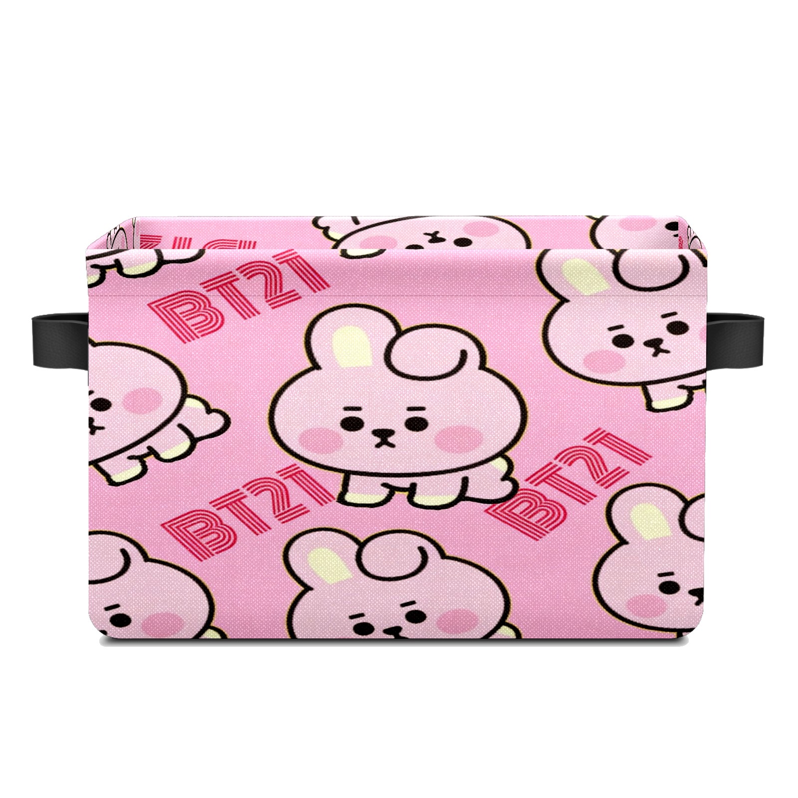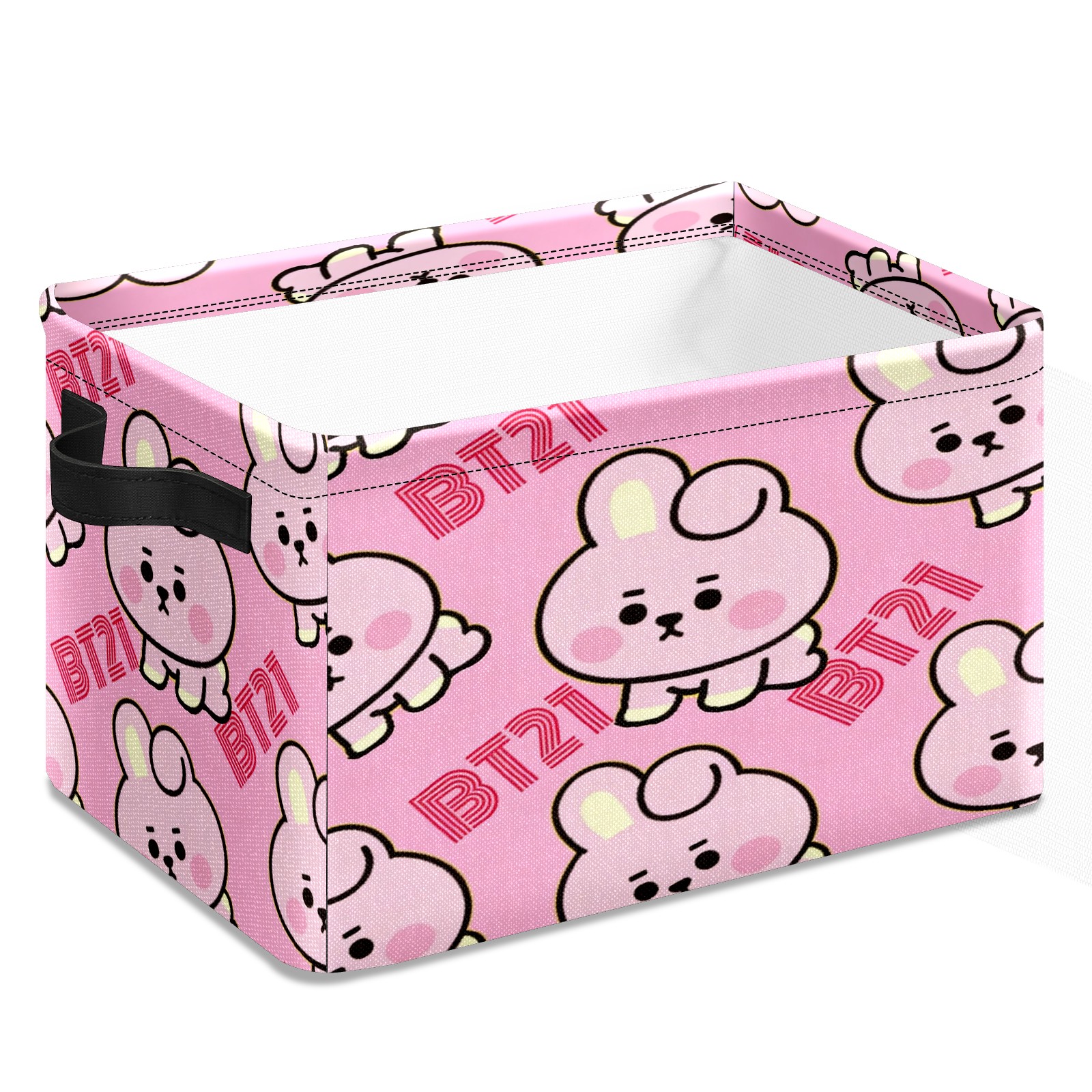 Foldable and Stackable Fabric Storage Basket for Home Organization with Handles, Decorative Closet Bins for Shelves and Laundry Storage( BT21 Bunny)