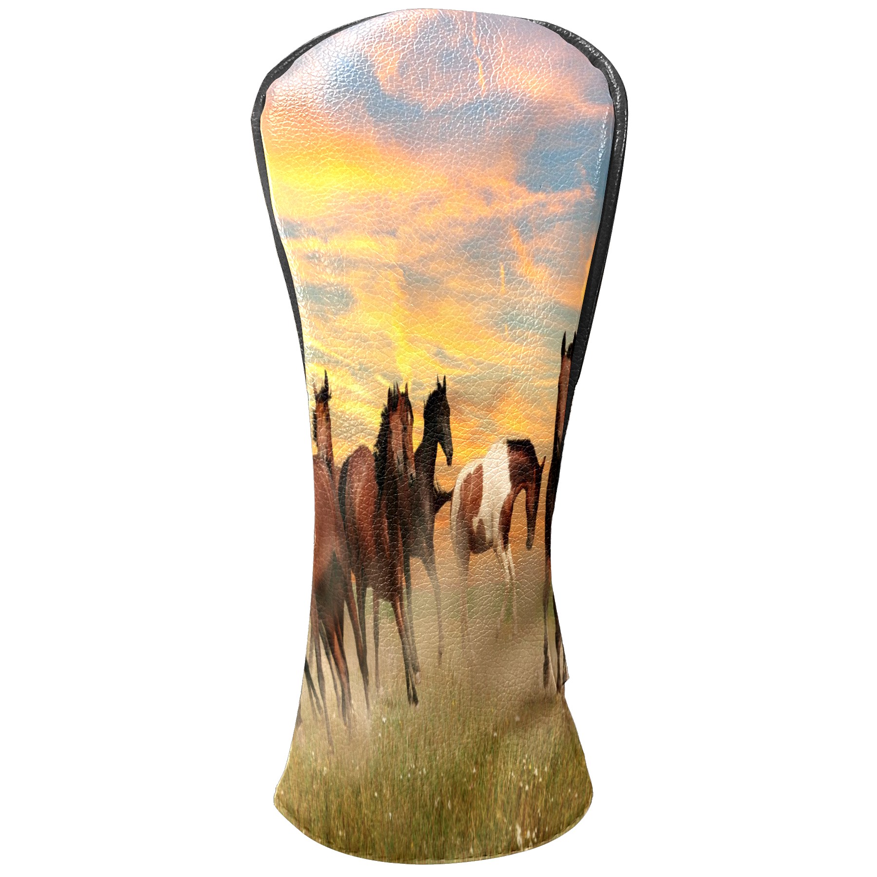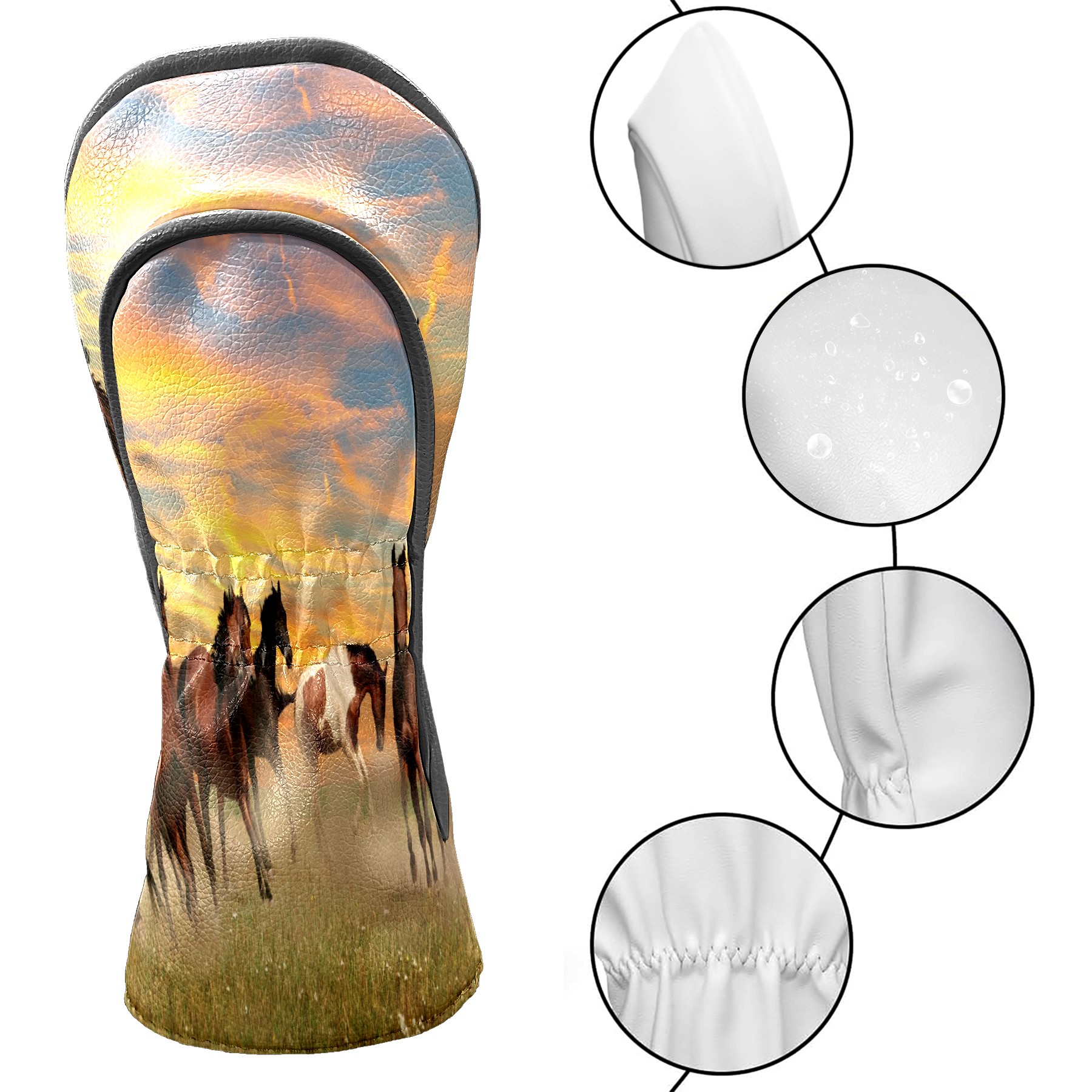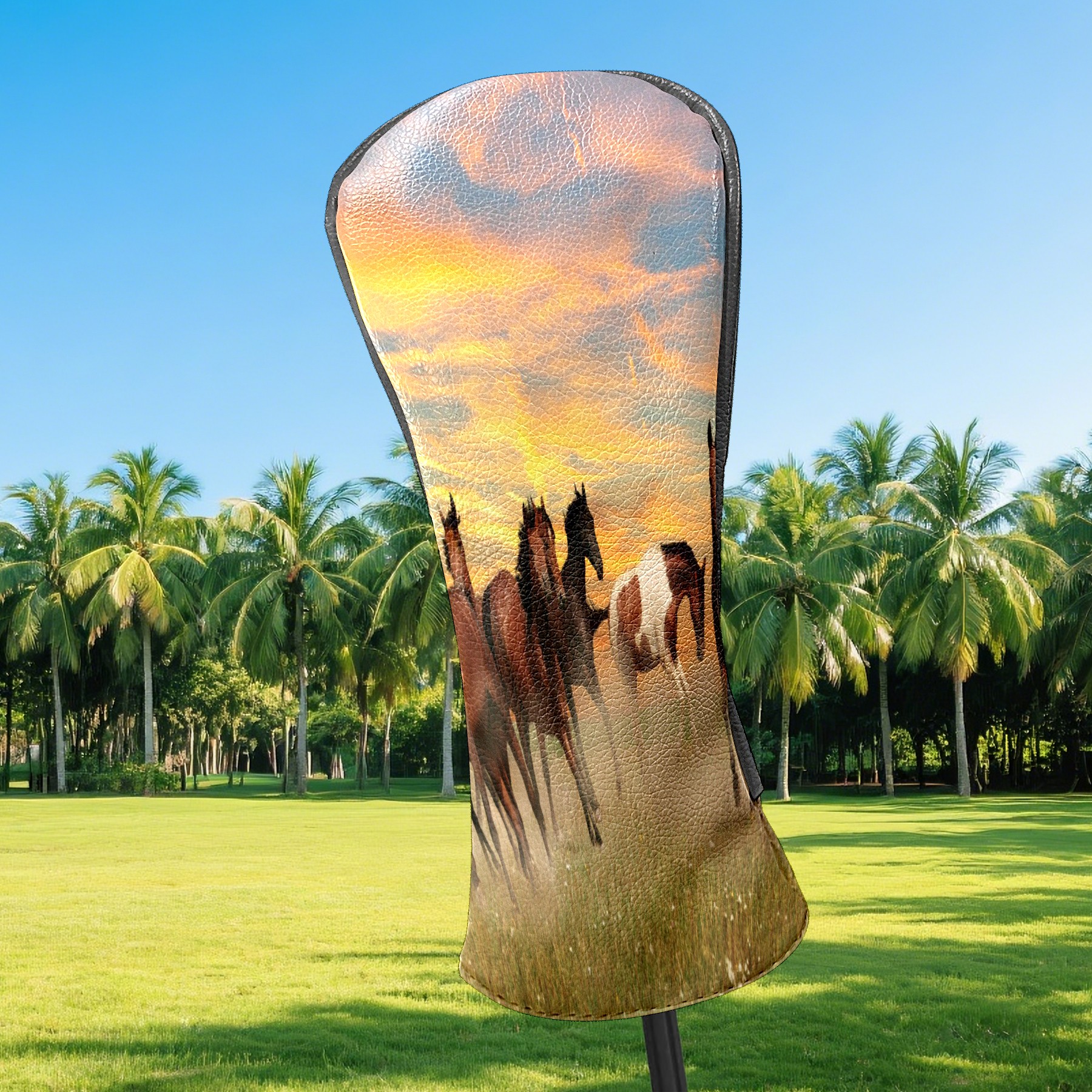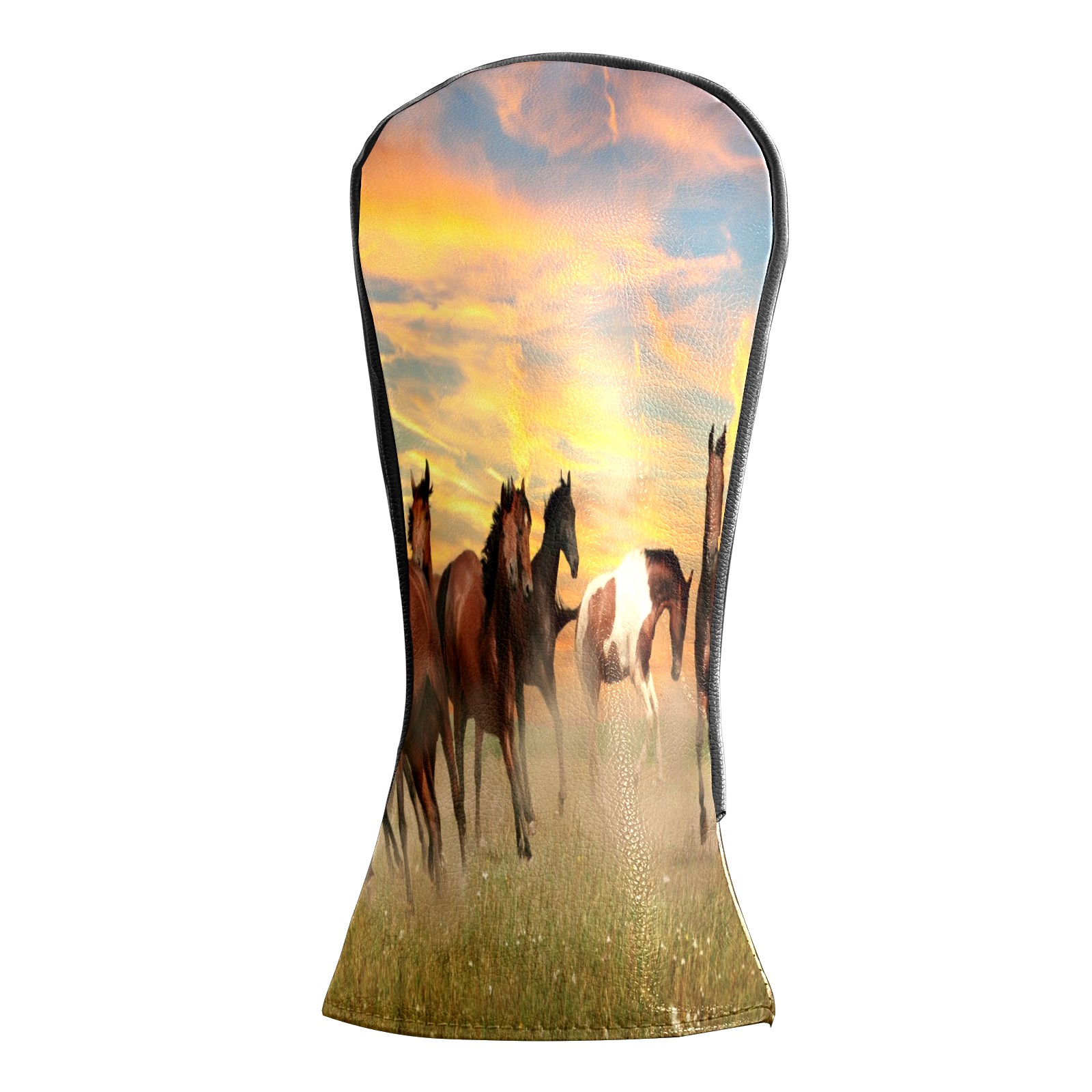 Водонепроницаемый кожаный чехол для головки драйвера удара, чехлы для драйверов Landscape Horses Running In Sunset