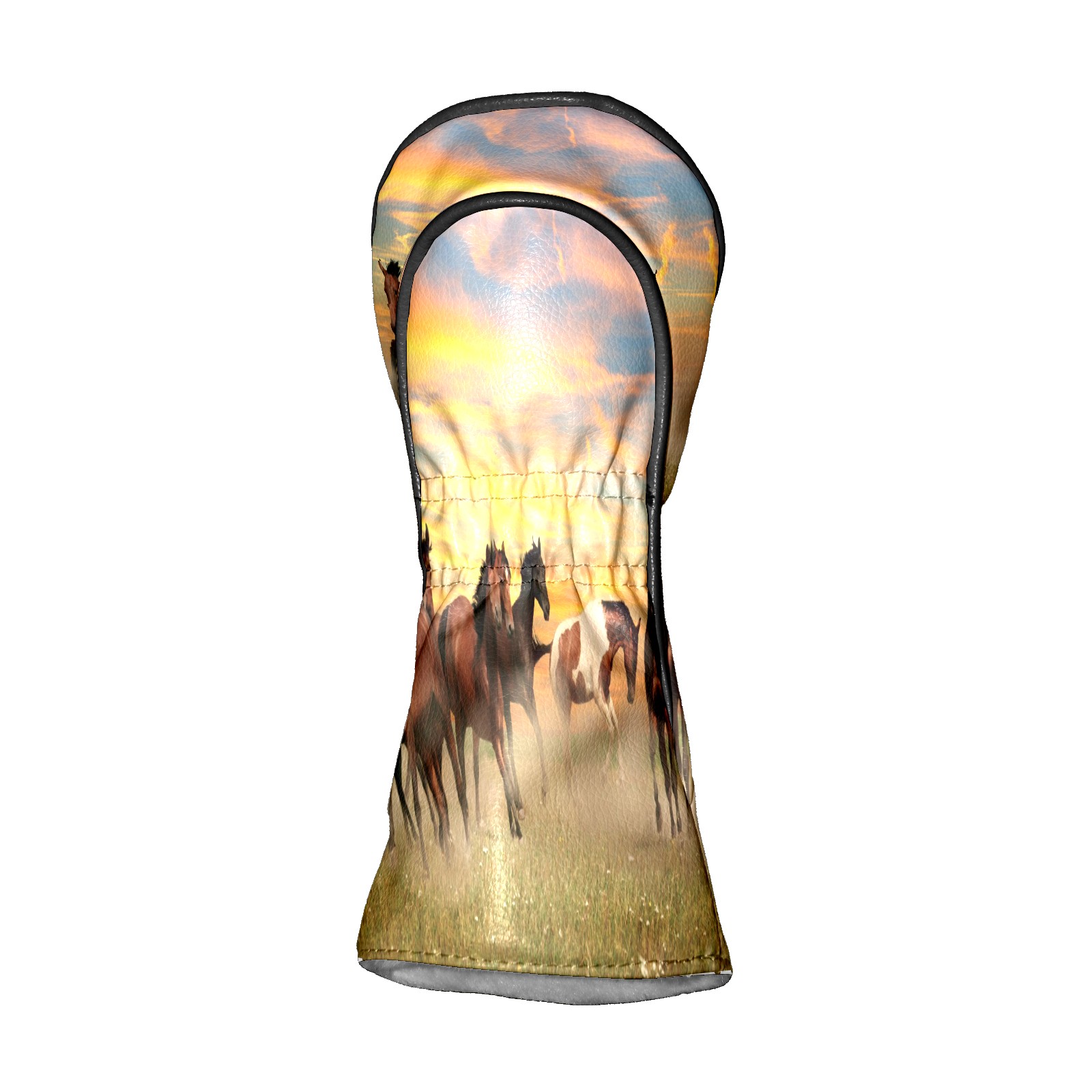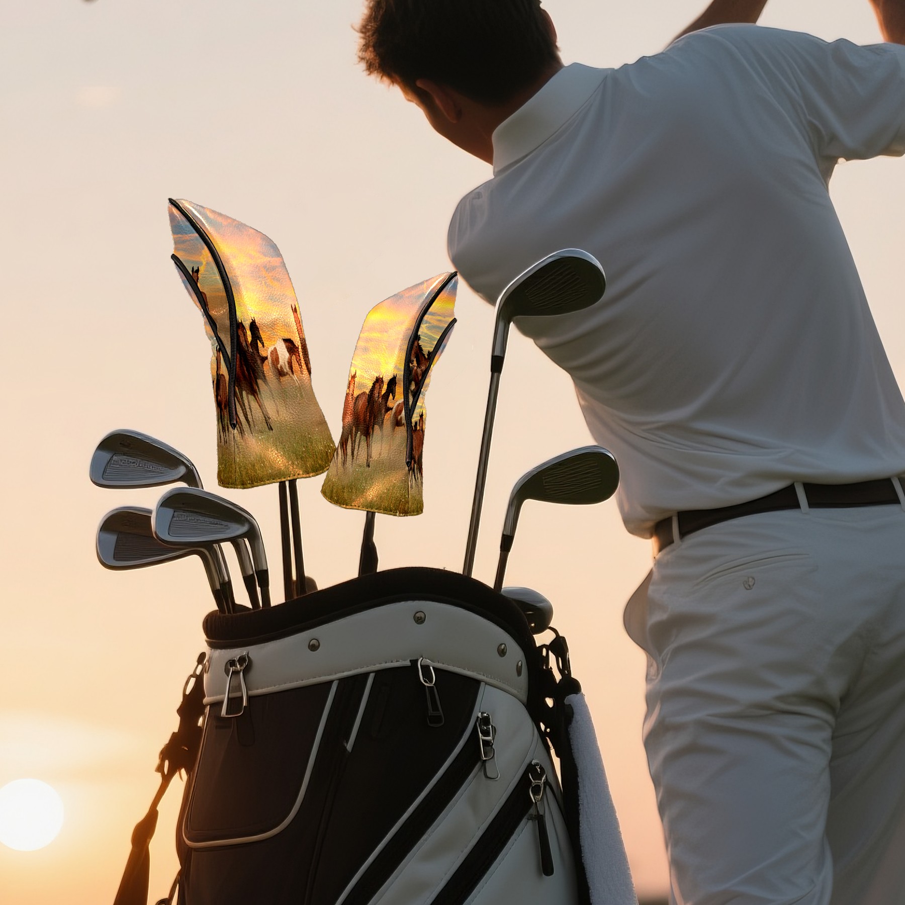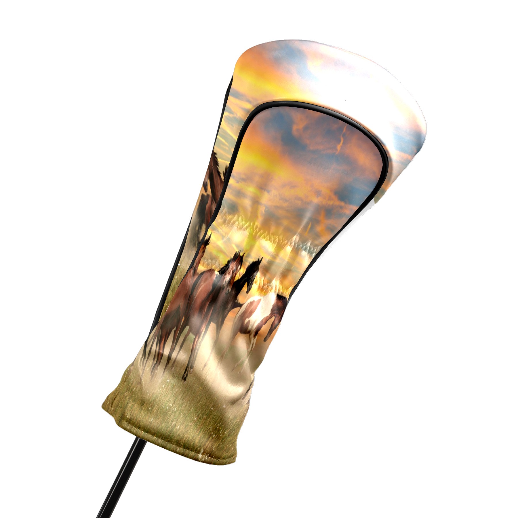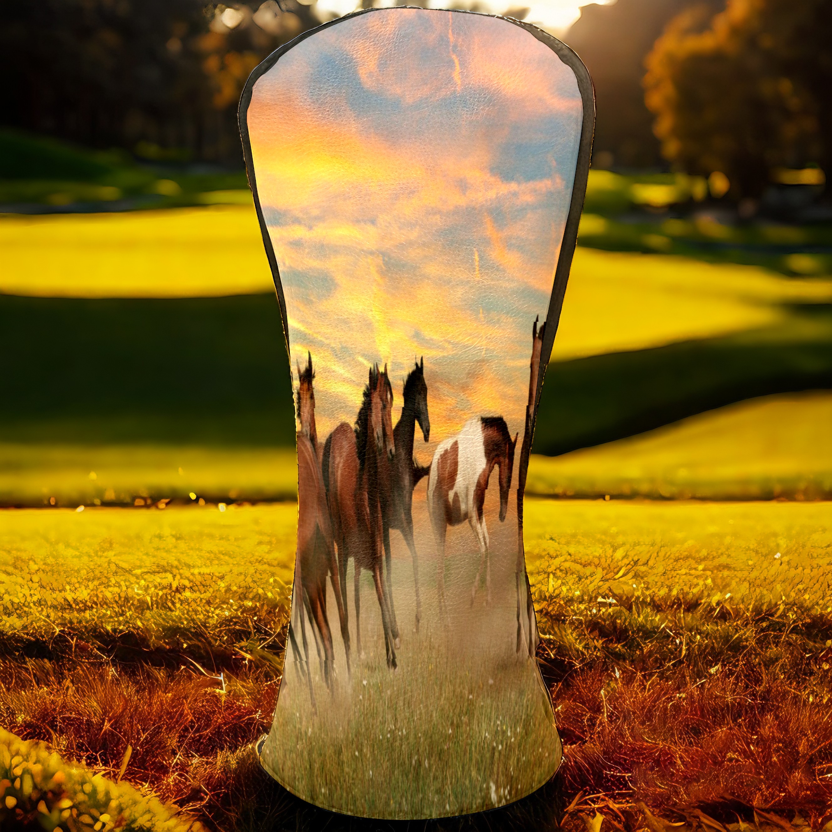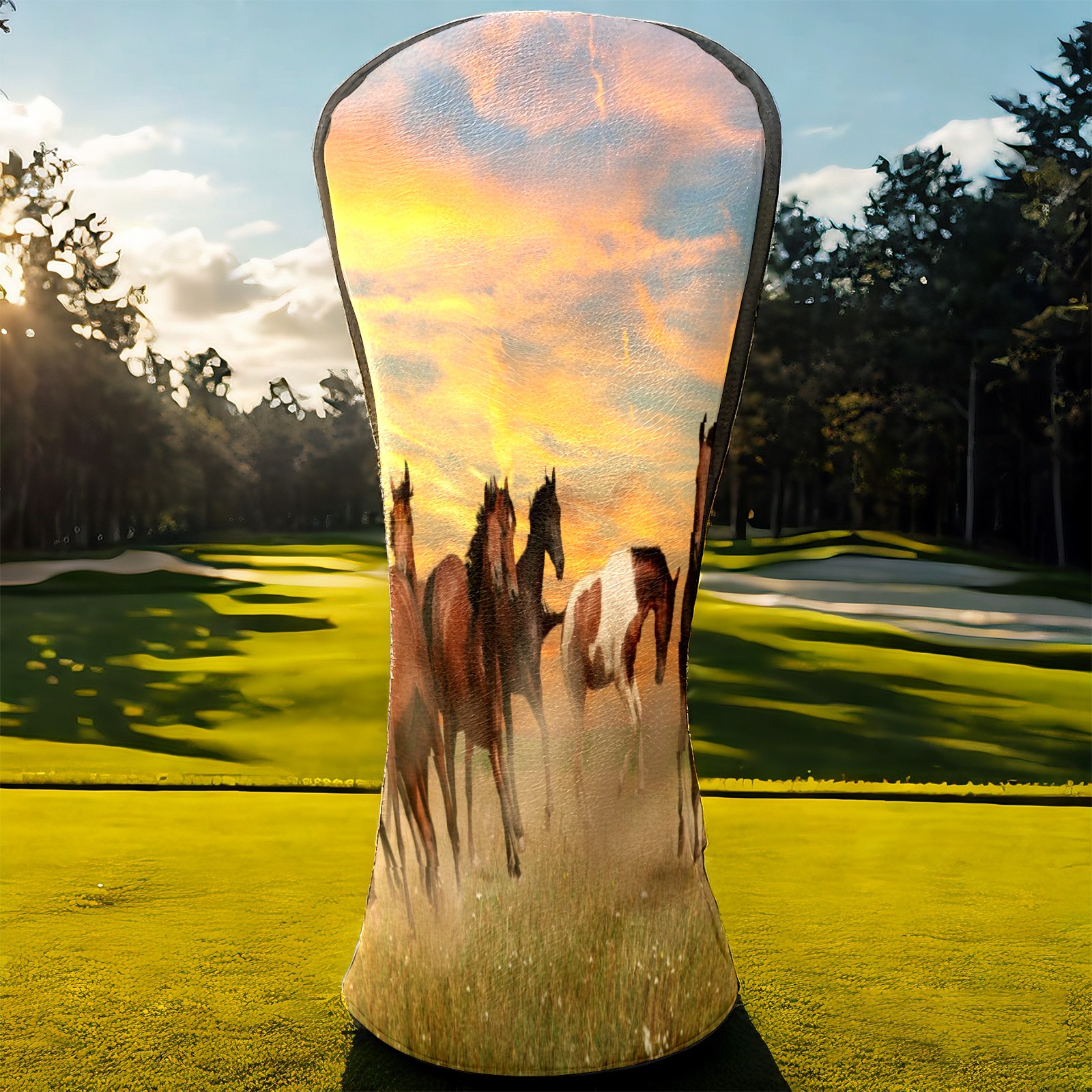 Водонепроницаемый кожаный чехол для головки драйвера удара, чехлы для драйверов Landscape Horses Running In Sunset
