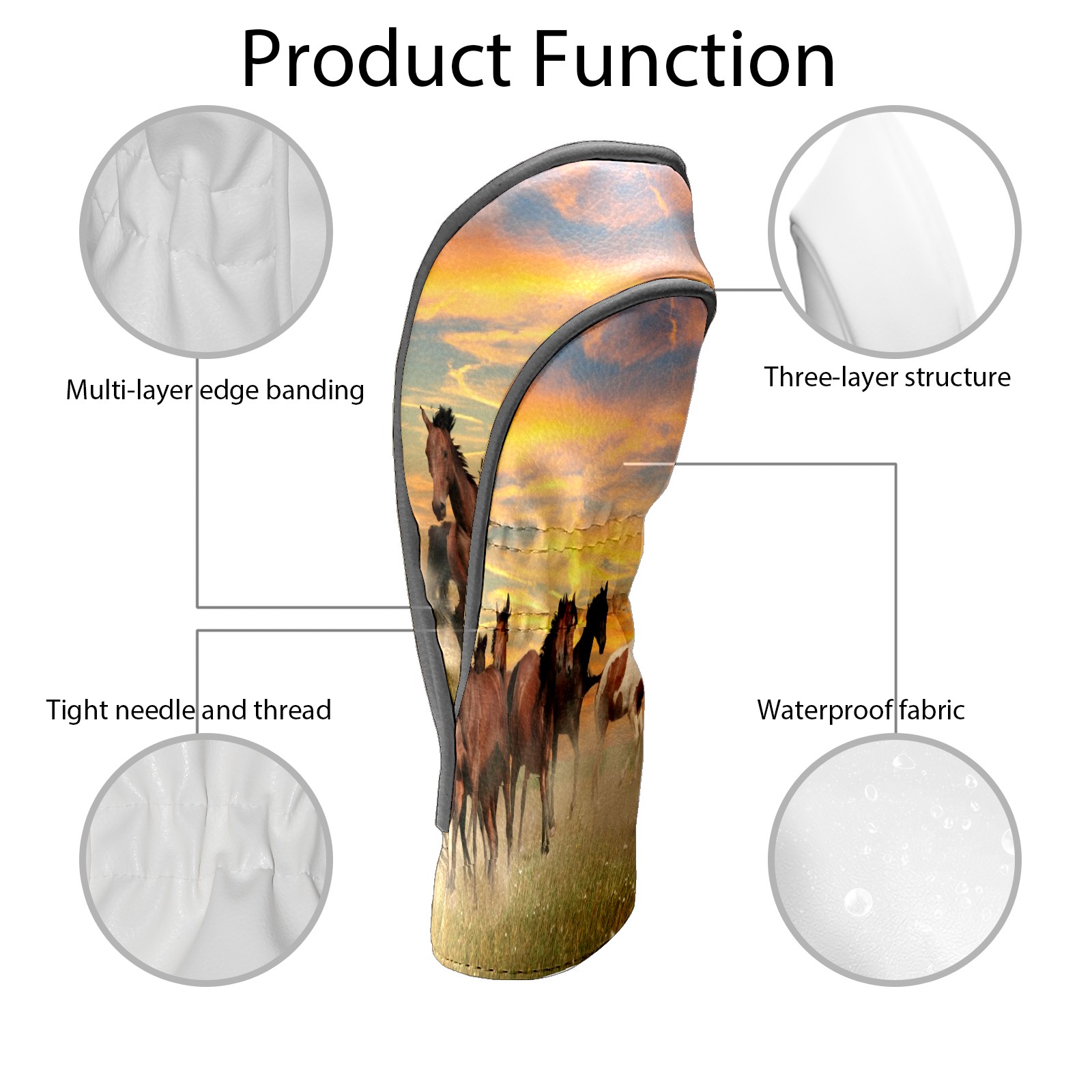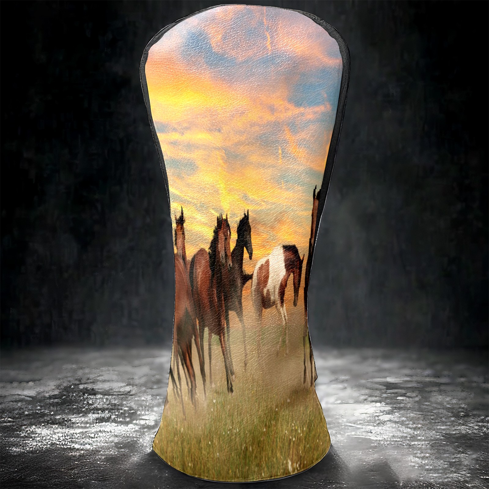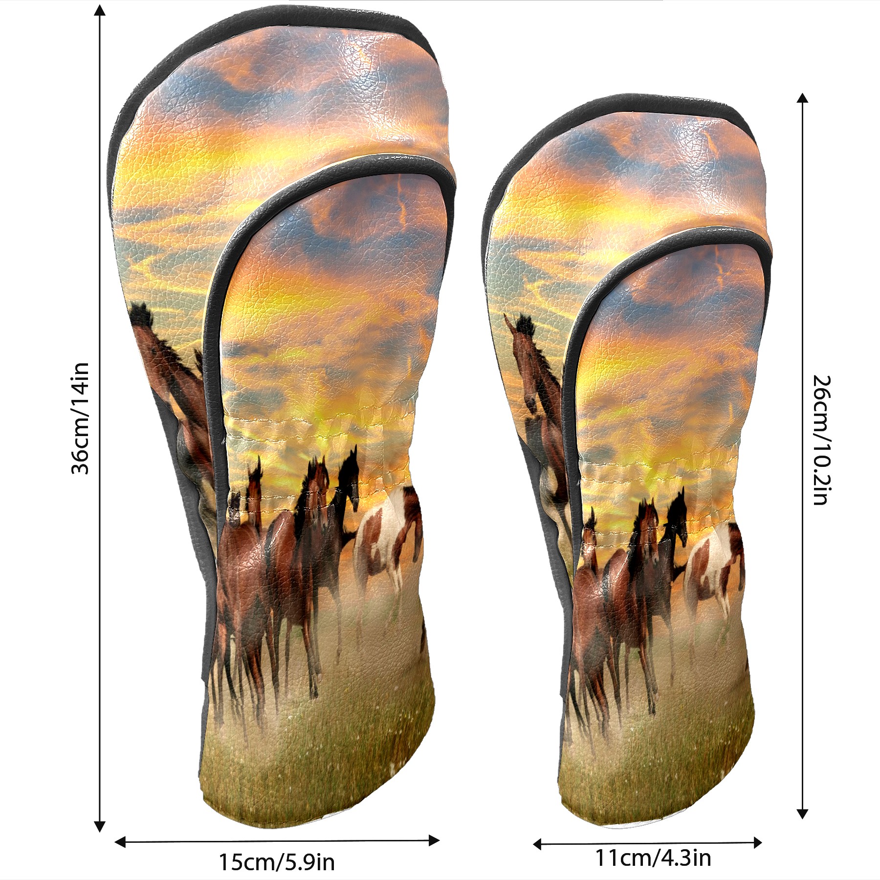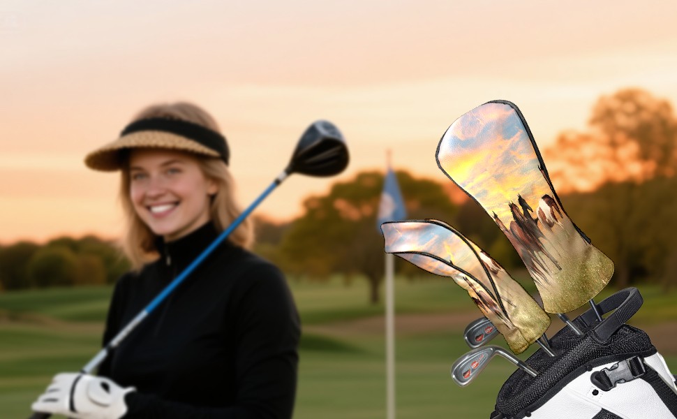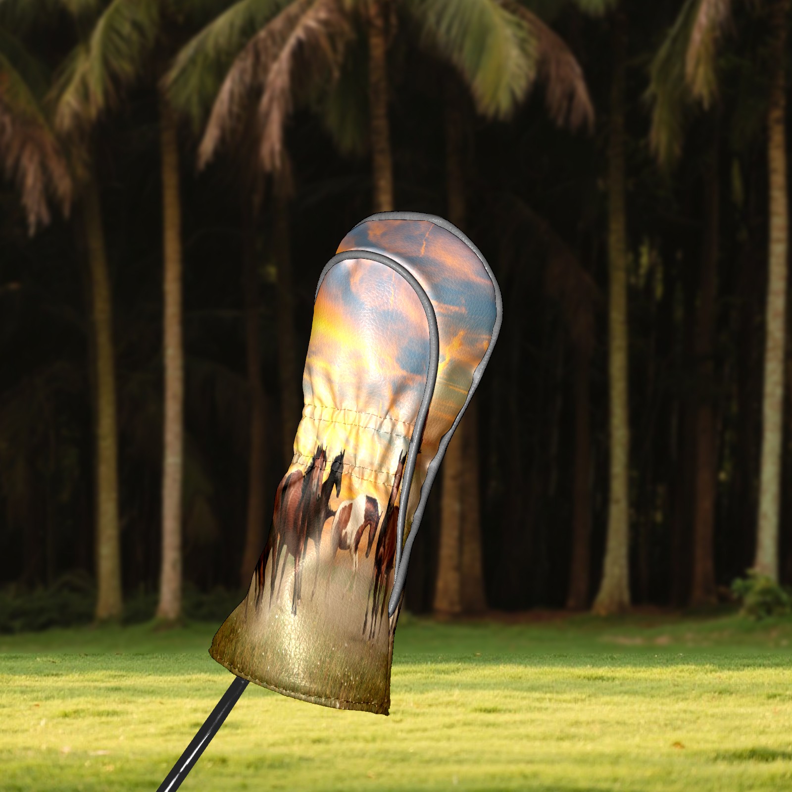 Водонепроницаемый кожаный чехол для головки драйвера удара, чехлы для драйверов Landscape Horses Running In Sunset