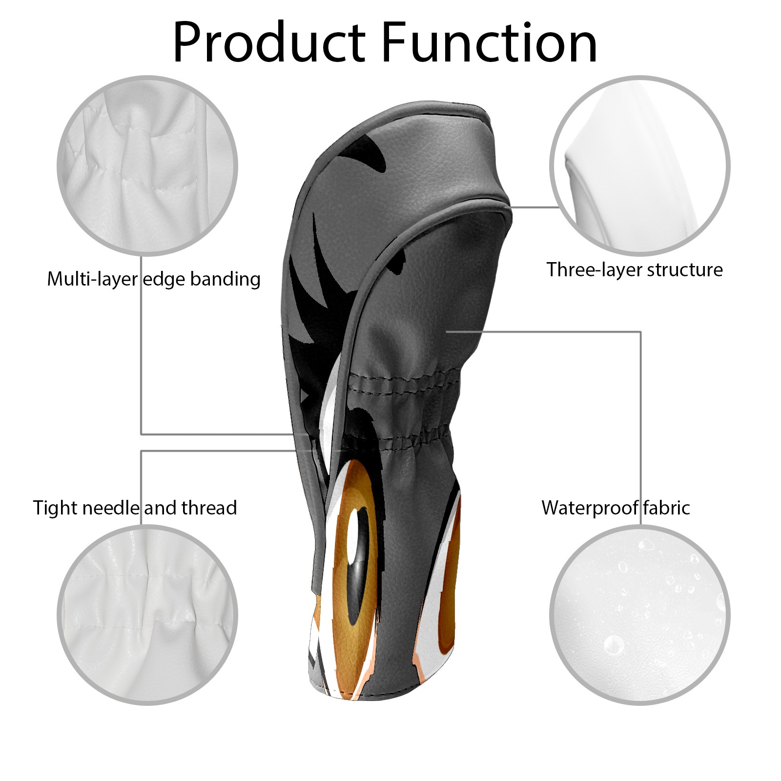 Водонепроницаемый кожаный чехол для головки драйвера удара, чехлы для драйверов Cartoon Eyes