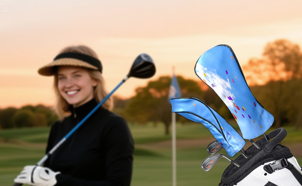 Водонепроницаемый кожаный чехол для головки драйвера удара, чехлы для драйверов Flying Balloons Blue Sky White Clouds