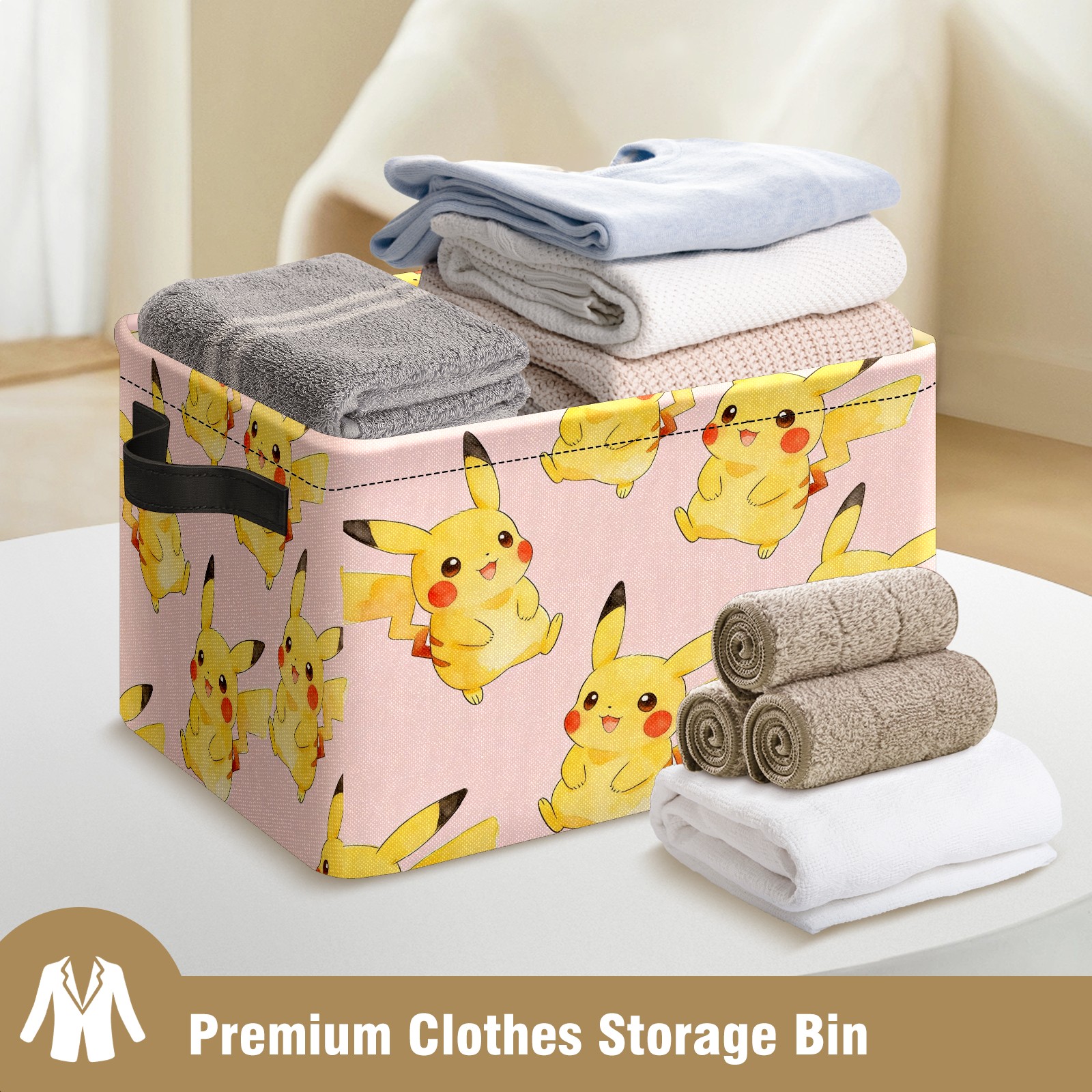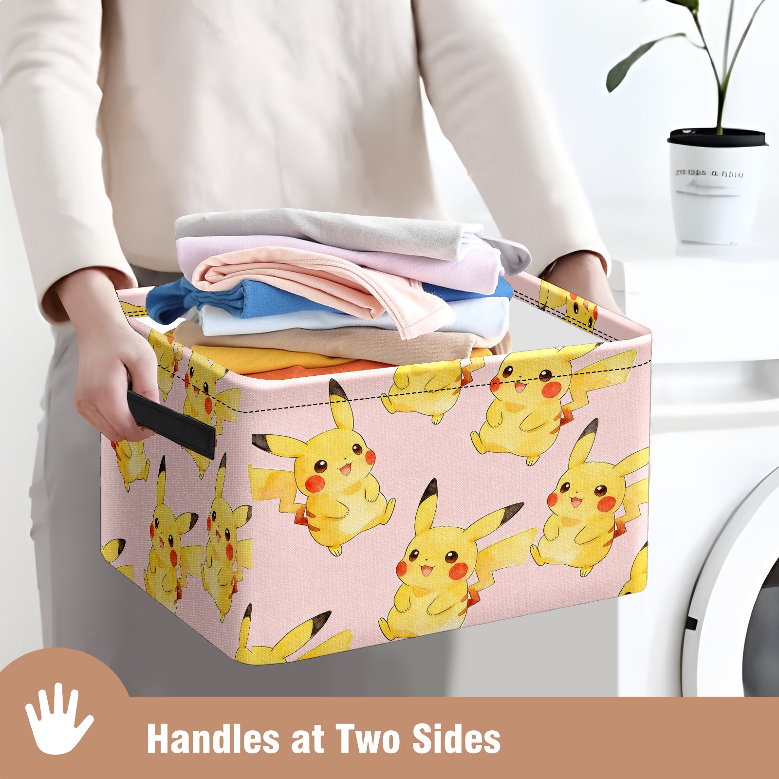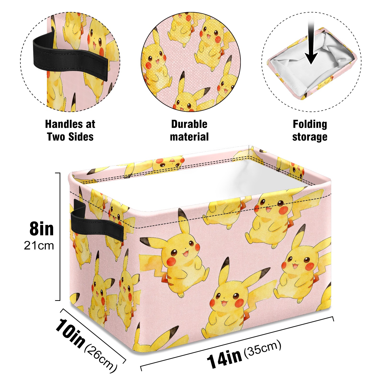Foldable and Stackable Fabric Storage Basket for Home Organization with Handles, Decorative Closet Bins for Shelves and Laundry Storage( Pikachu Land)