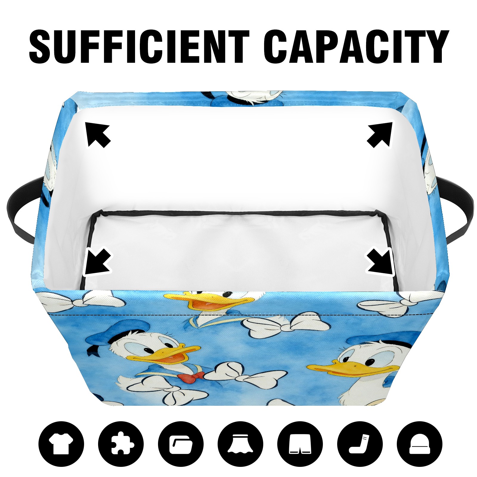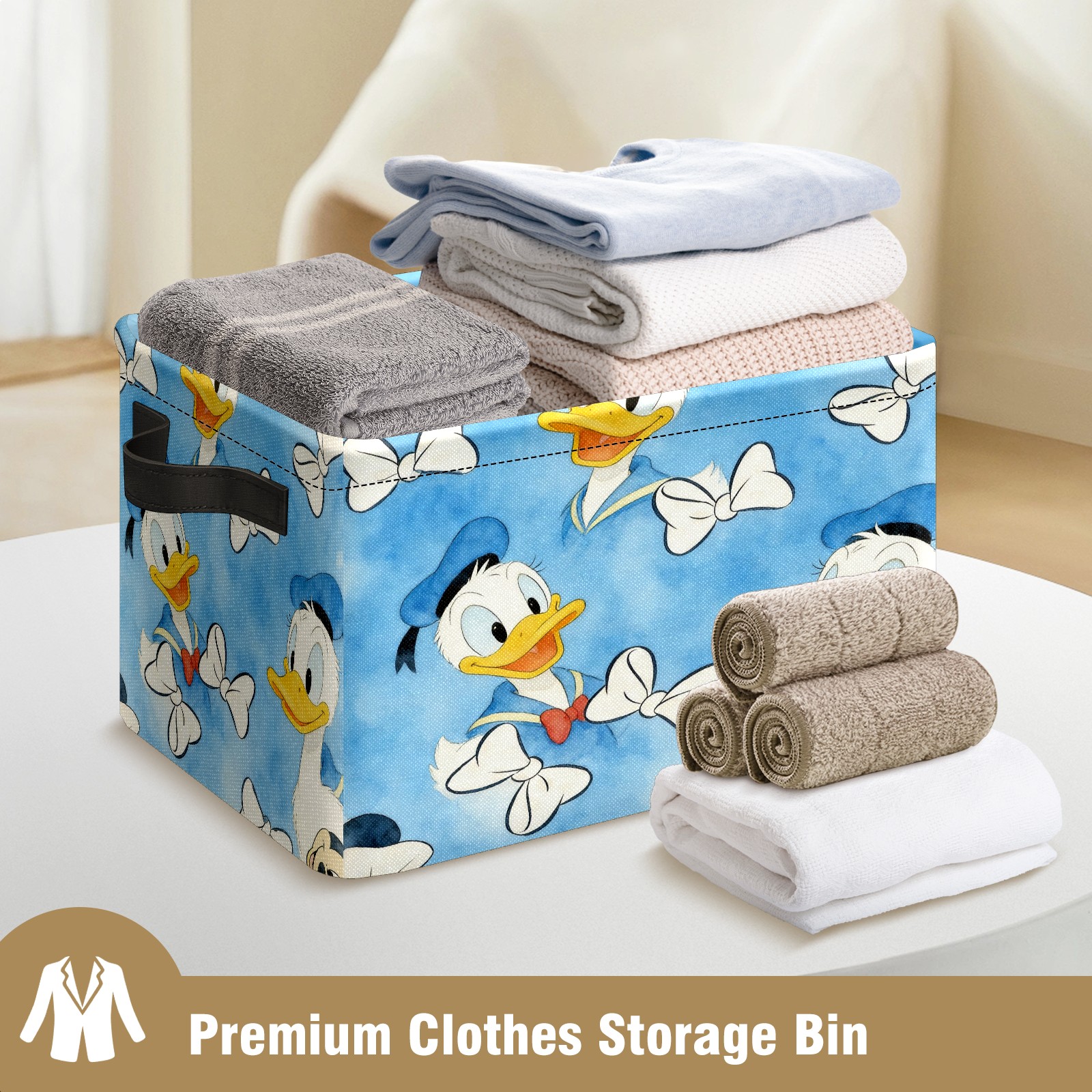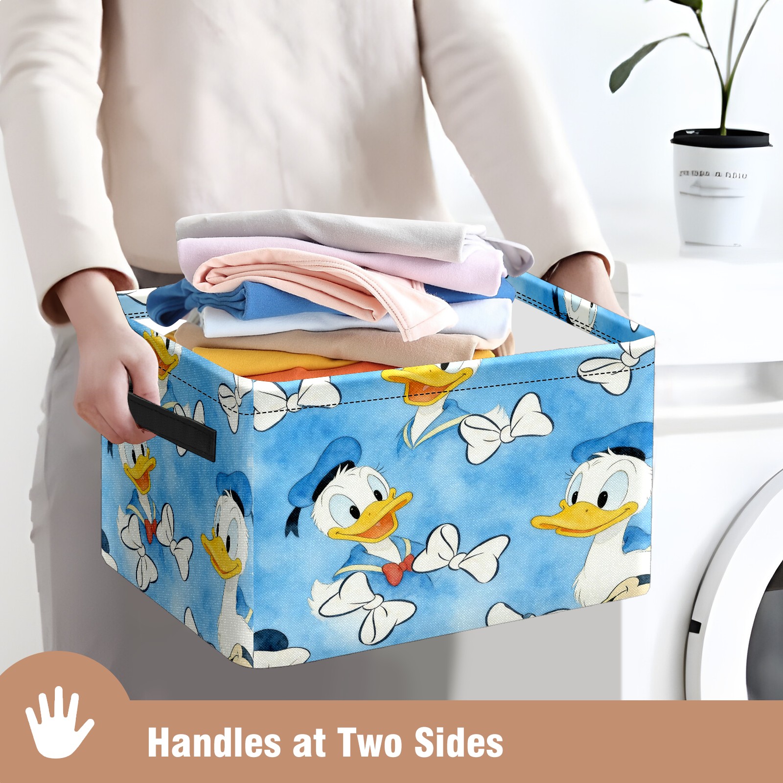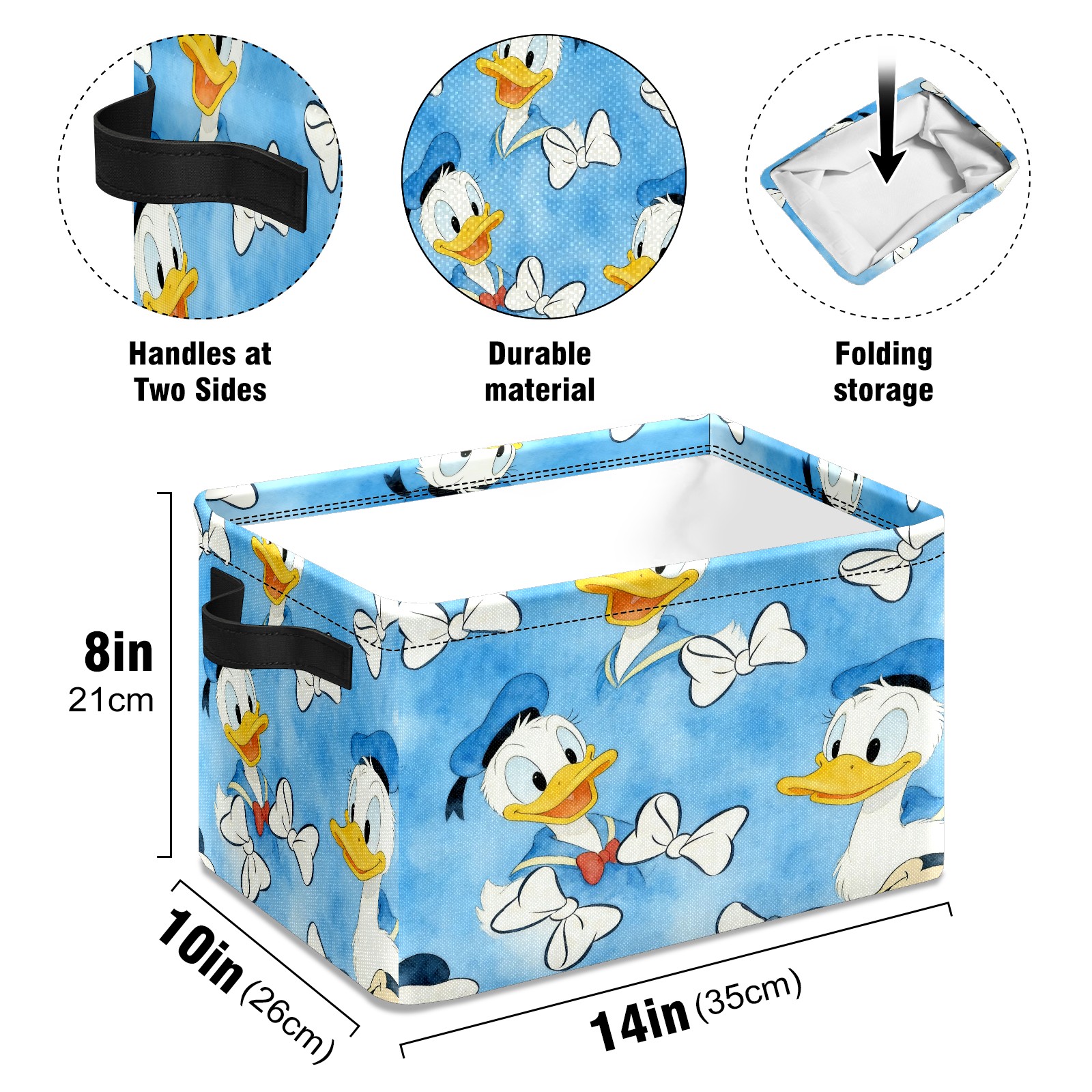 Foldable and Stackable Fabric Storage Basket for Home Organization with Handles, Decorative Closet Bins for Shelves and Laundry Storage( Donald Duck)