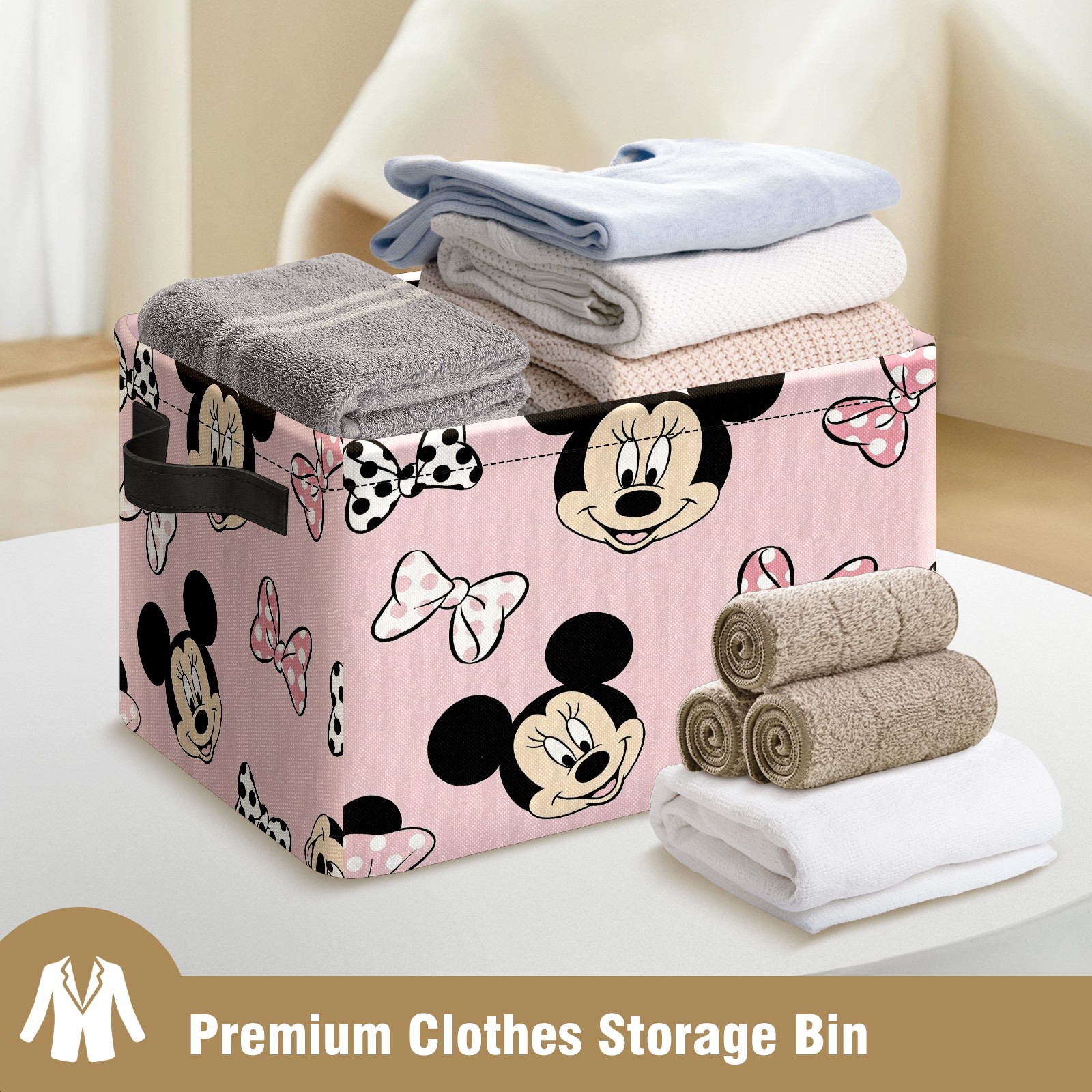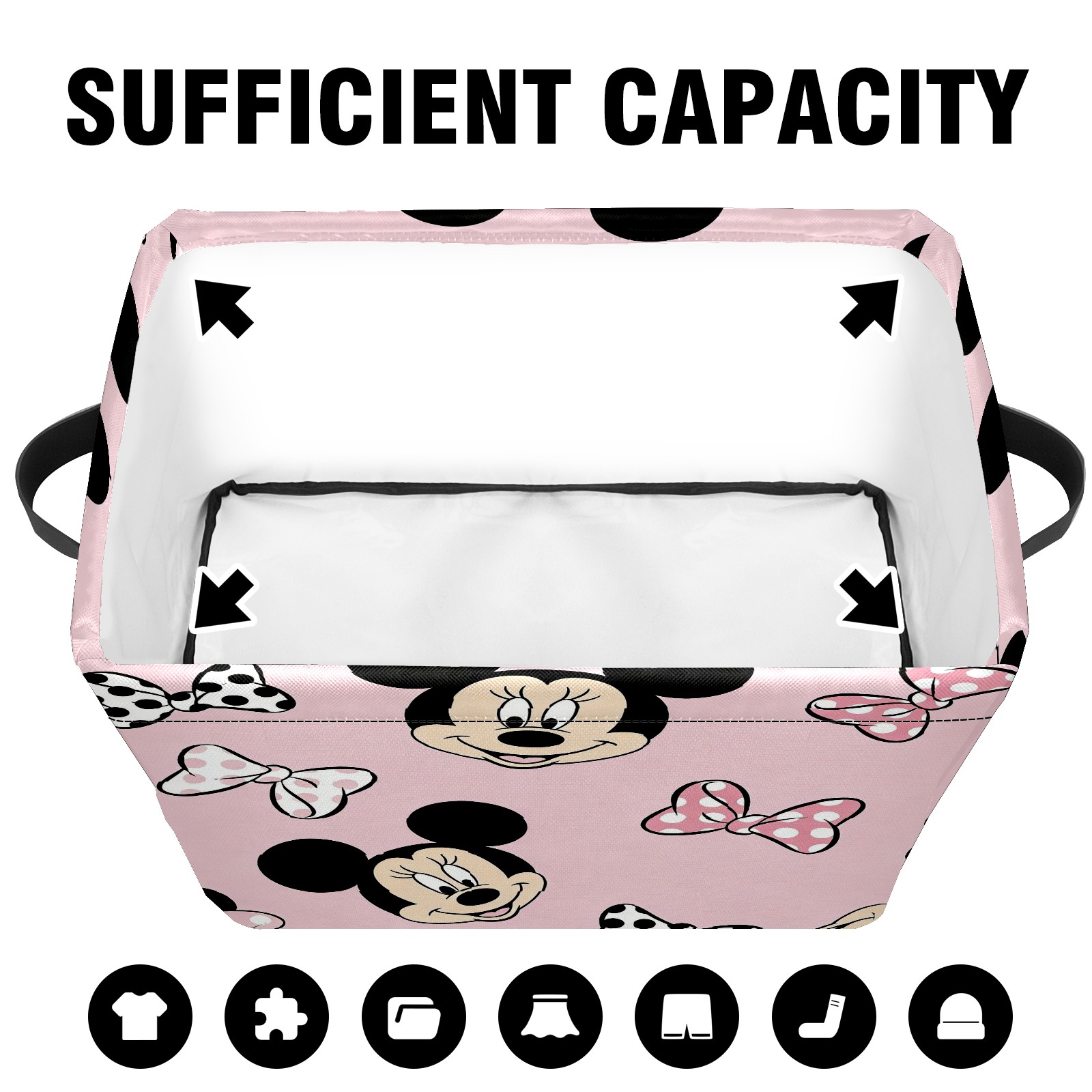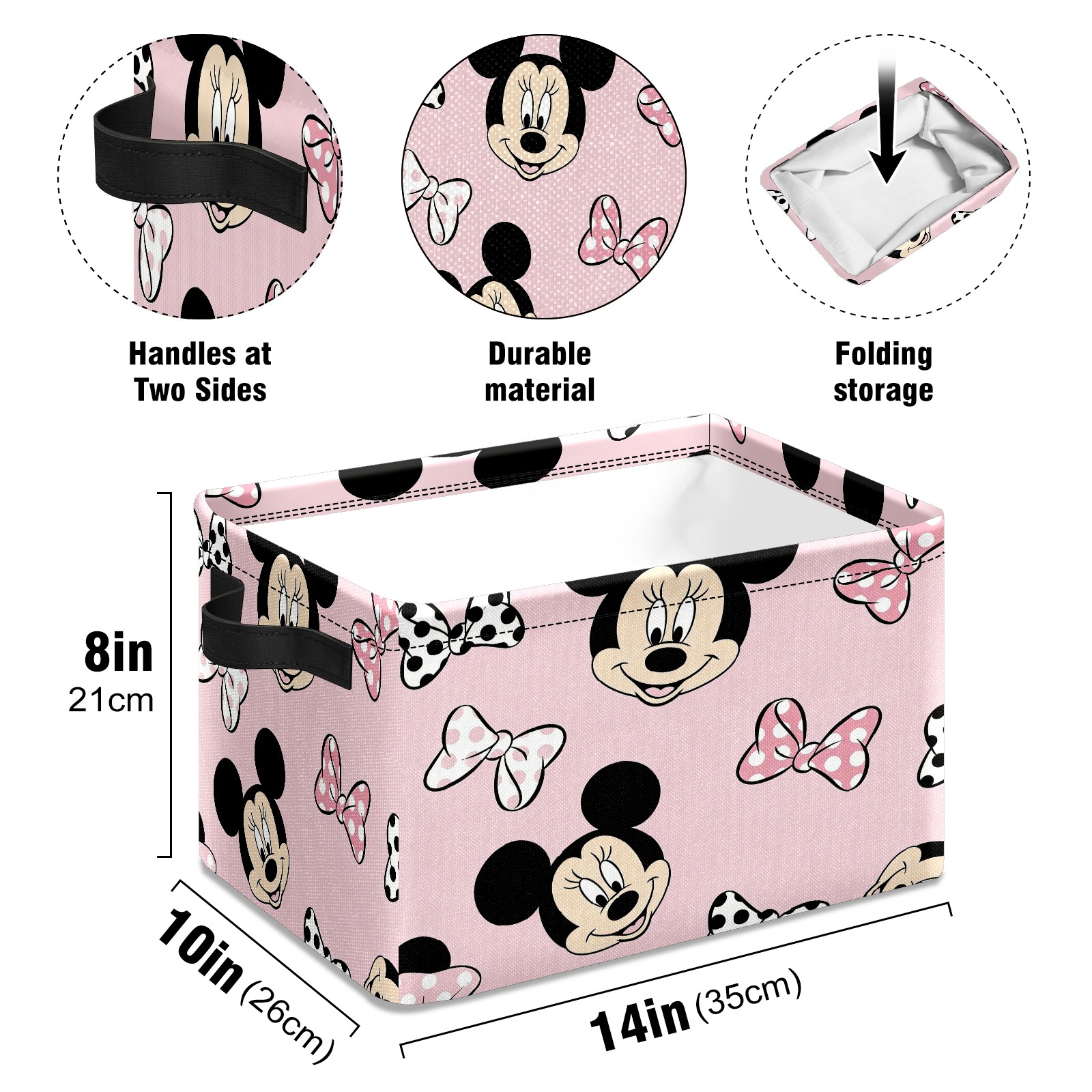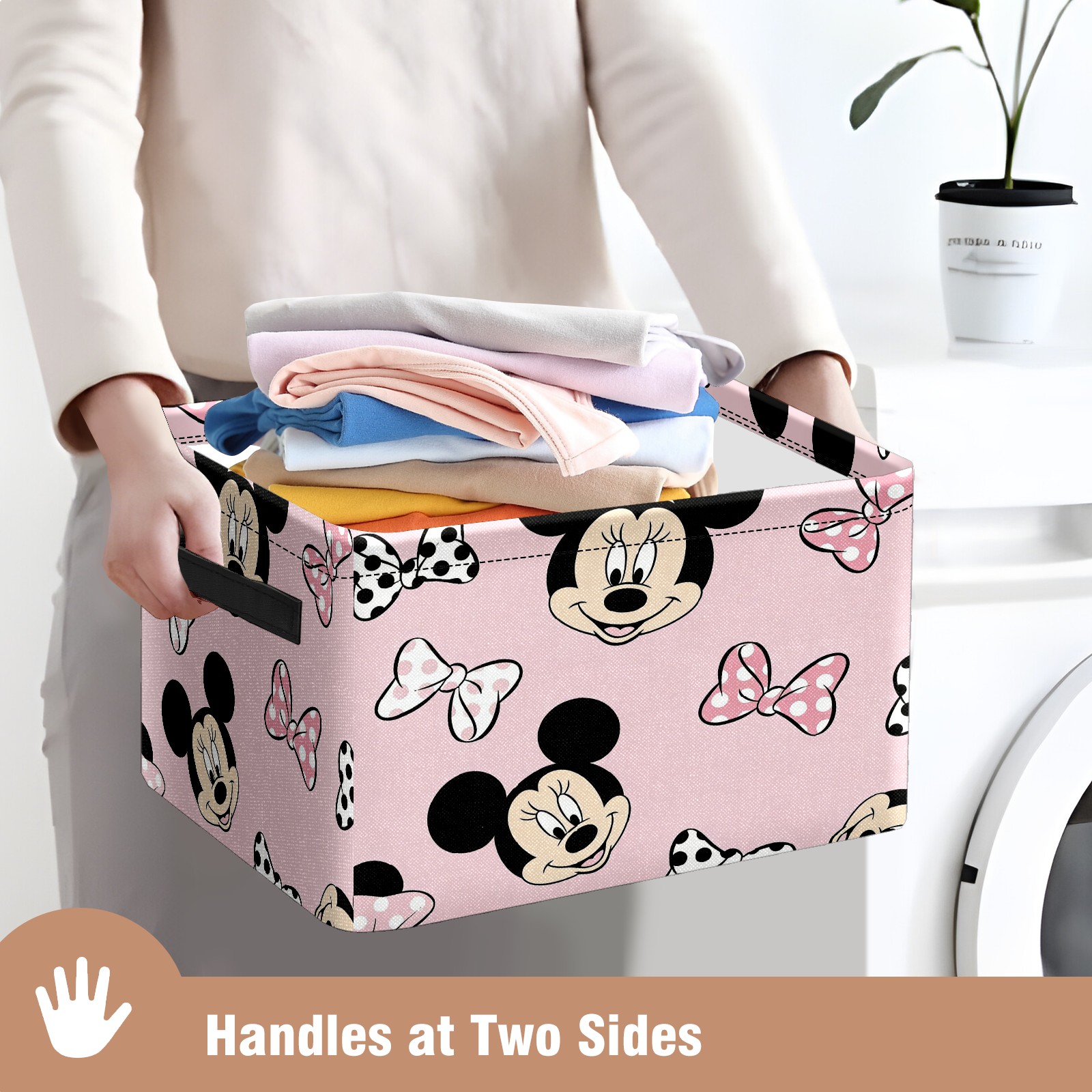 Foldable and Stackable Fabric Storage Basket for Home Organization with Handles, Decorative Closet Bins for Shelves and Laundry Storage( Minnie Cutie)