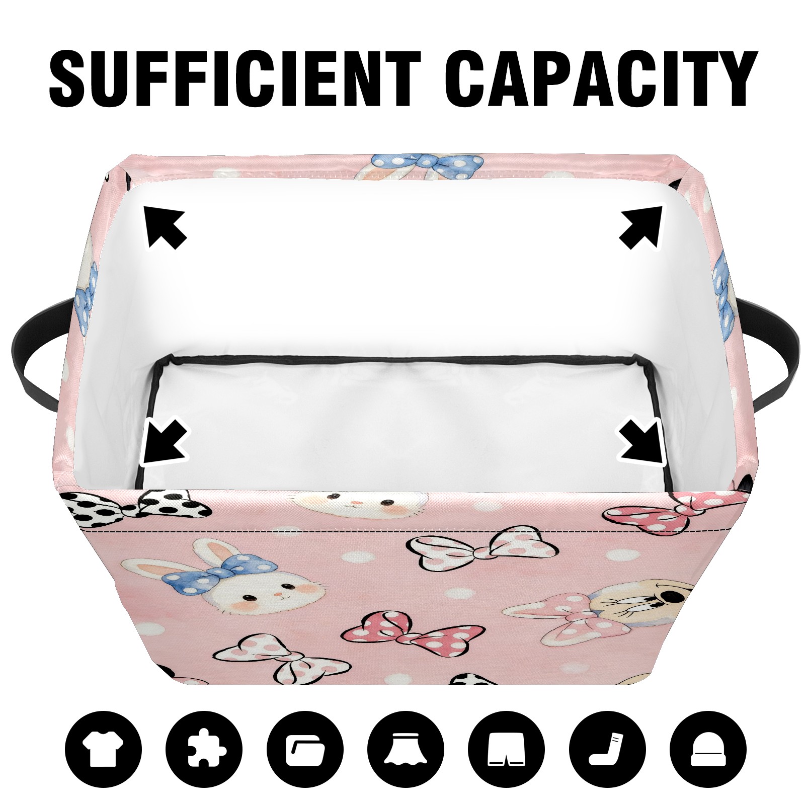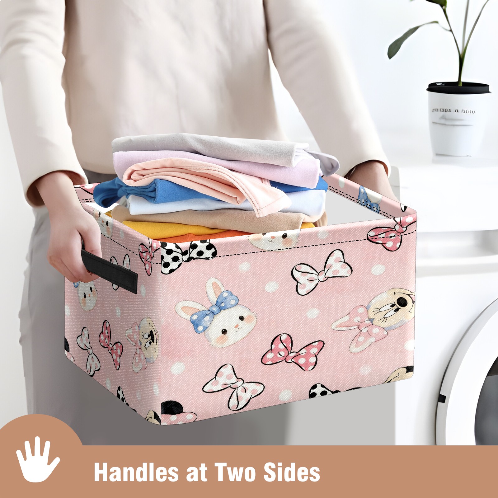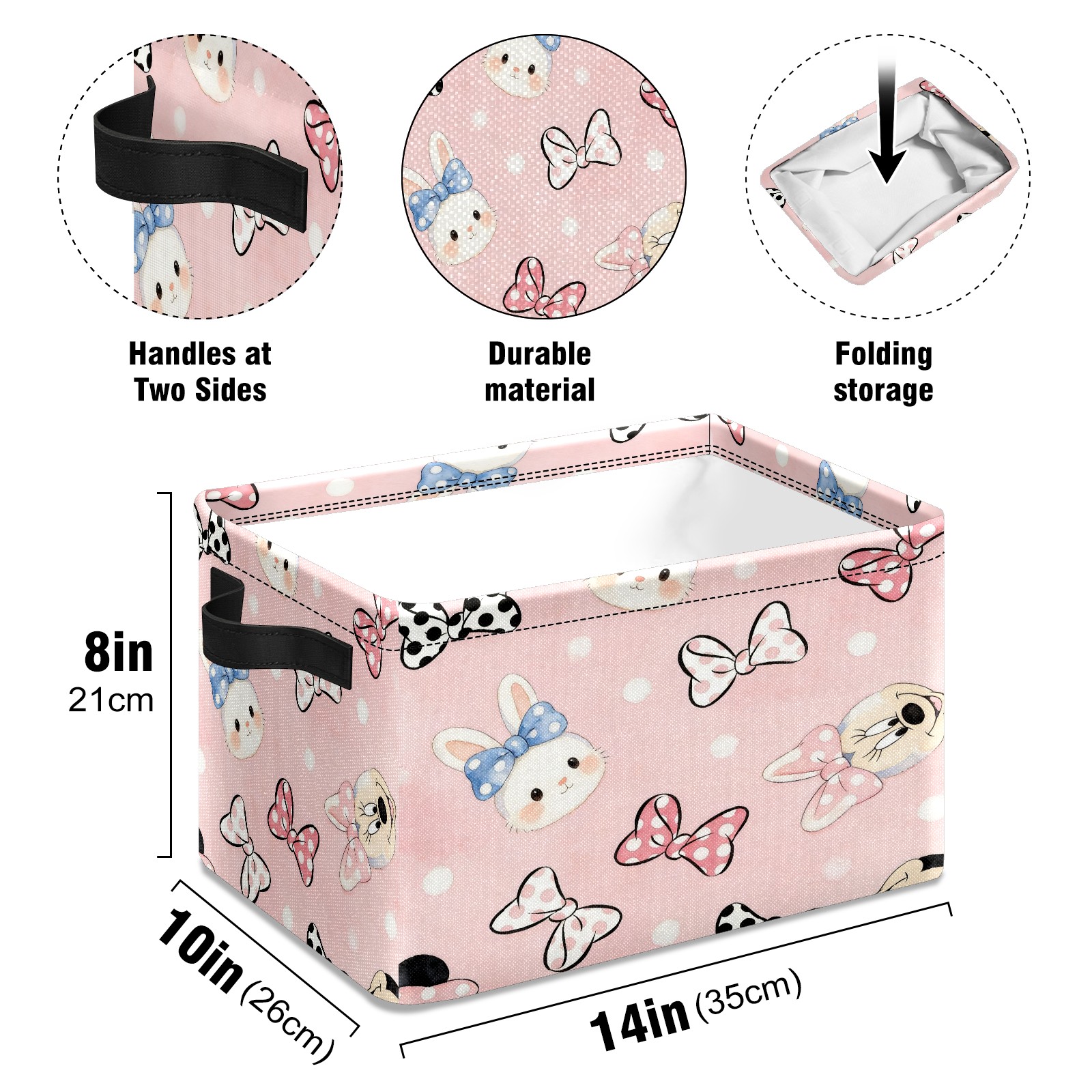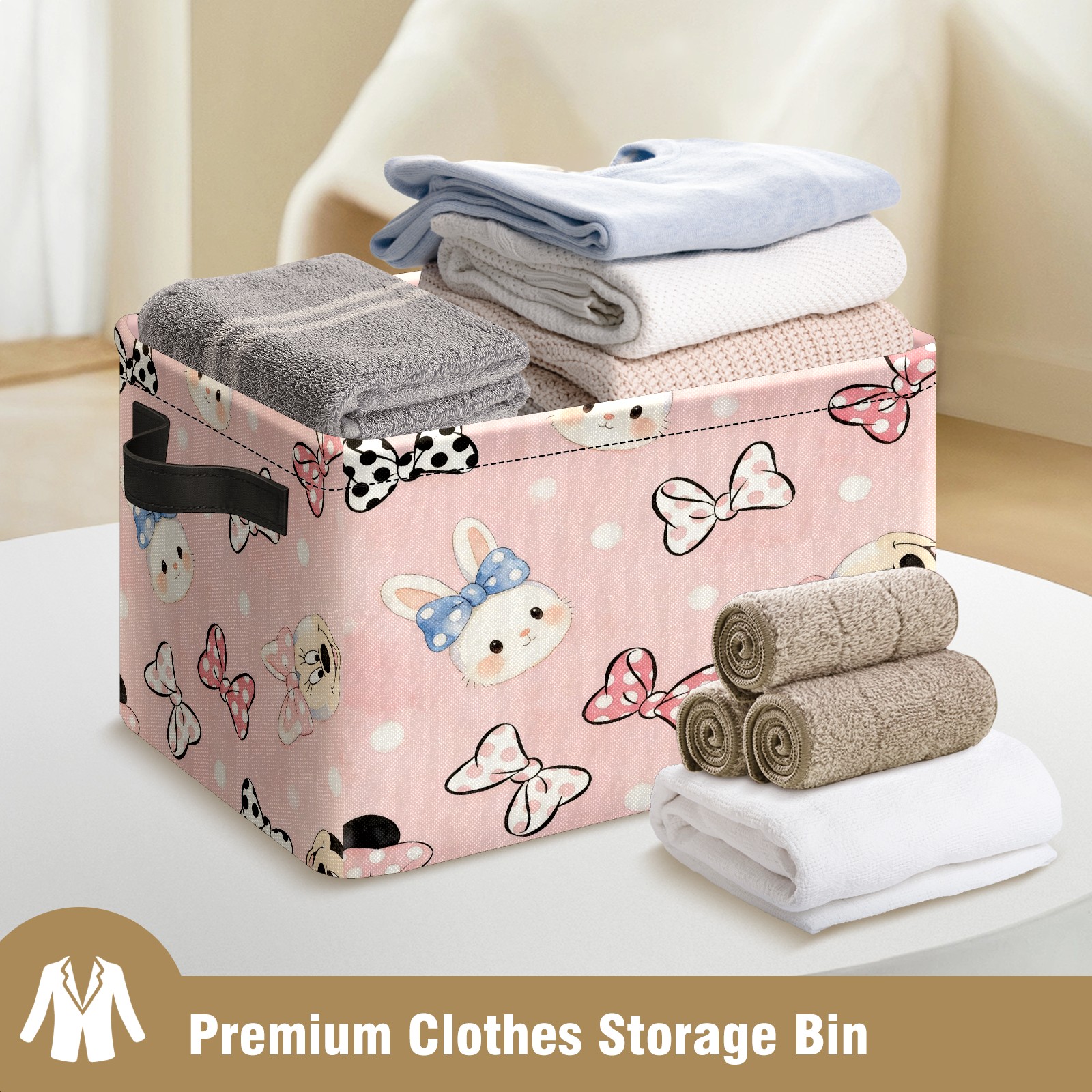 Foldable and Stackable Fabric Storage Basket for Home Organization with Handles, Decorative Closet Bins for Shelves and Laundry Storage( Bunny)