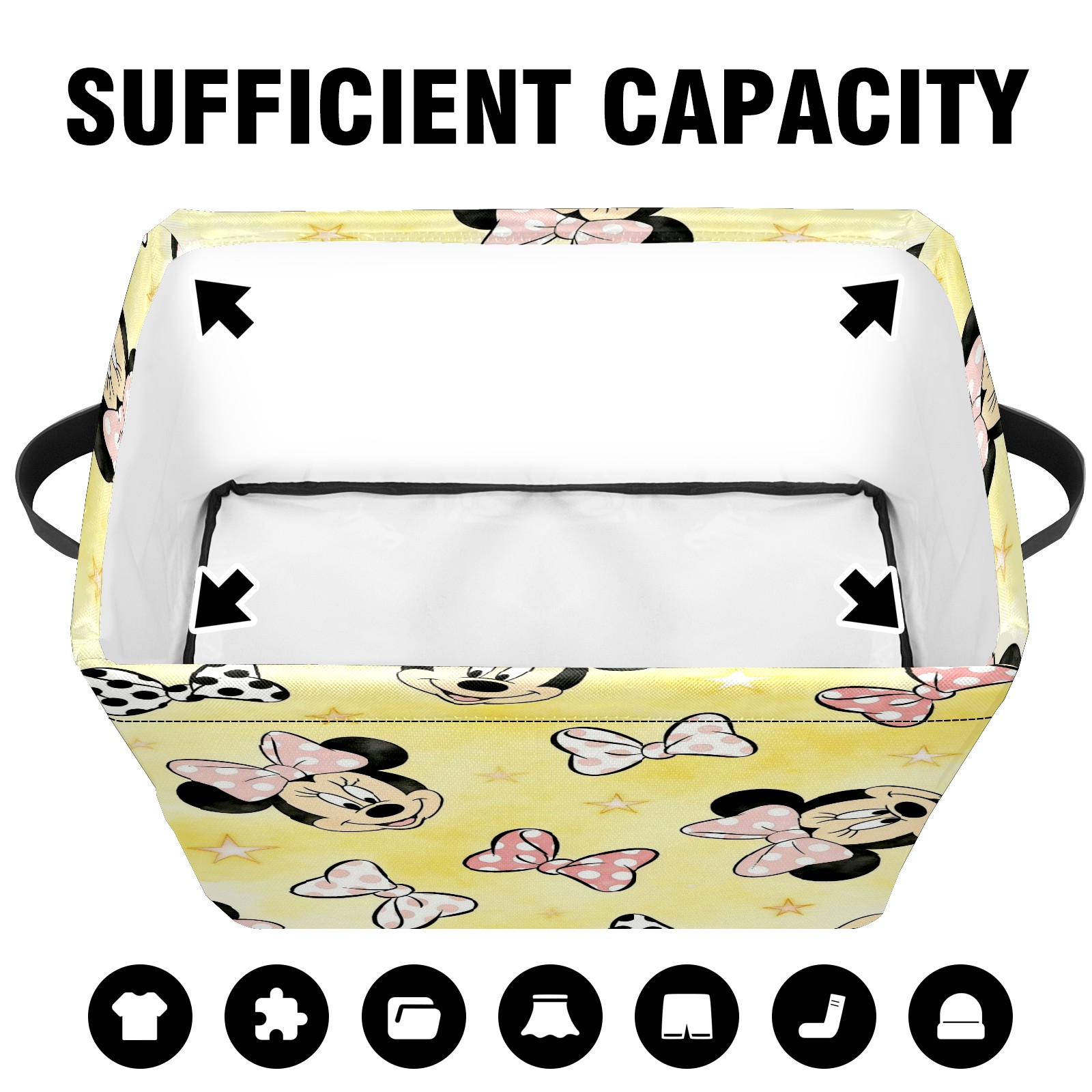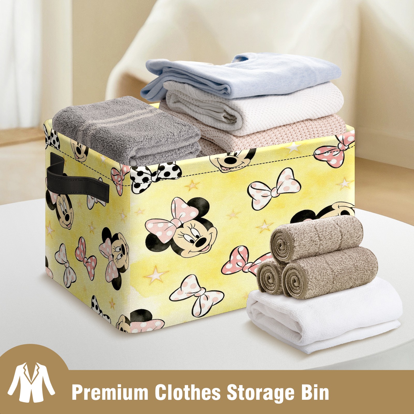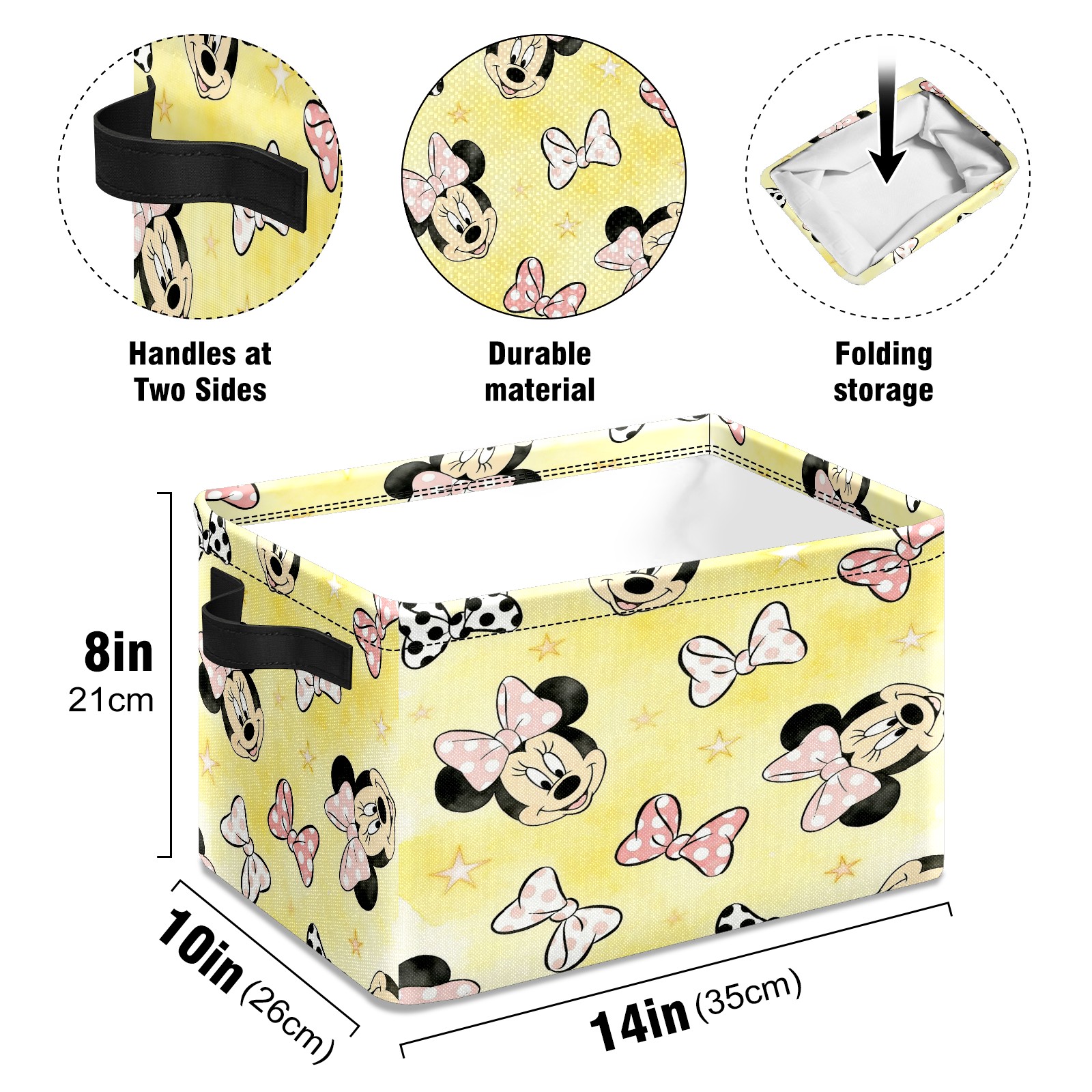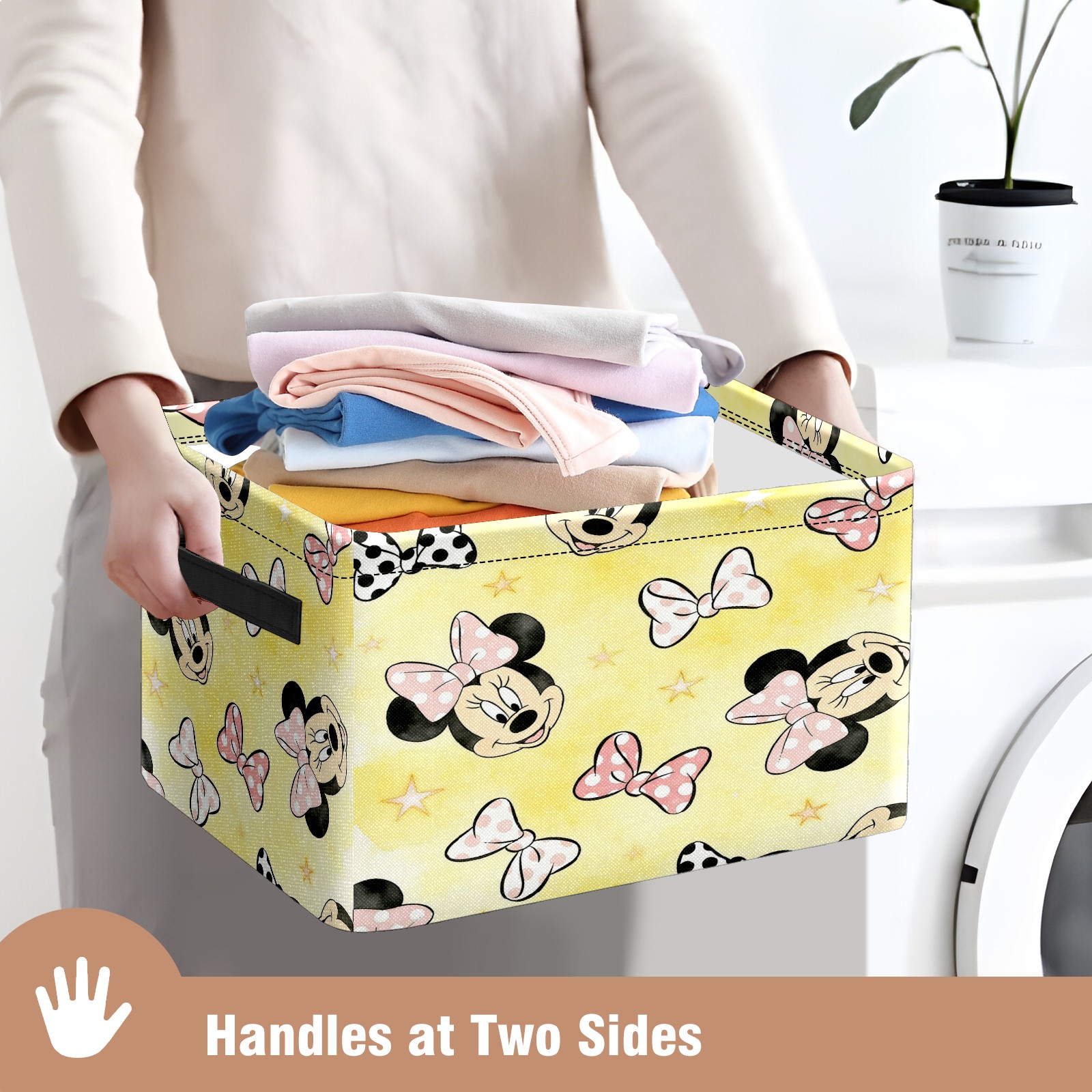 Foldable and Stackable Fabric Storage Basket for Home Organization with Handles, Decorative Closet Bins for Shelves and Laundry Storage( Mickey Land)