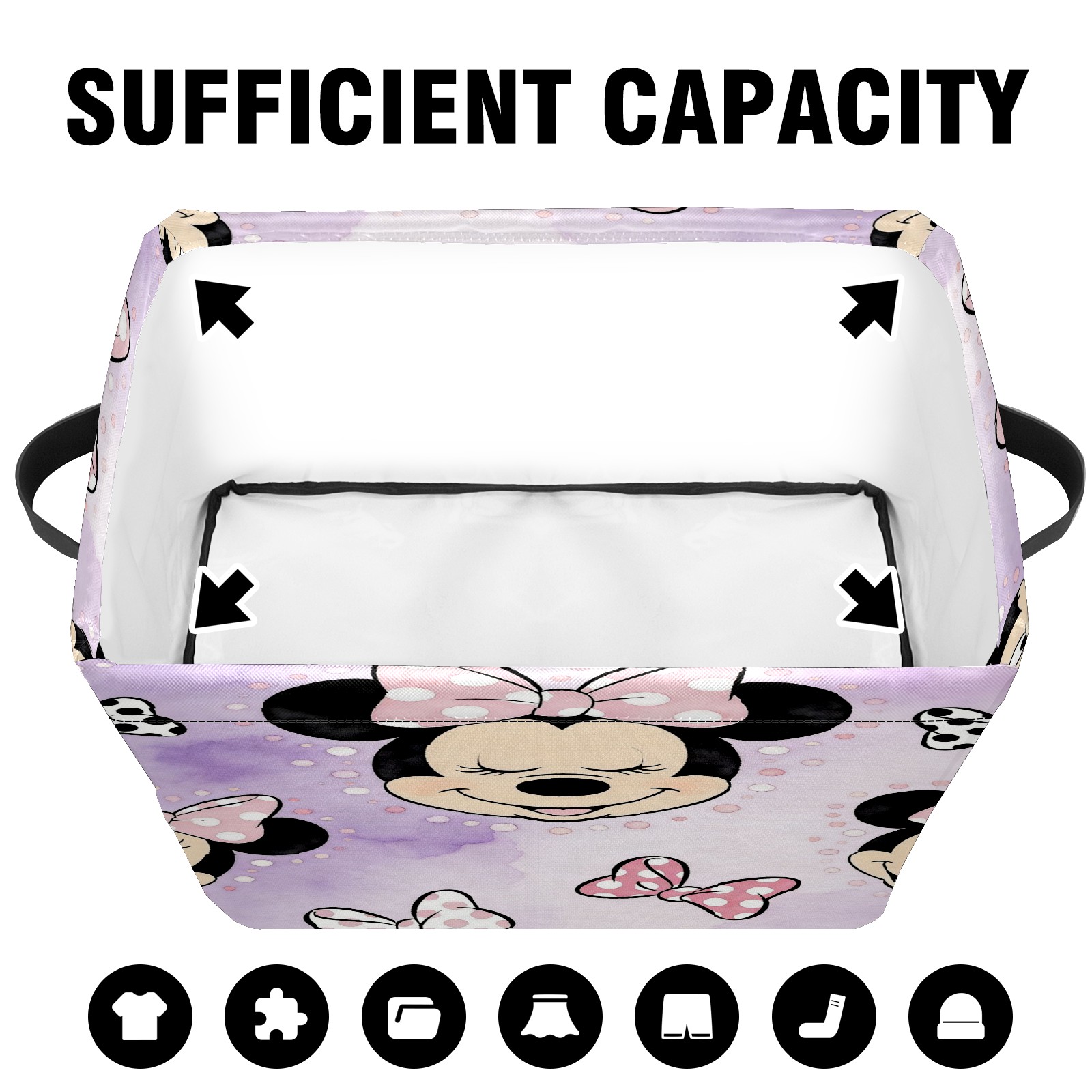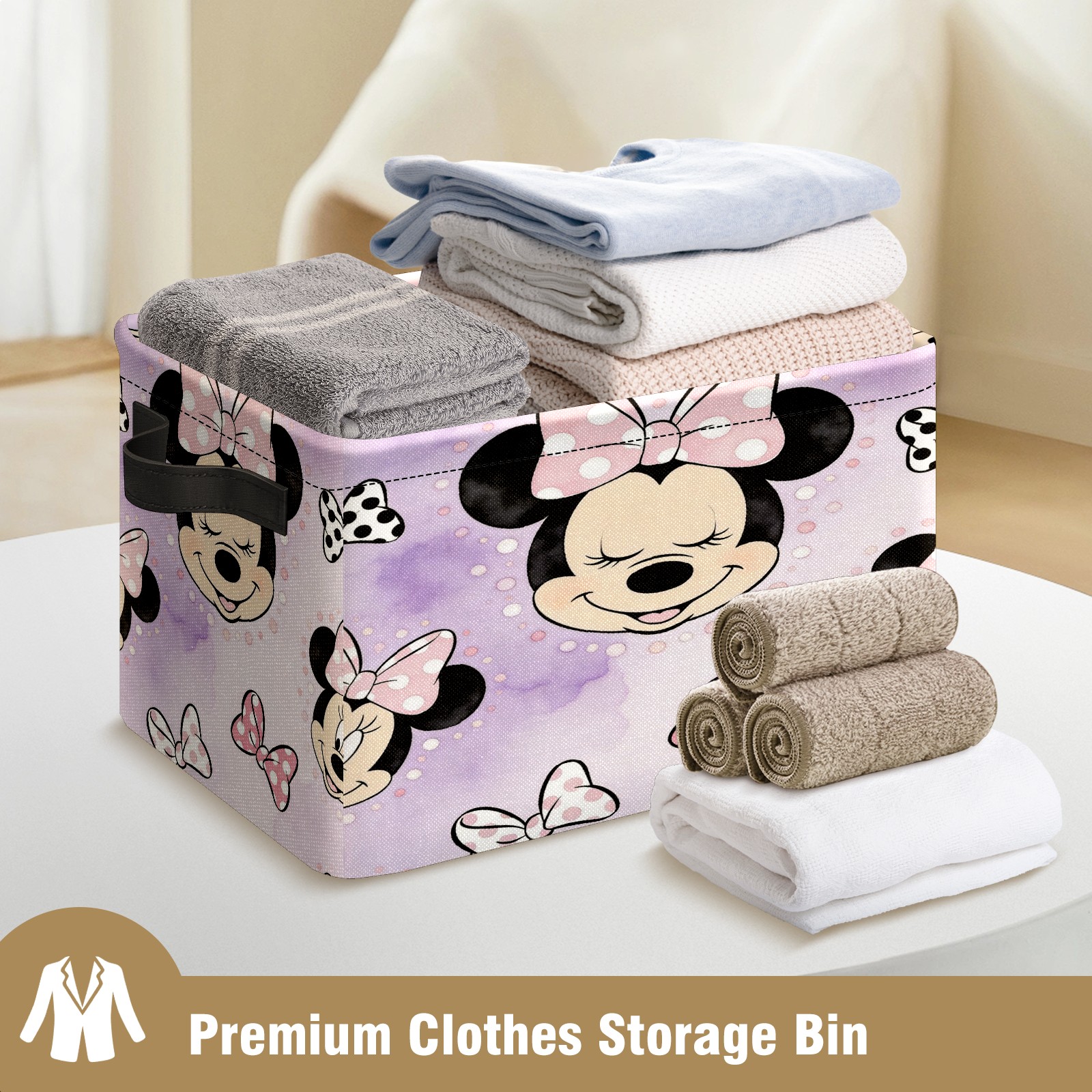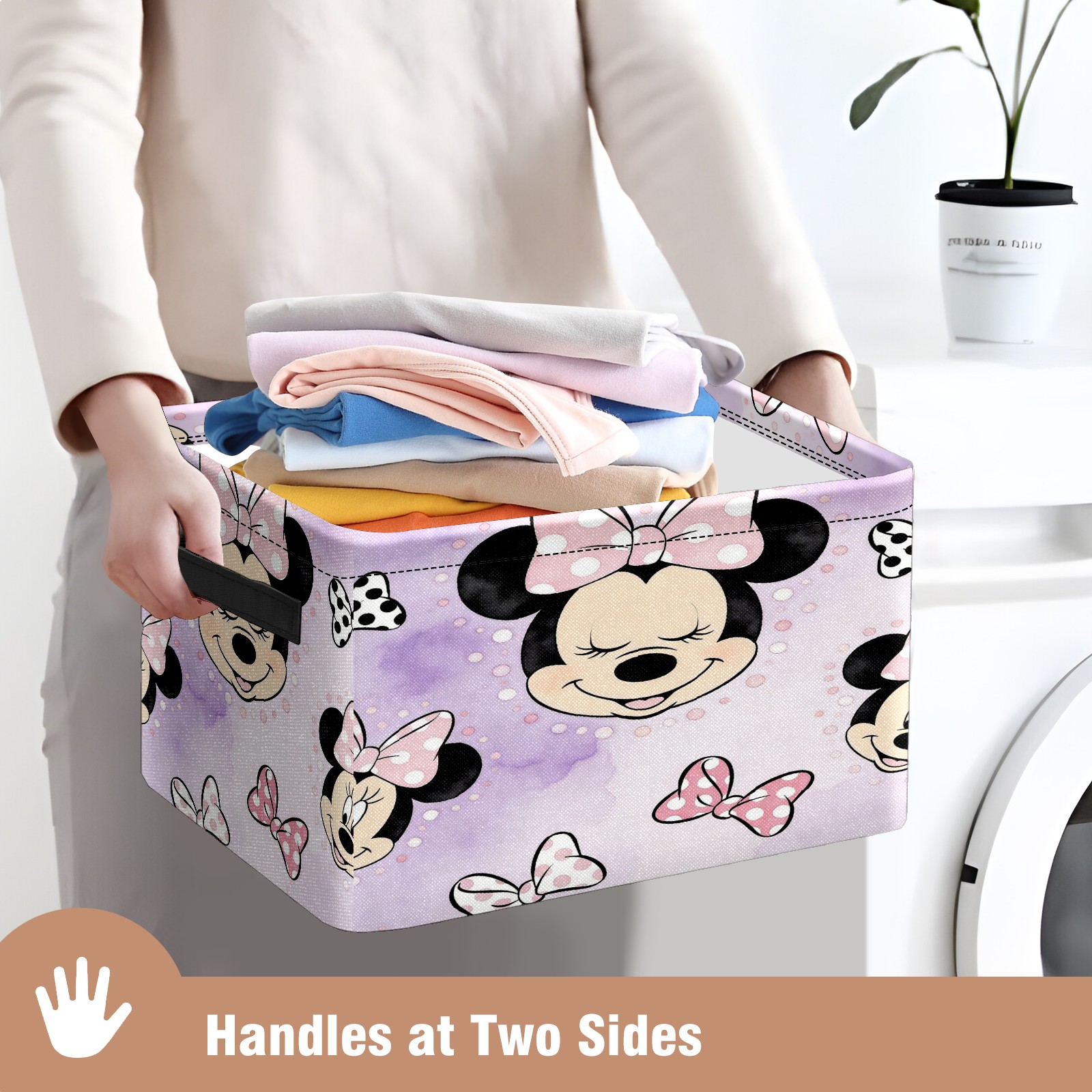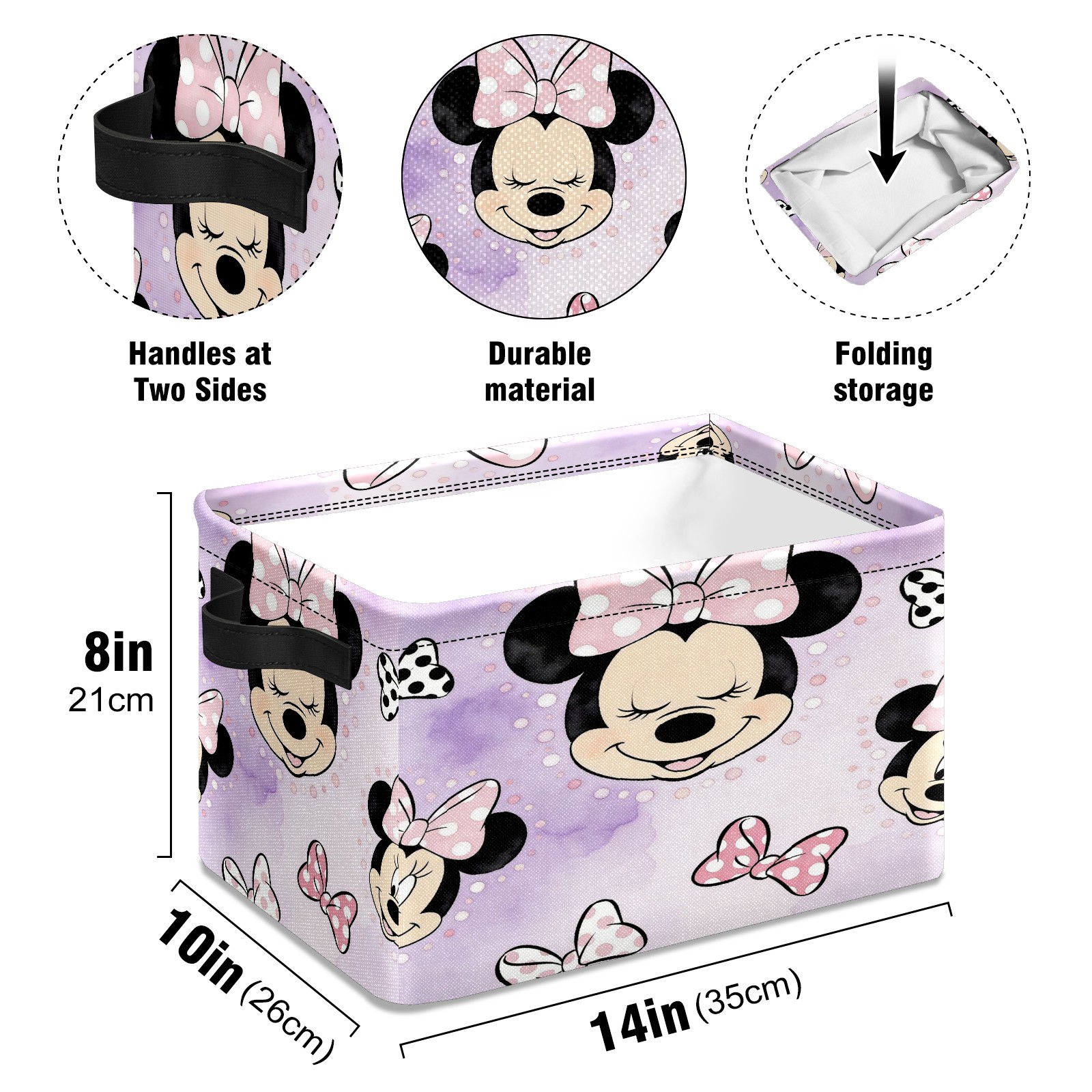 Foldable and Stackable Fabric Storage Basket for Home Organization with Handles, Decorative Closet Bins for Shelves and Laundry Storage( Mickey Purple)