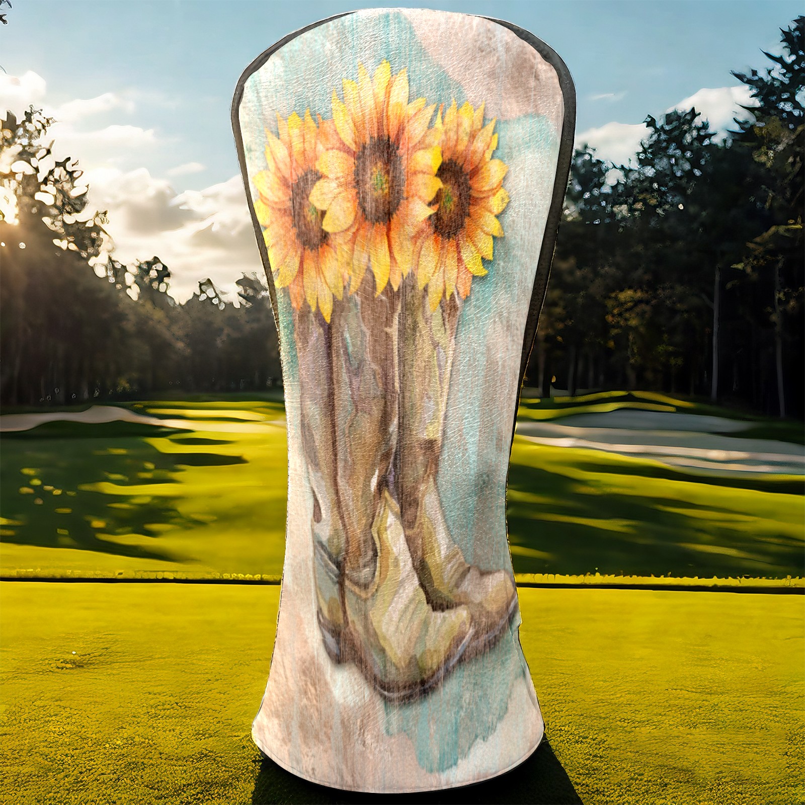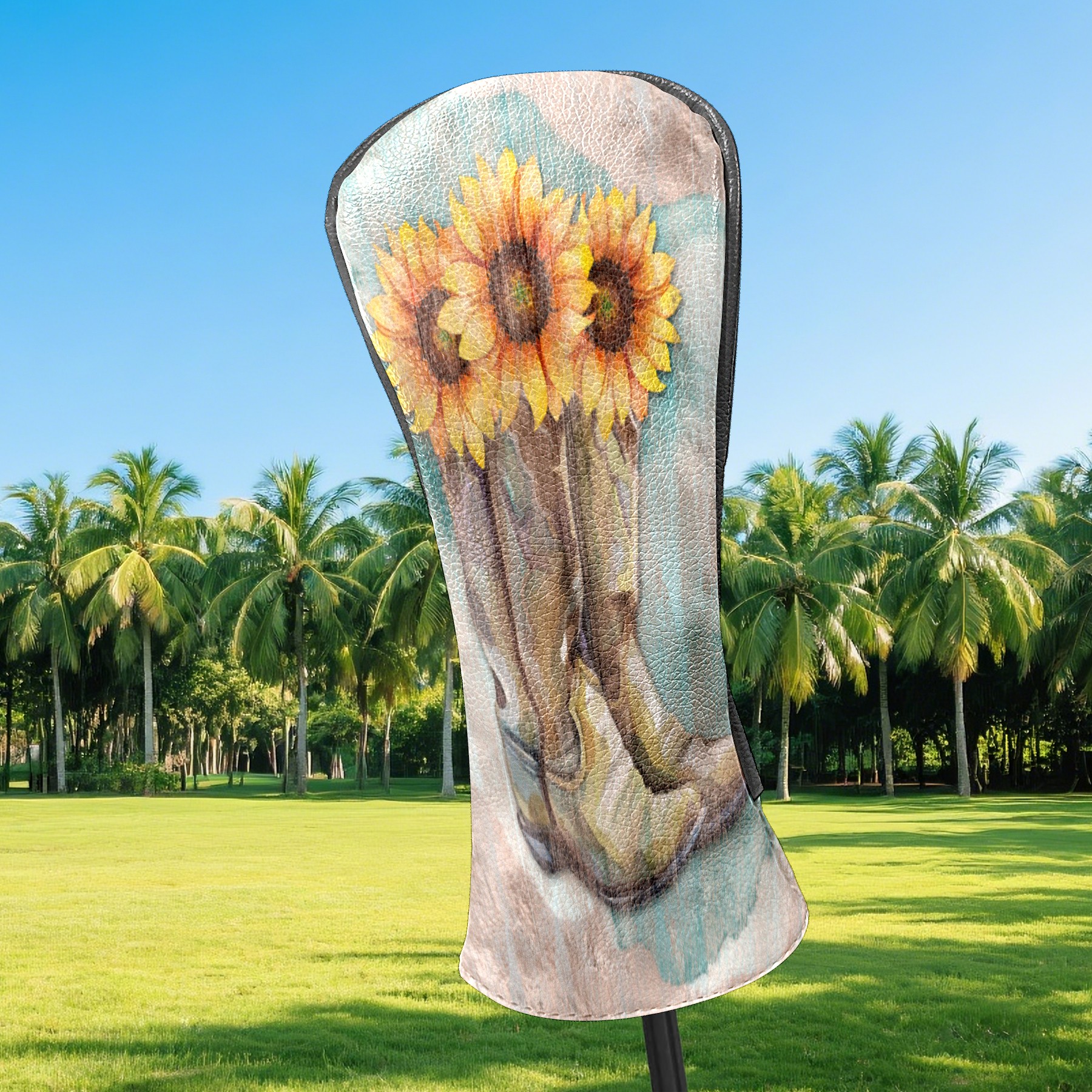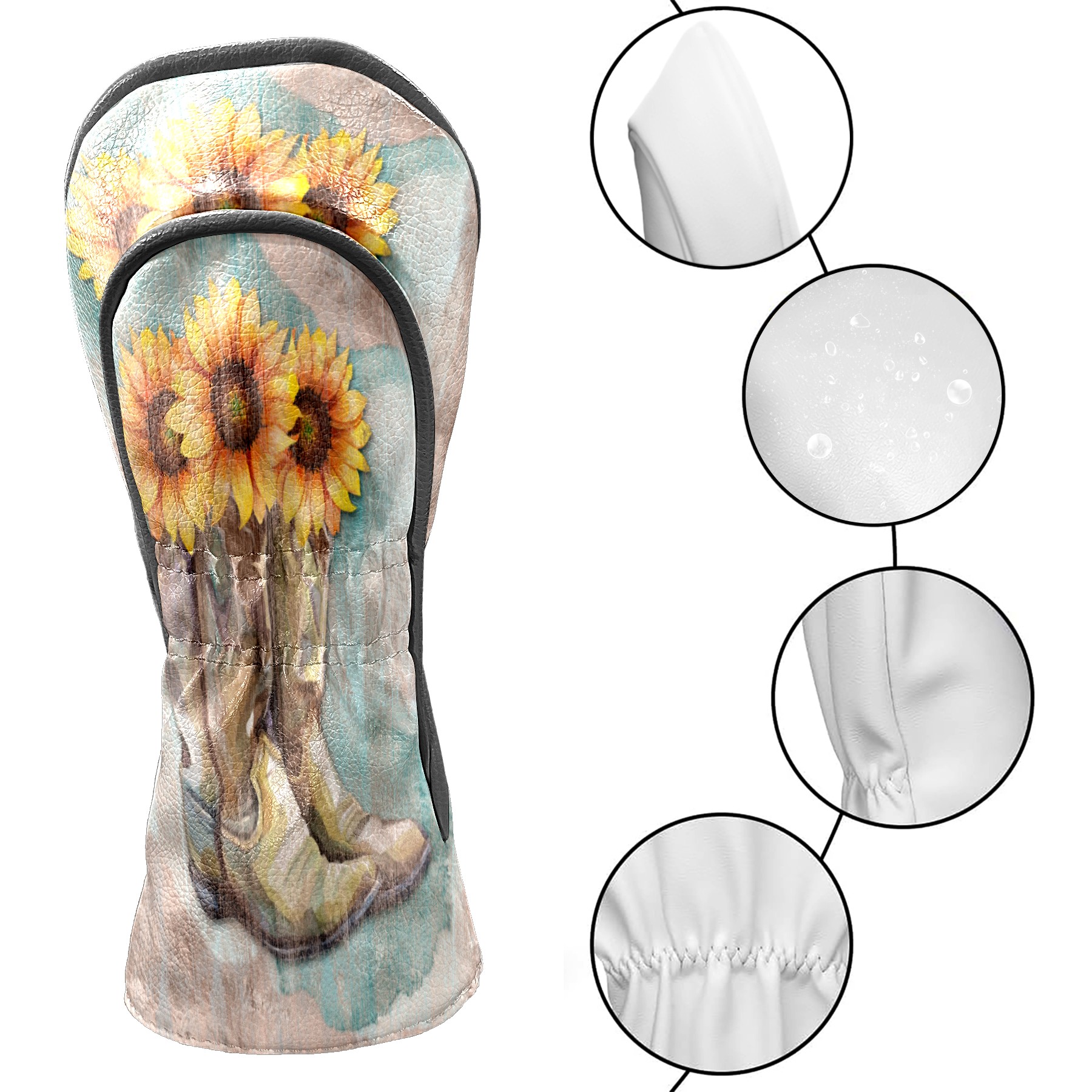 Водонепроницаемый кожаный чехол для головки драйвера удара, чехлы для драйверов Retro Sunflower Cowboy Boots