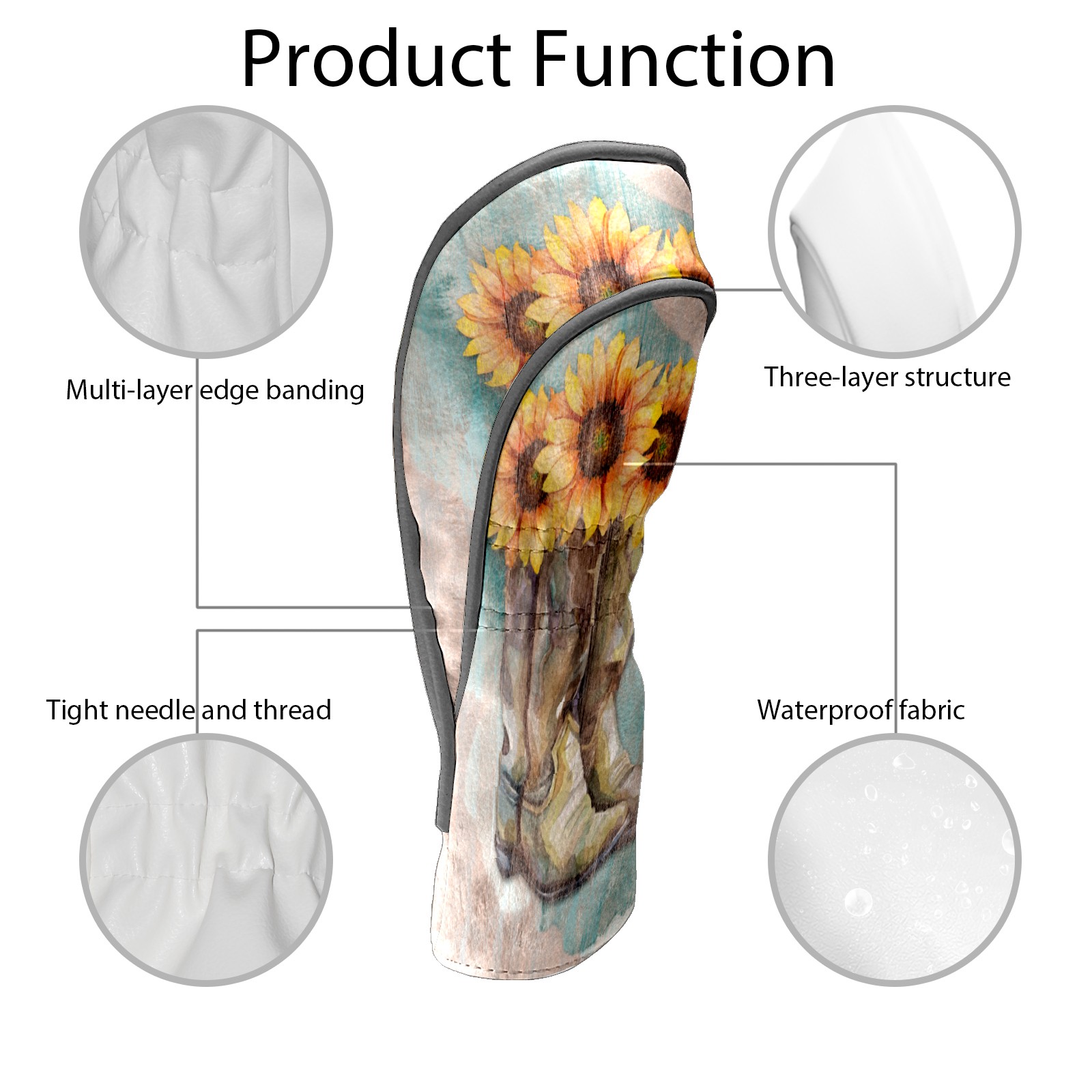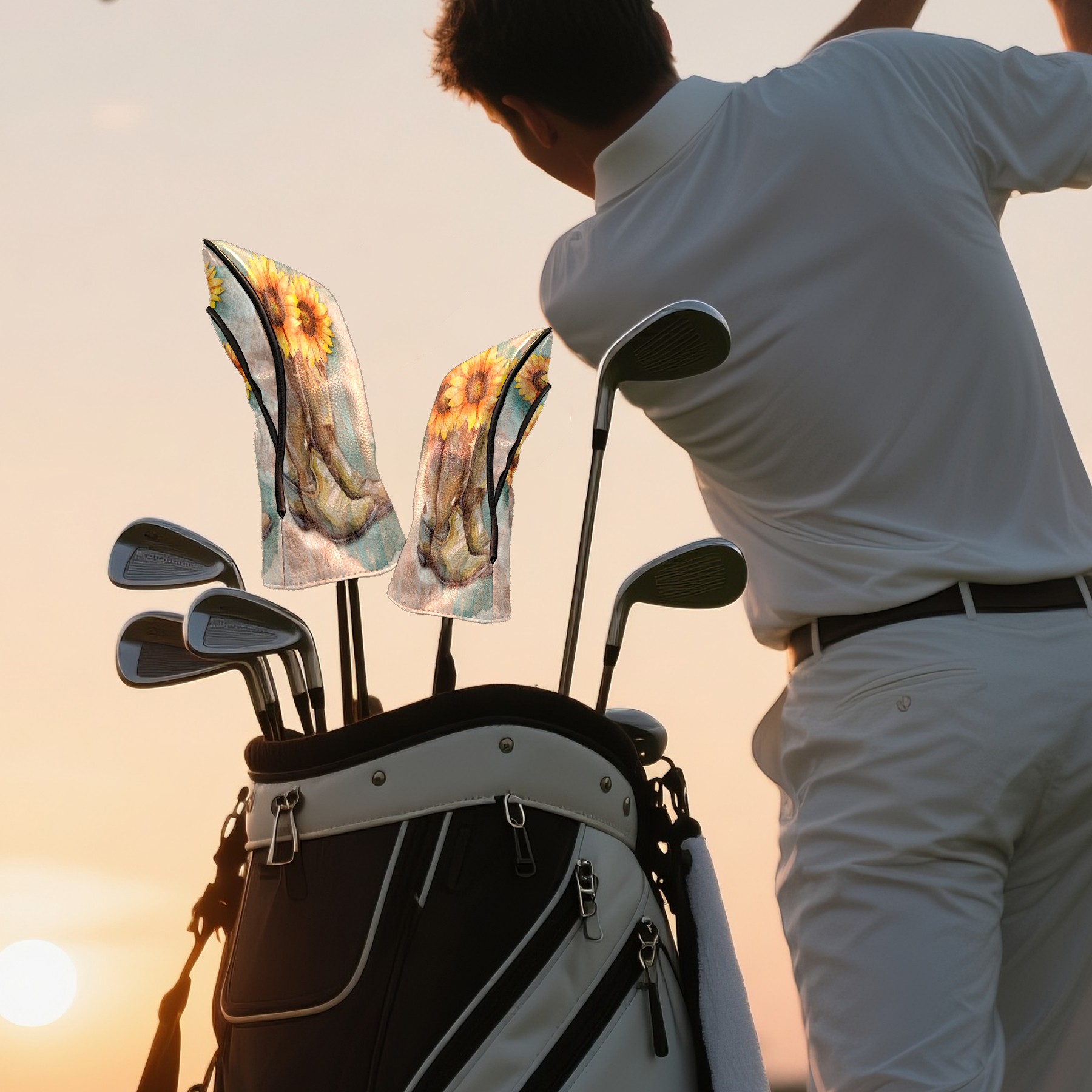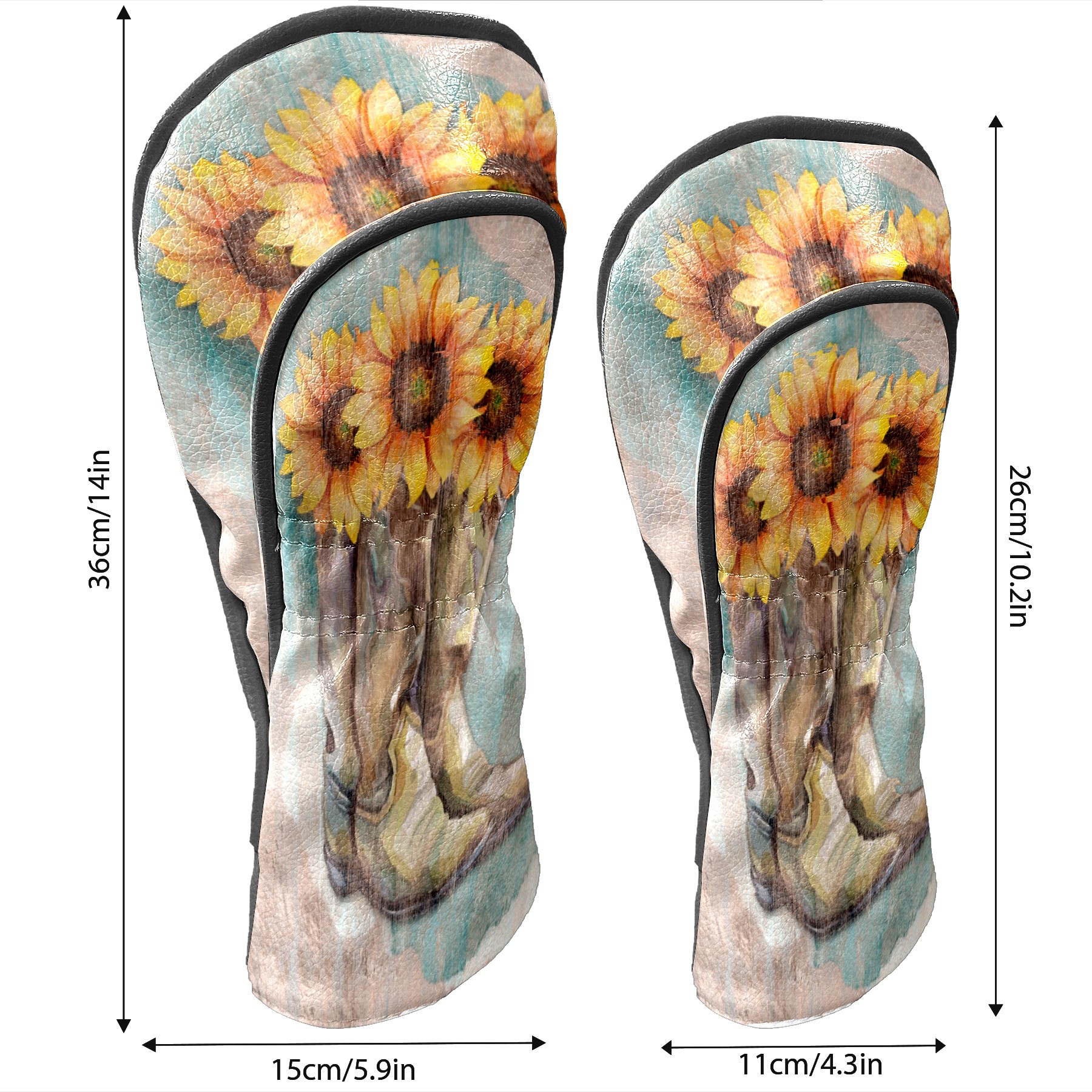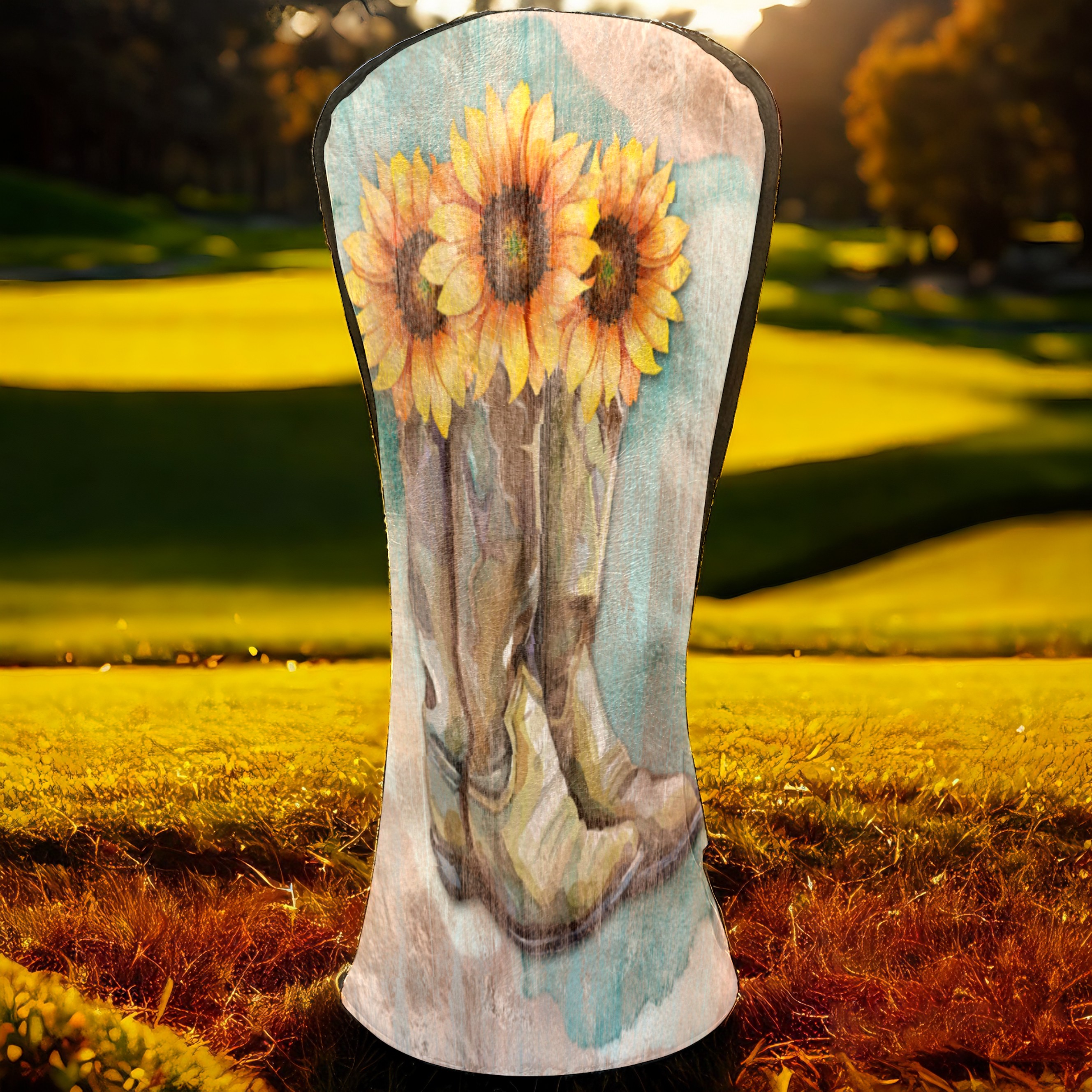 Водонепроницаемый кожаный чехол для головки драйвера удара, чехлы для драйверов Retro Sunflower Cowboy Boots