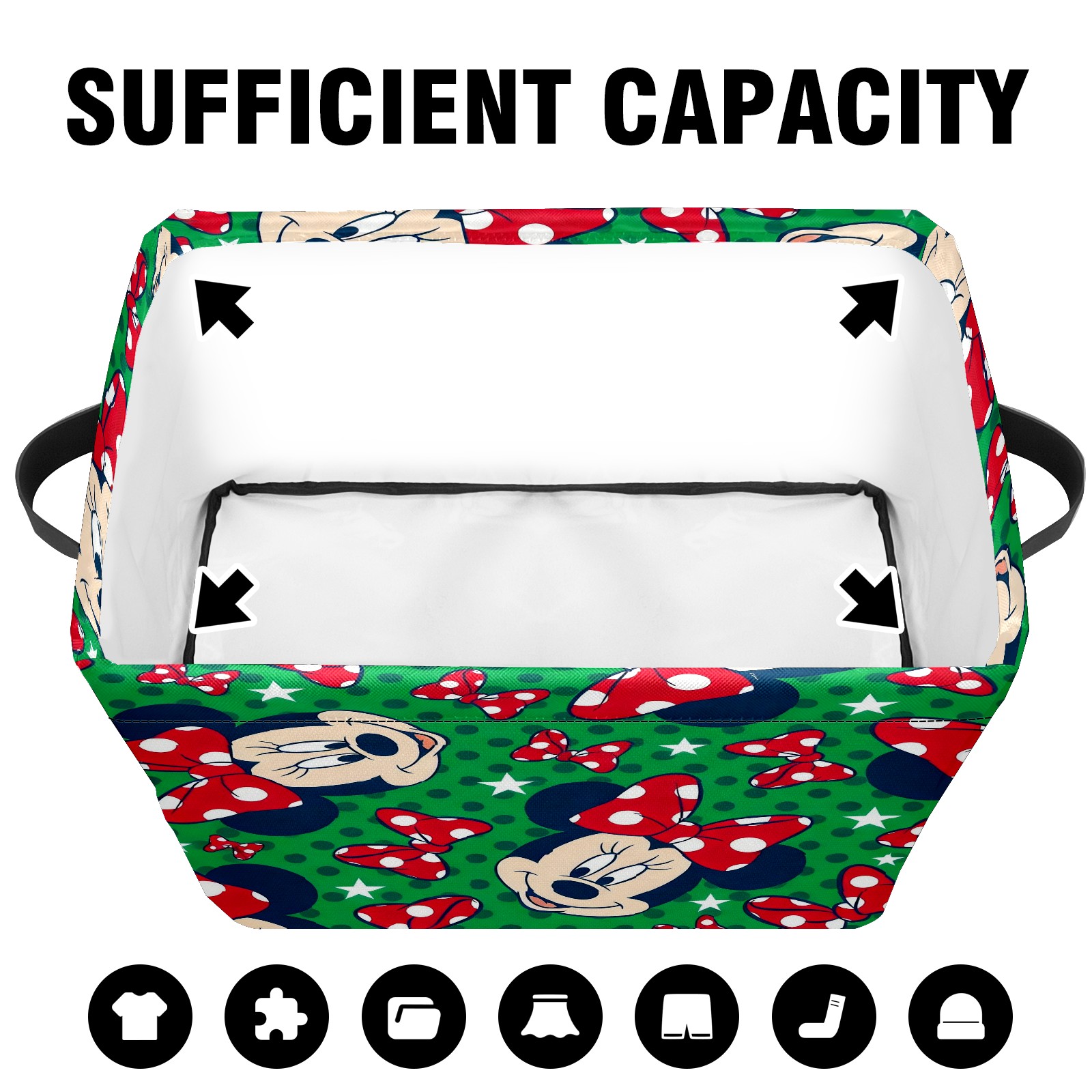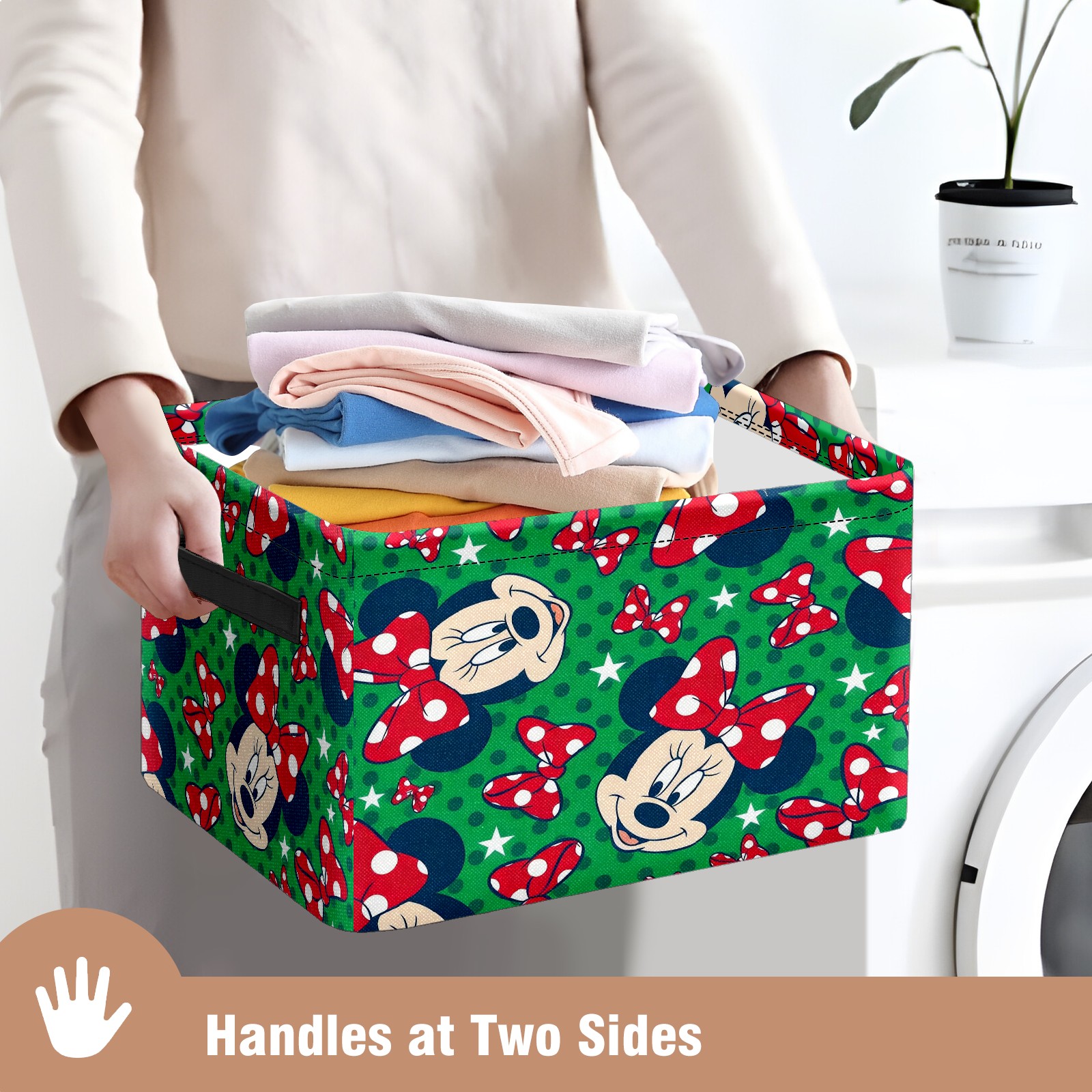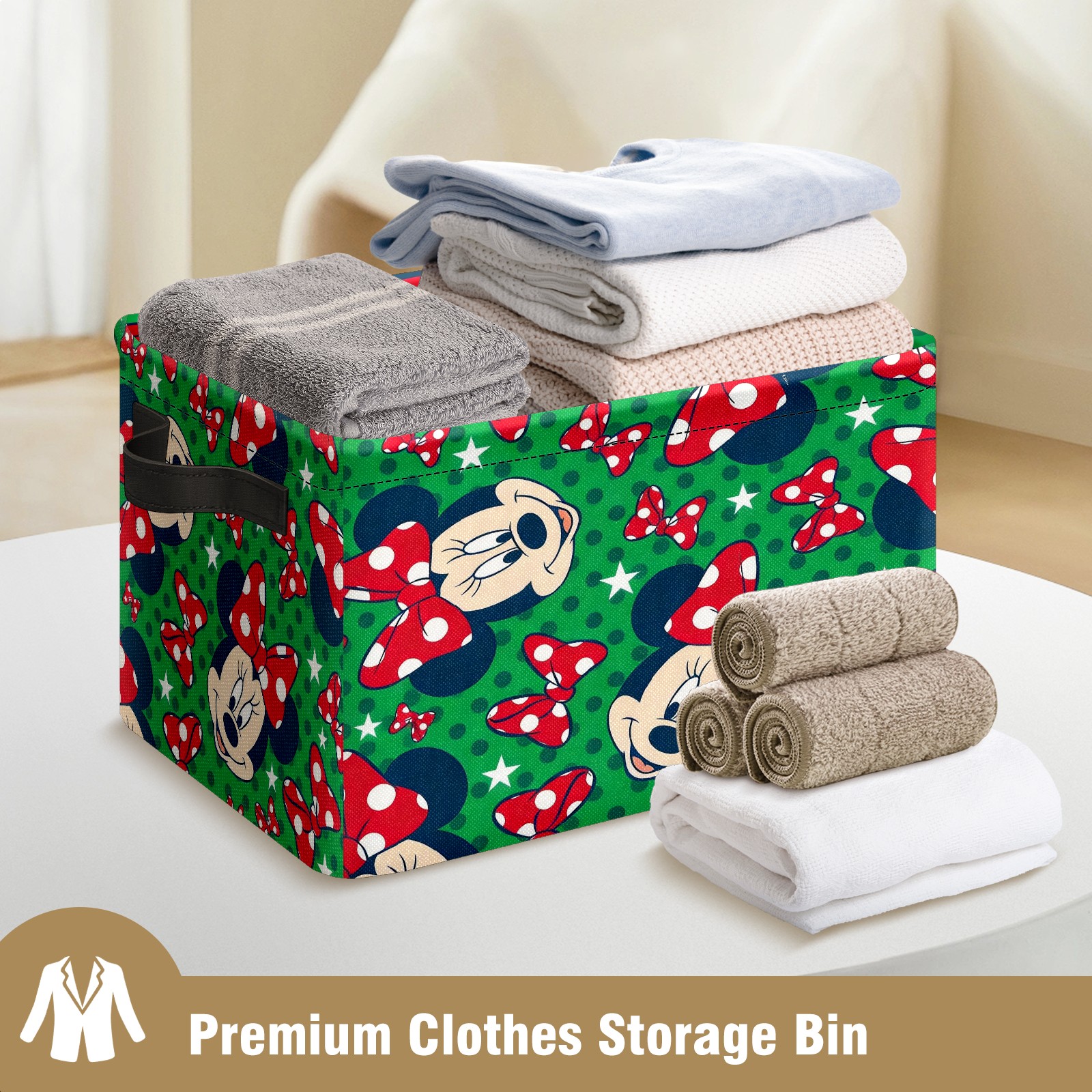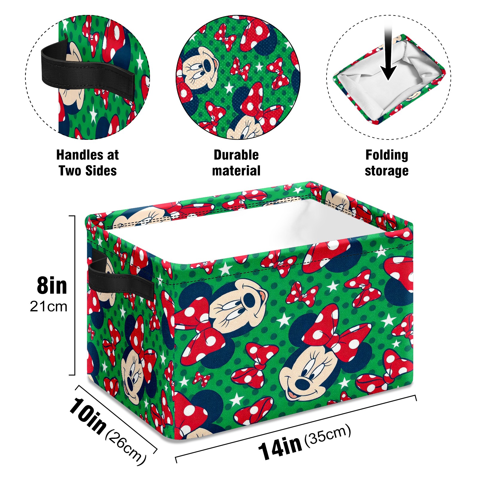 Foldable and Stackable Fabric Storage Basket for Home Organization with Handles, Decorative Closet Bins for Shelves and Laundry Storage( Mickey Green)