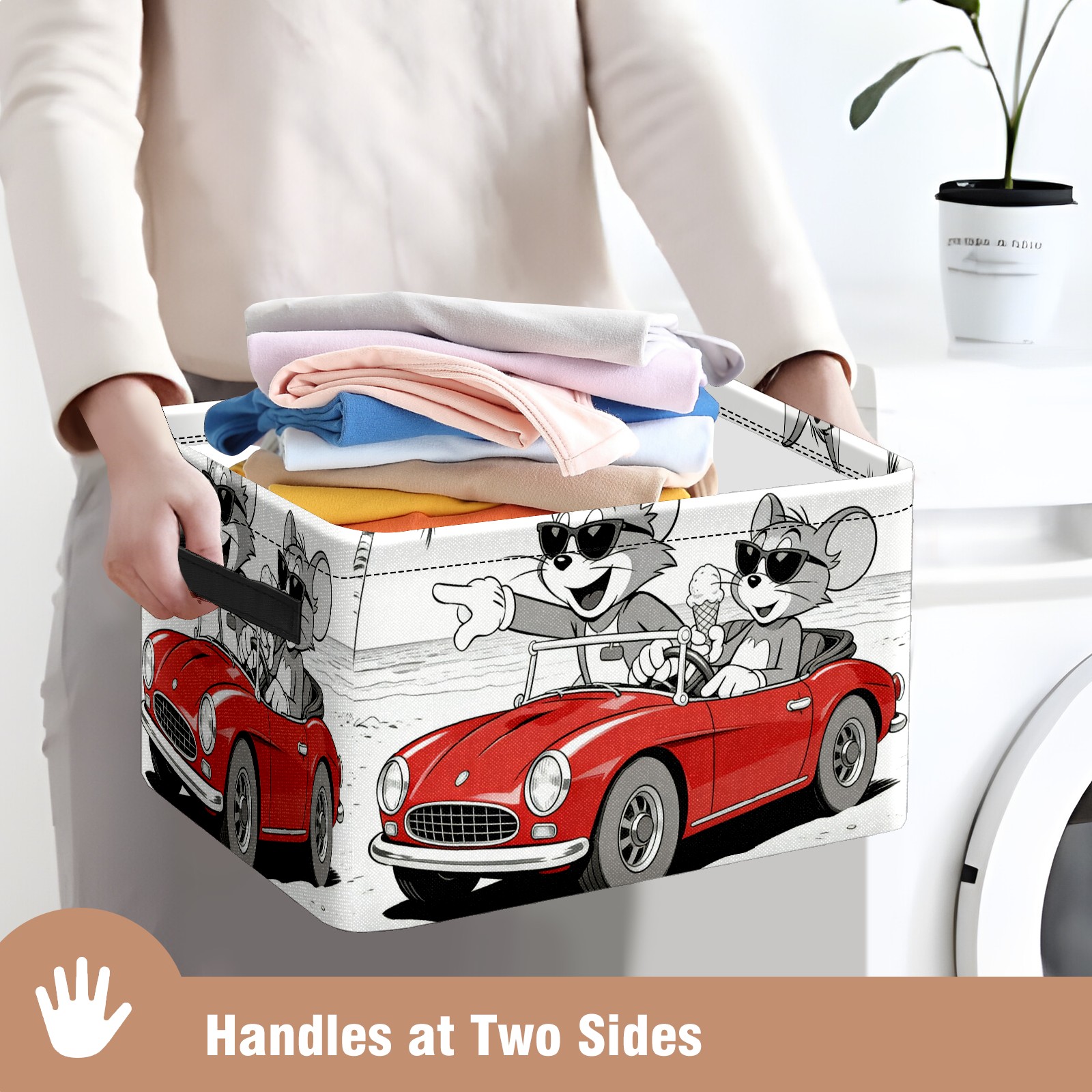 Foldable and Stackable Fabric Storage Basket for Home Organization with Handles, Decorative Closet Bins for Shelves and Laundry Storage( Tom)