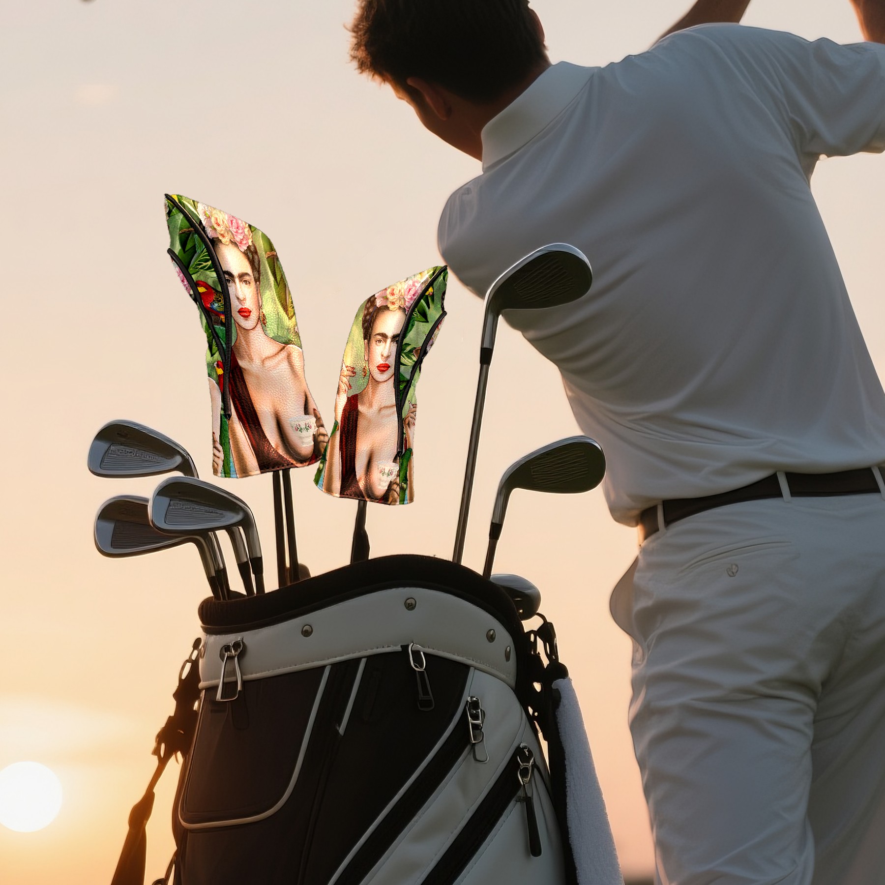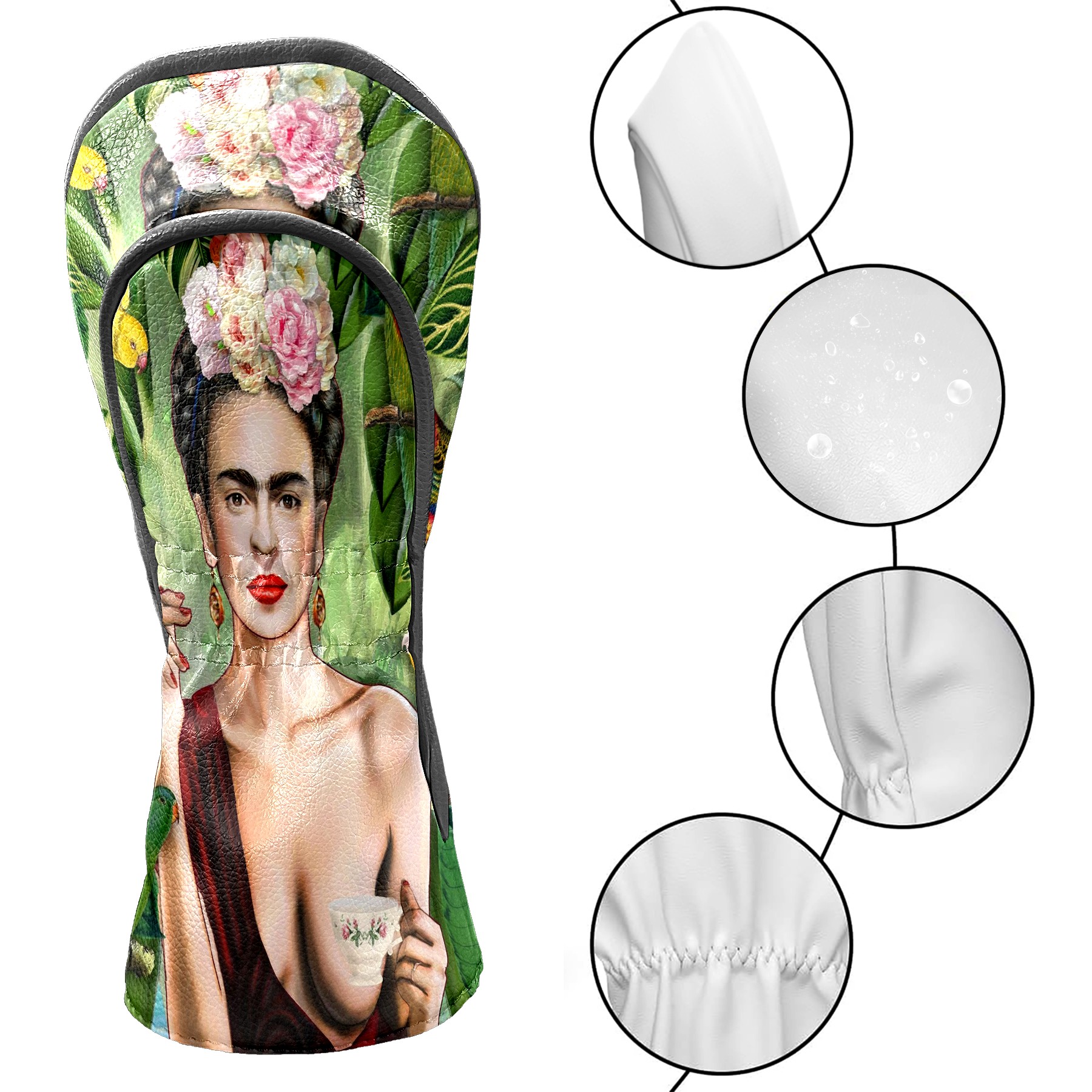 Водонепроницаемый кожаный чехол для головки драйвера удара, чехлы для драйверов Flower Woman Frida Kahlo