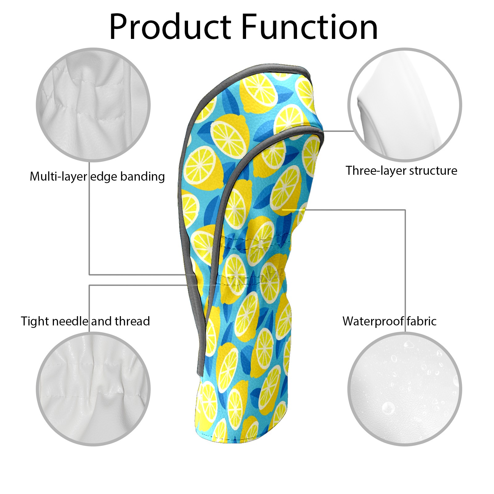 Водонепроницаемый кожаный чехол для головки драйвера удара, чехлы для драйверов Summer Yellow Lemon Citrus Blue