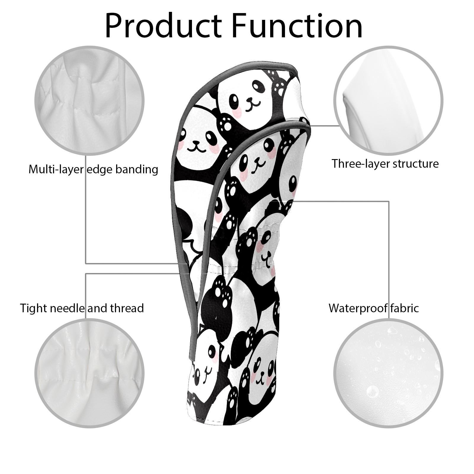 Водонепроницаемый кожаный чехол для головки драйвера удара, чехлы для драйверов Cute Pandas