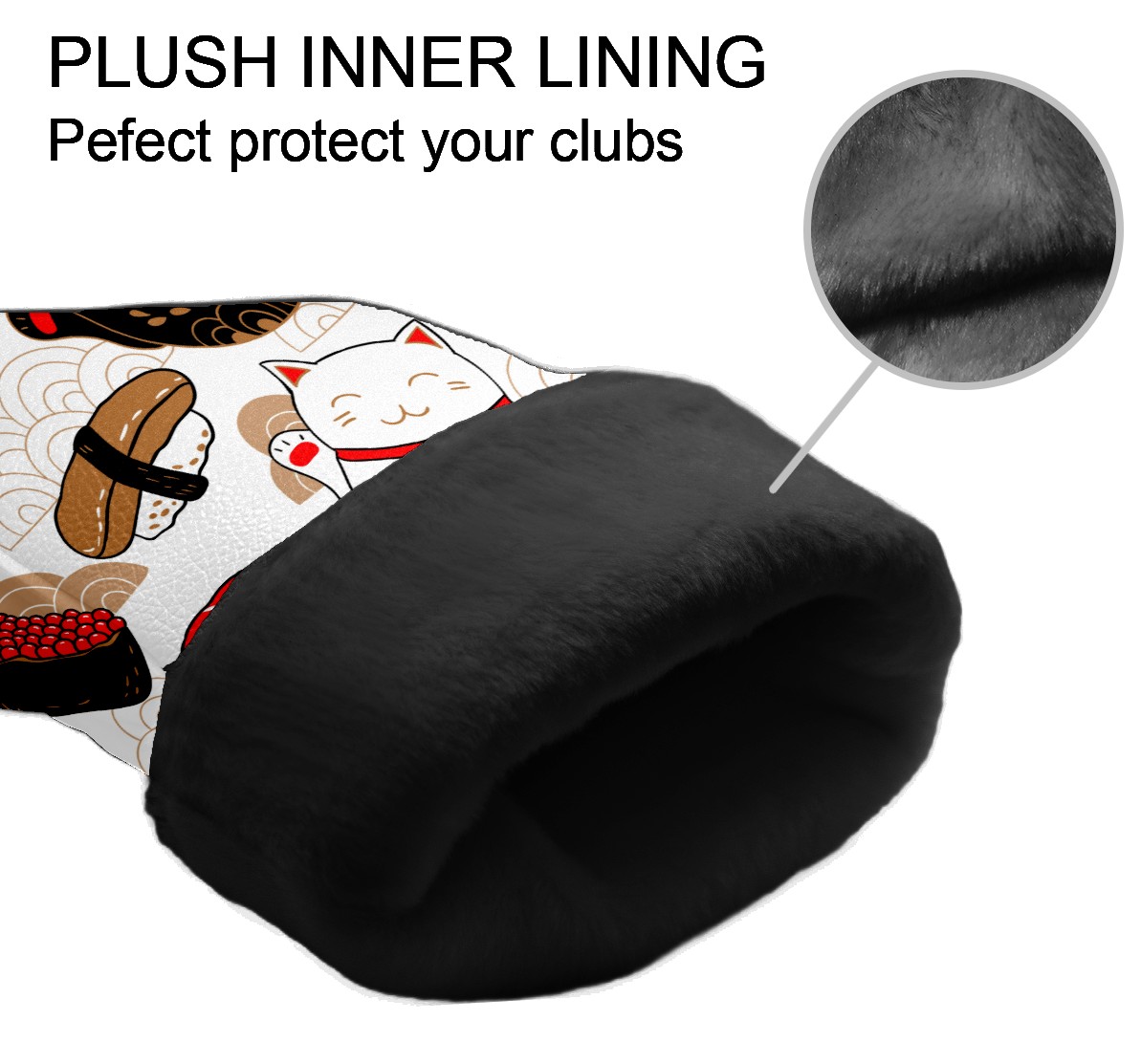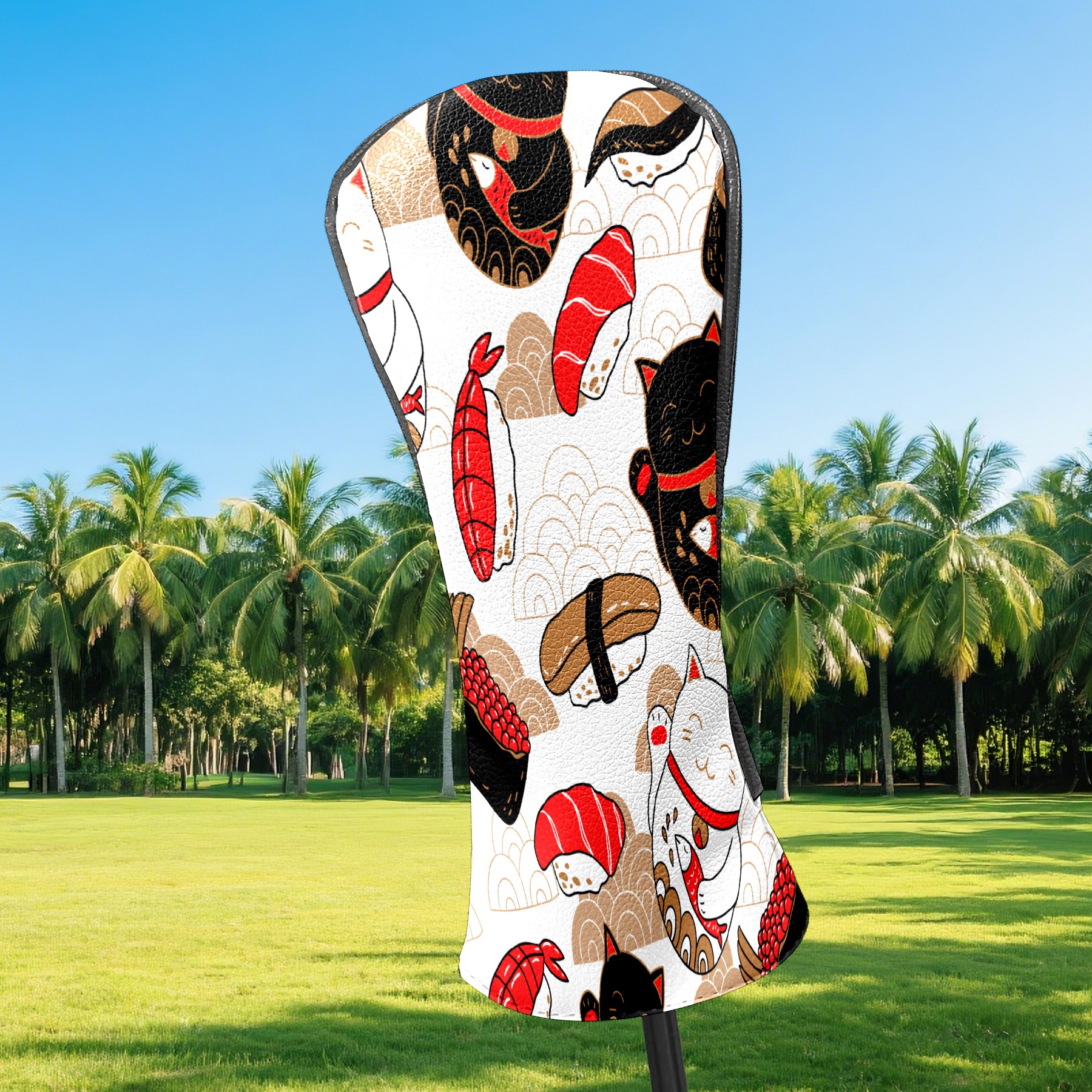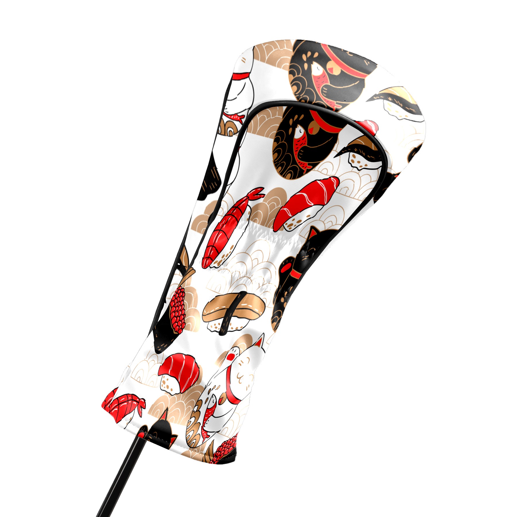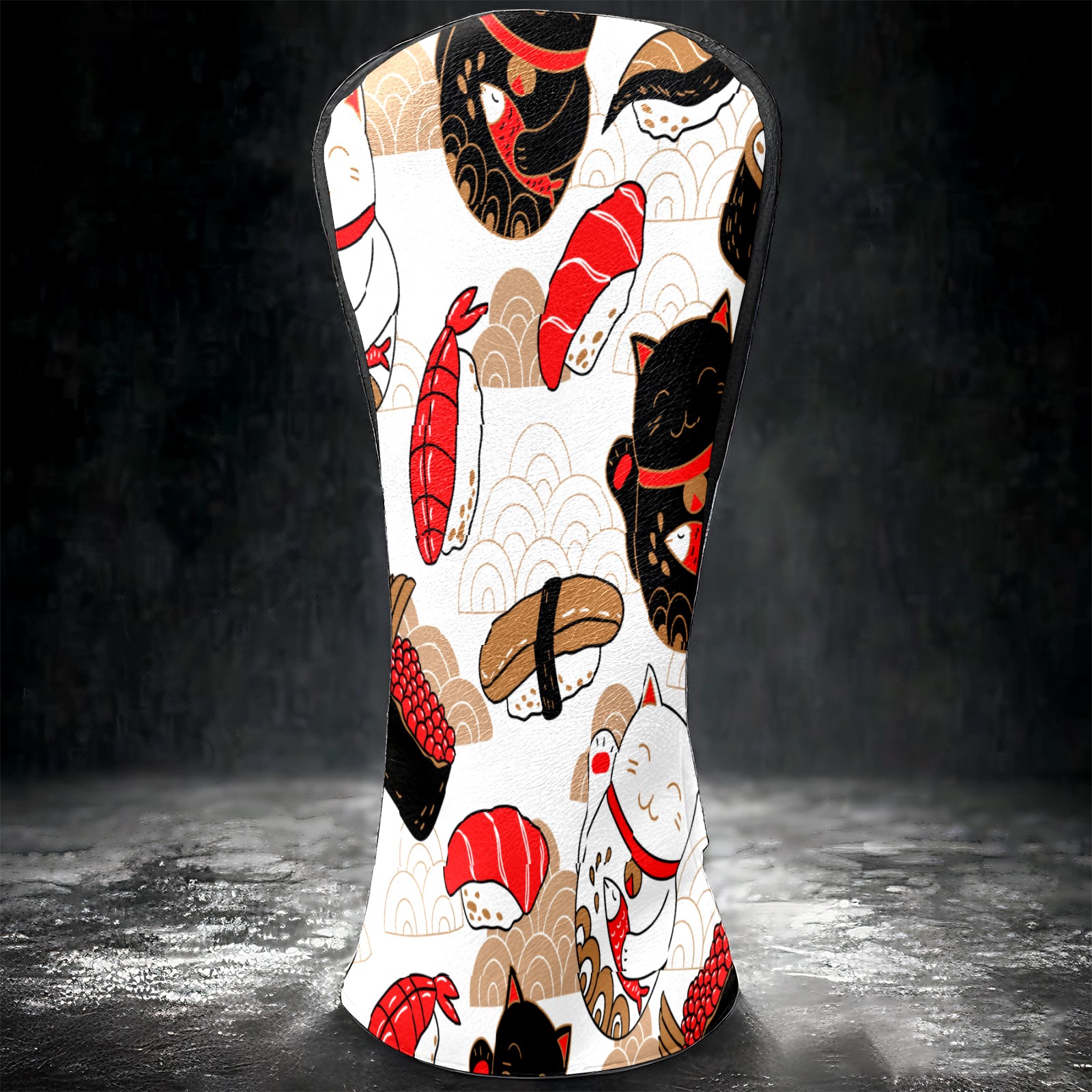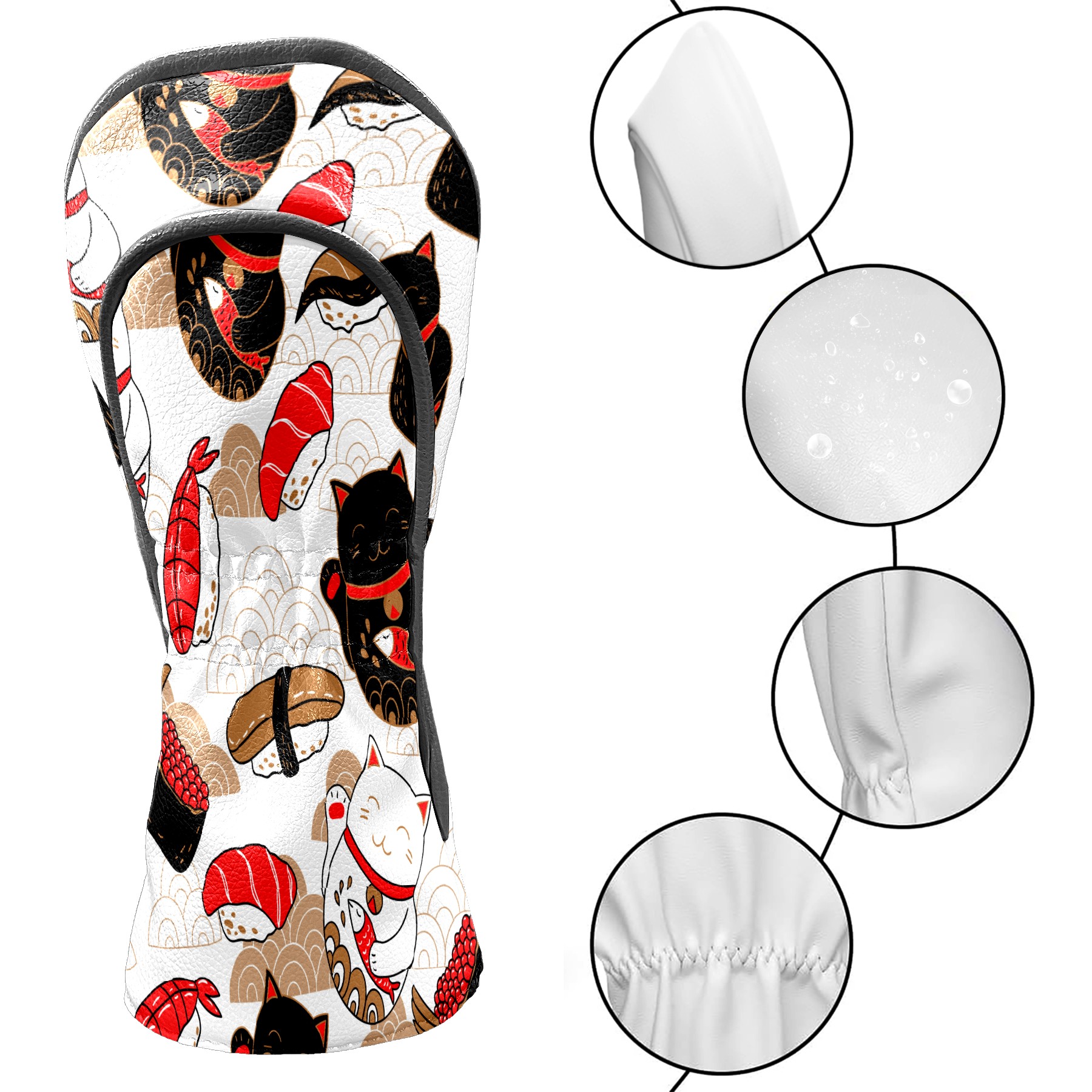 Водонепроницаемый кожаный чехол для головки драйвера удара, чехлы для драйверов Japanese Plutus Cat With Fish Sushi