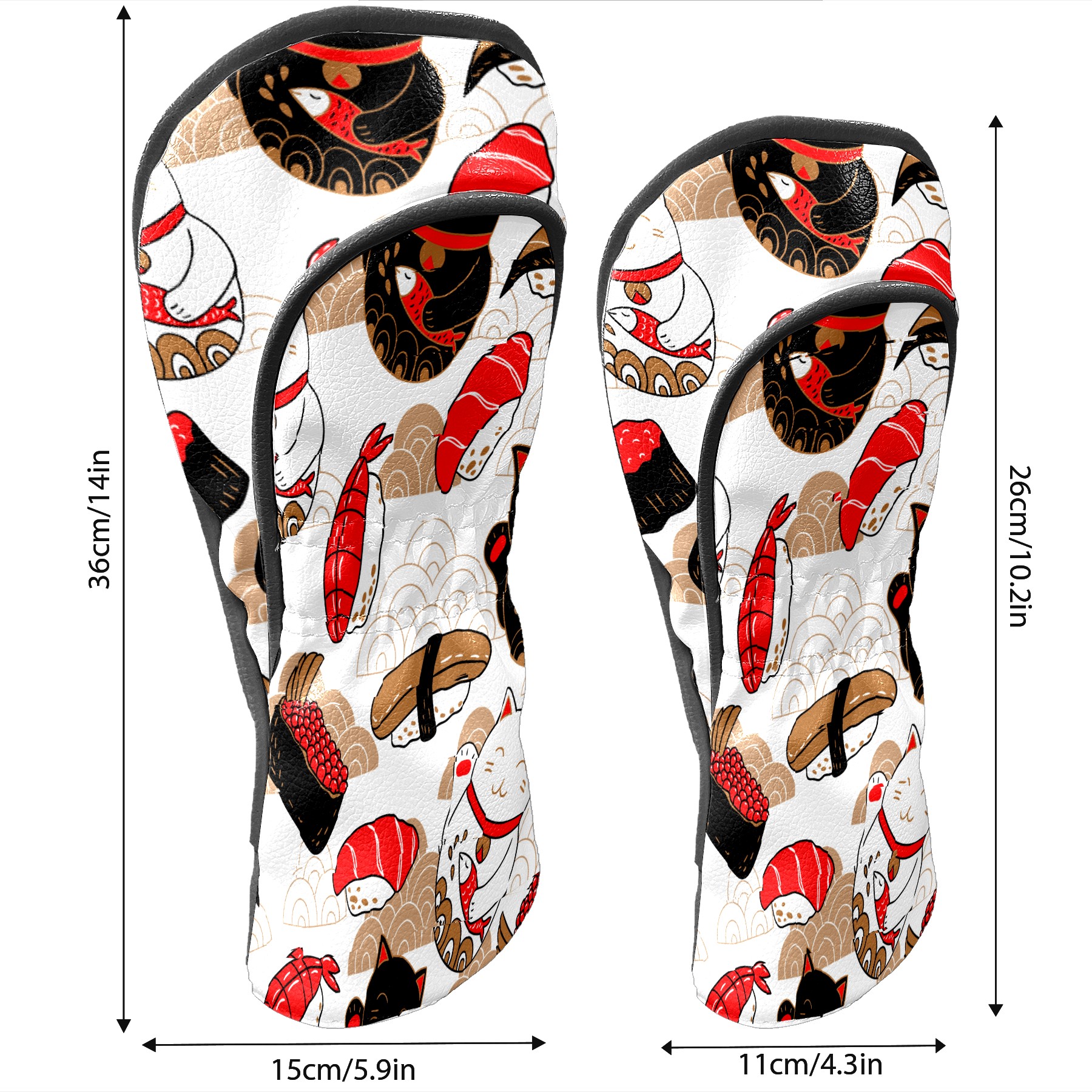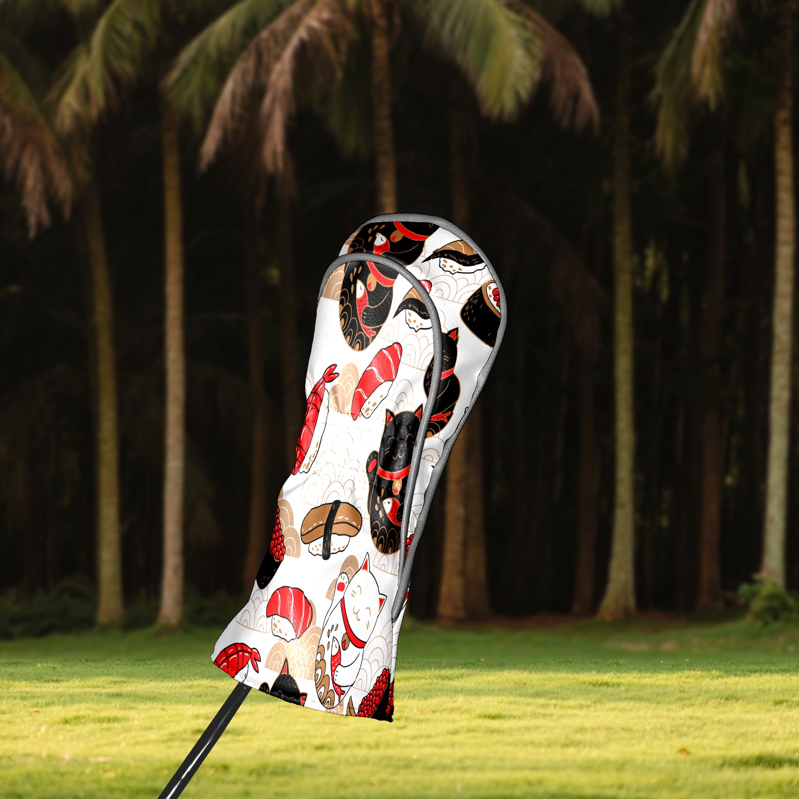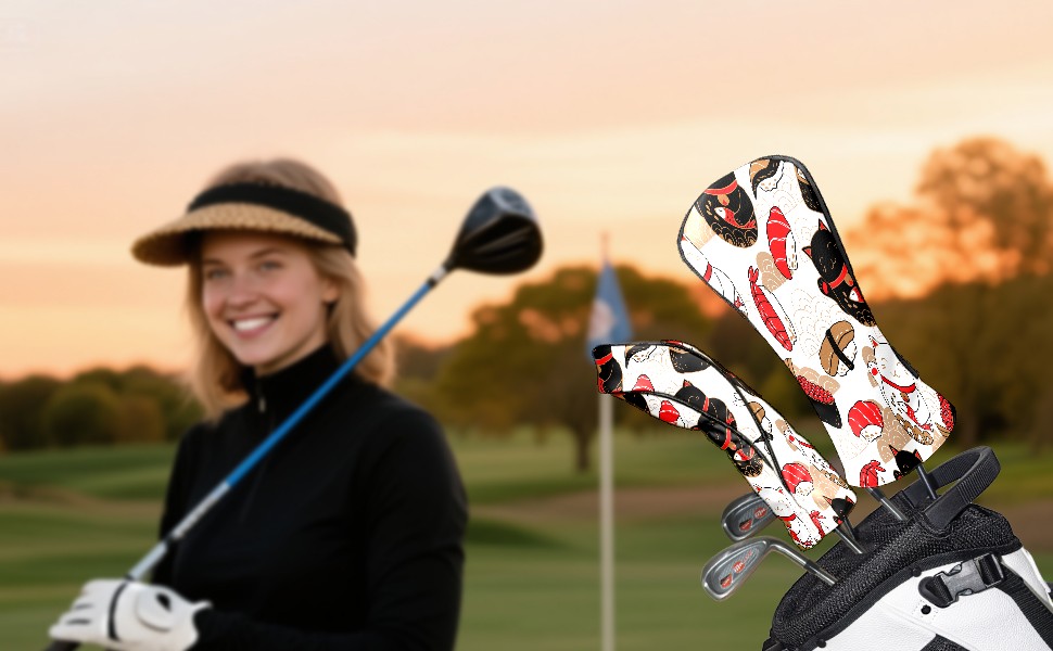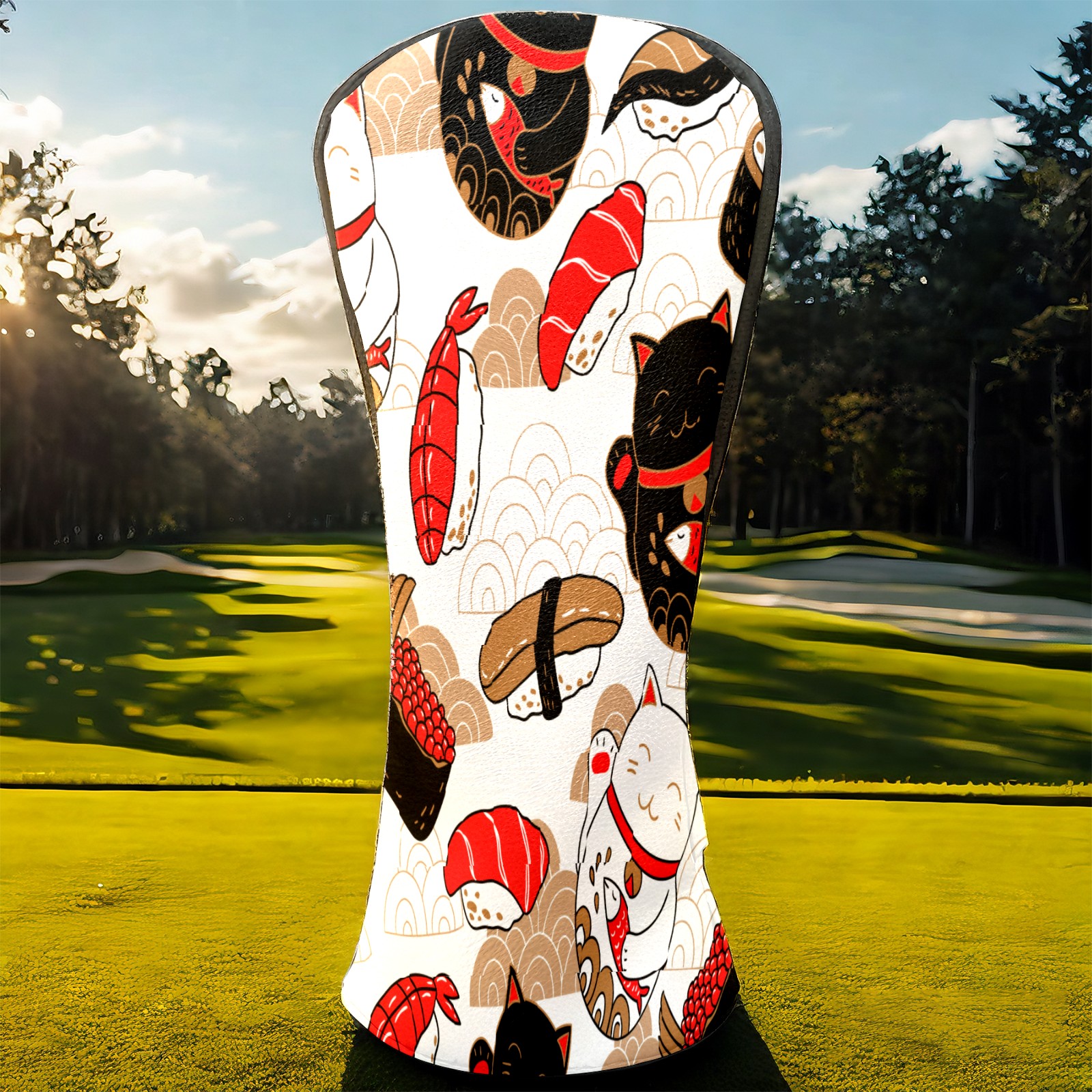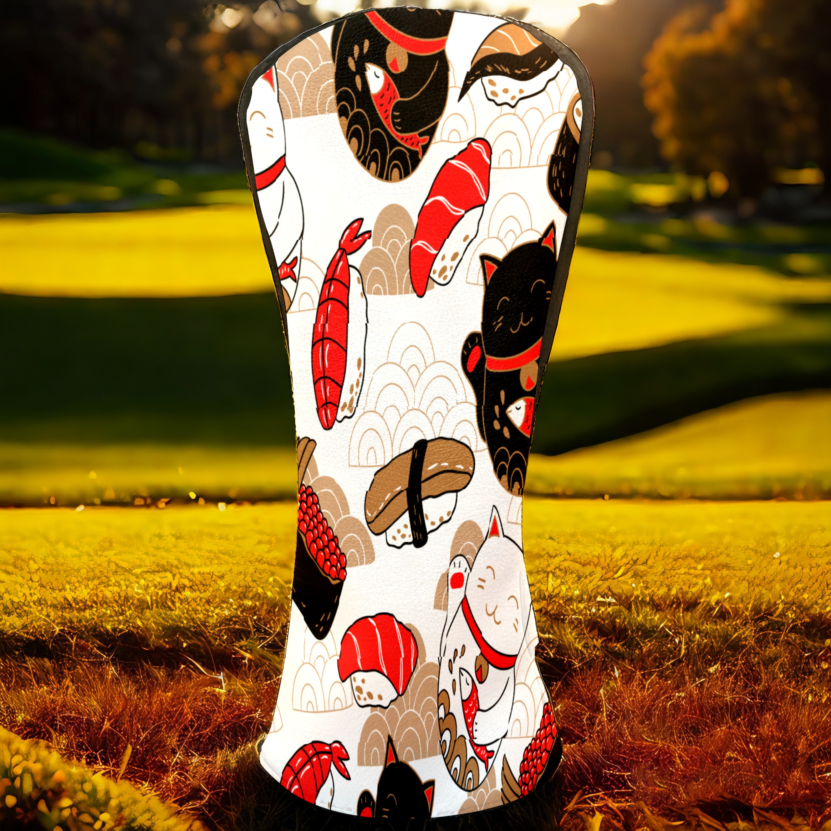 Водонепроницаемый кожаный чехол для головки драйвера удара, чехлы для драйверов Japanese Plutus Cat With Fish Sushi