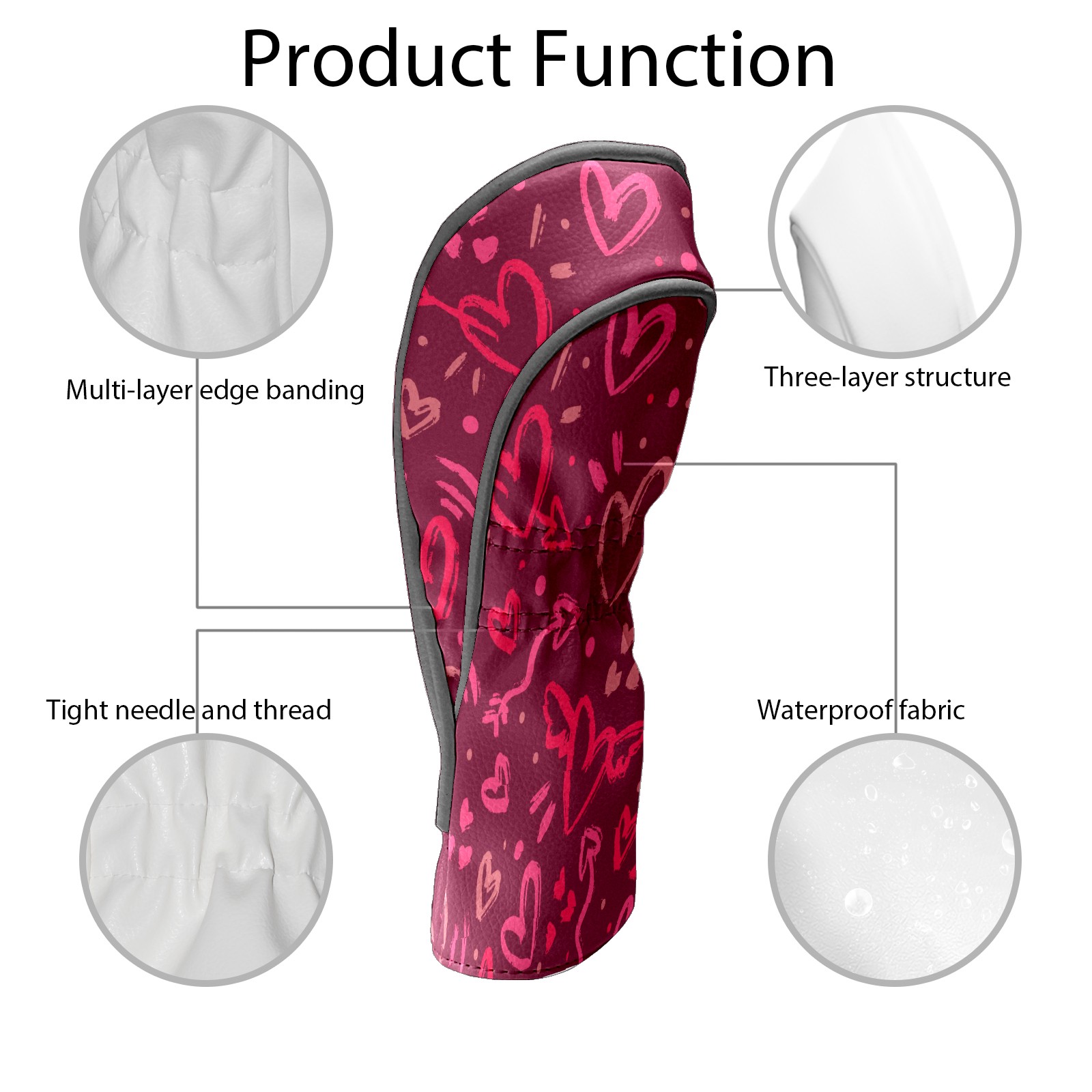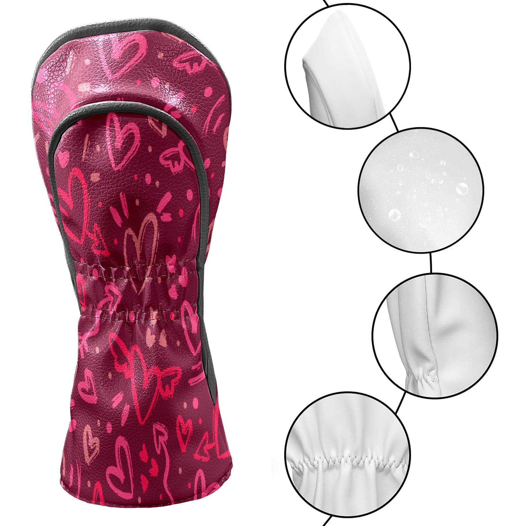 Водонепроницаемый кожаный чехол для головки драйвера удара, чехлы для драйверов Red Love Hearts Valentine's Day